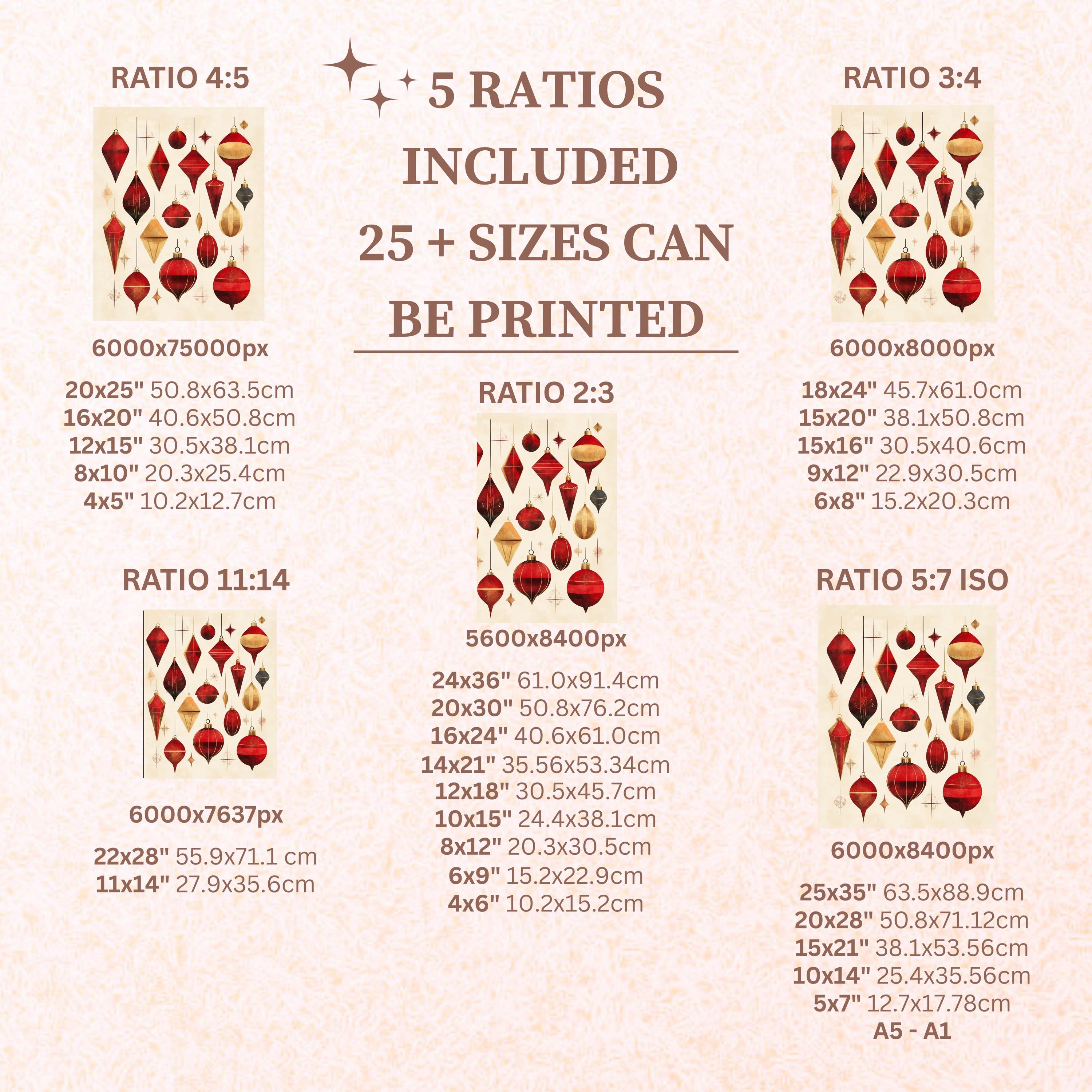 Each artwork includes 5 aspect ratios with 25+ print sizes. Most standard frames are covered. One custom resize per purchase available—message before ordering.