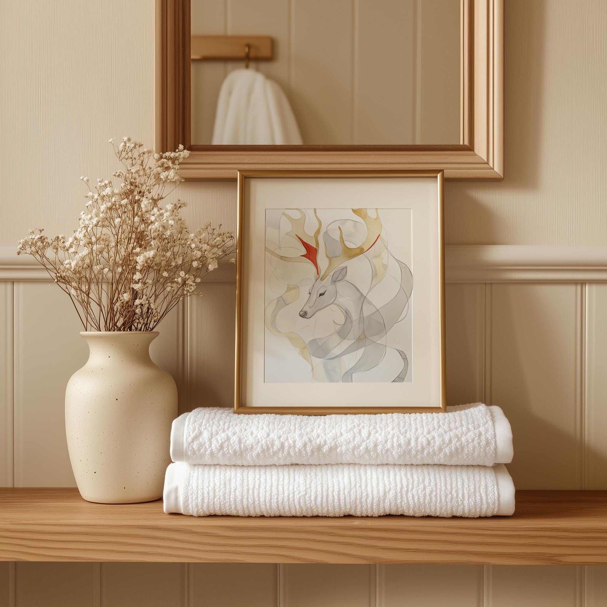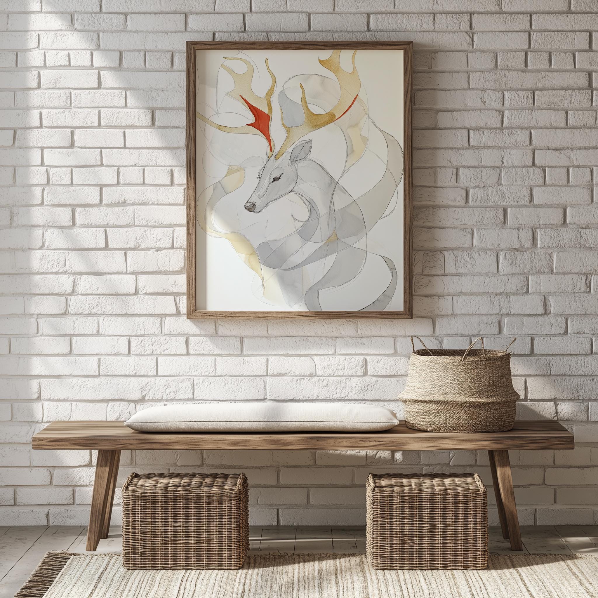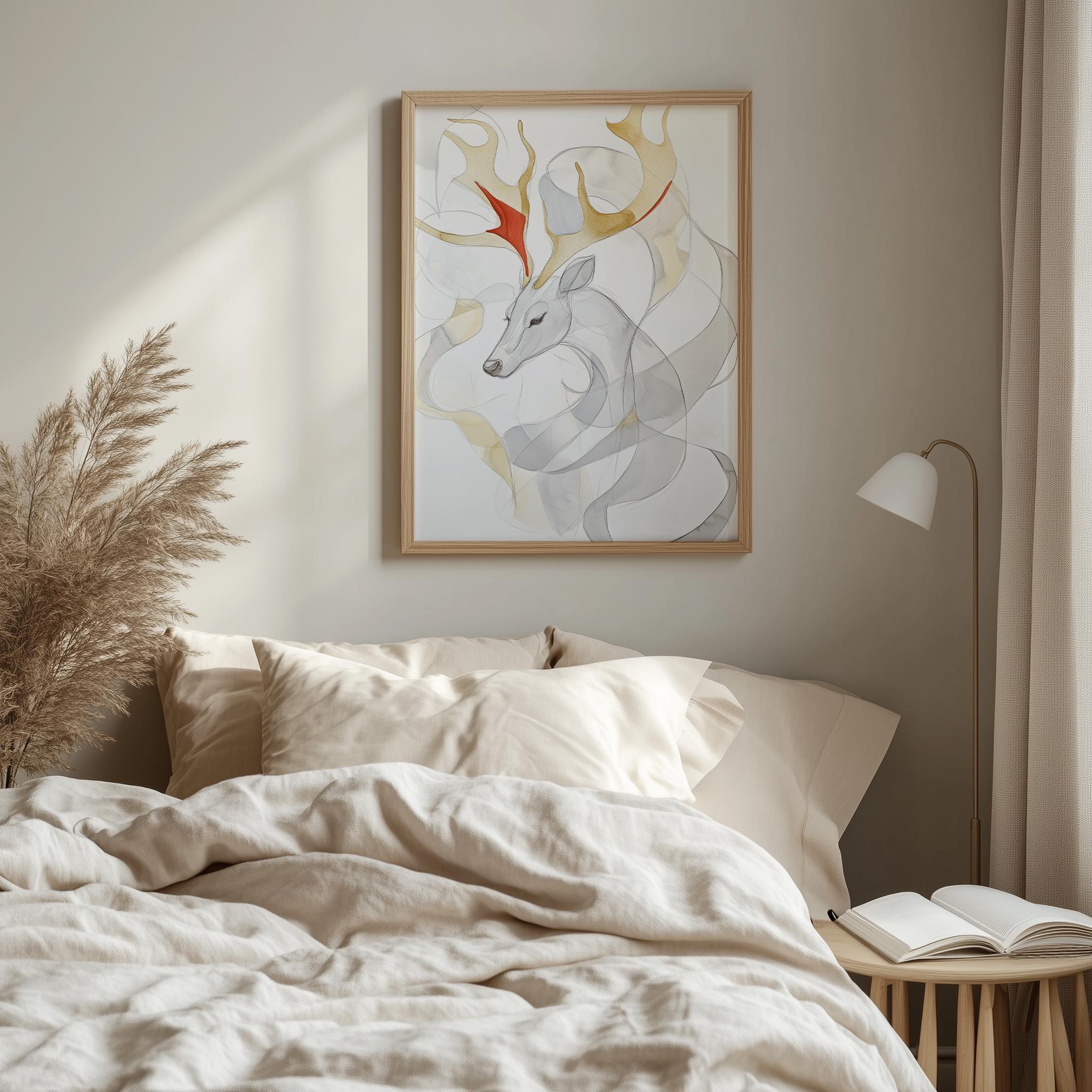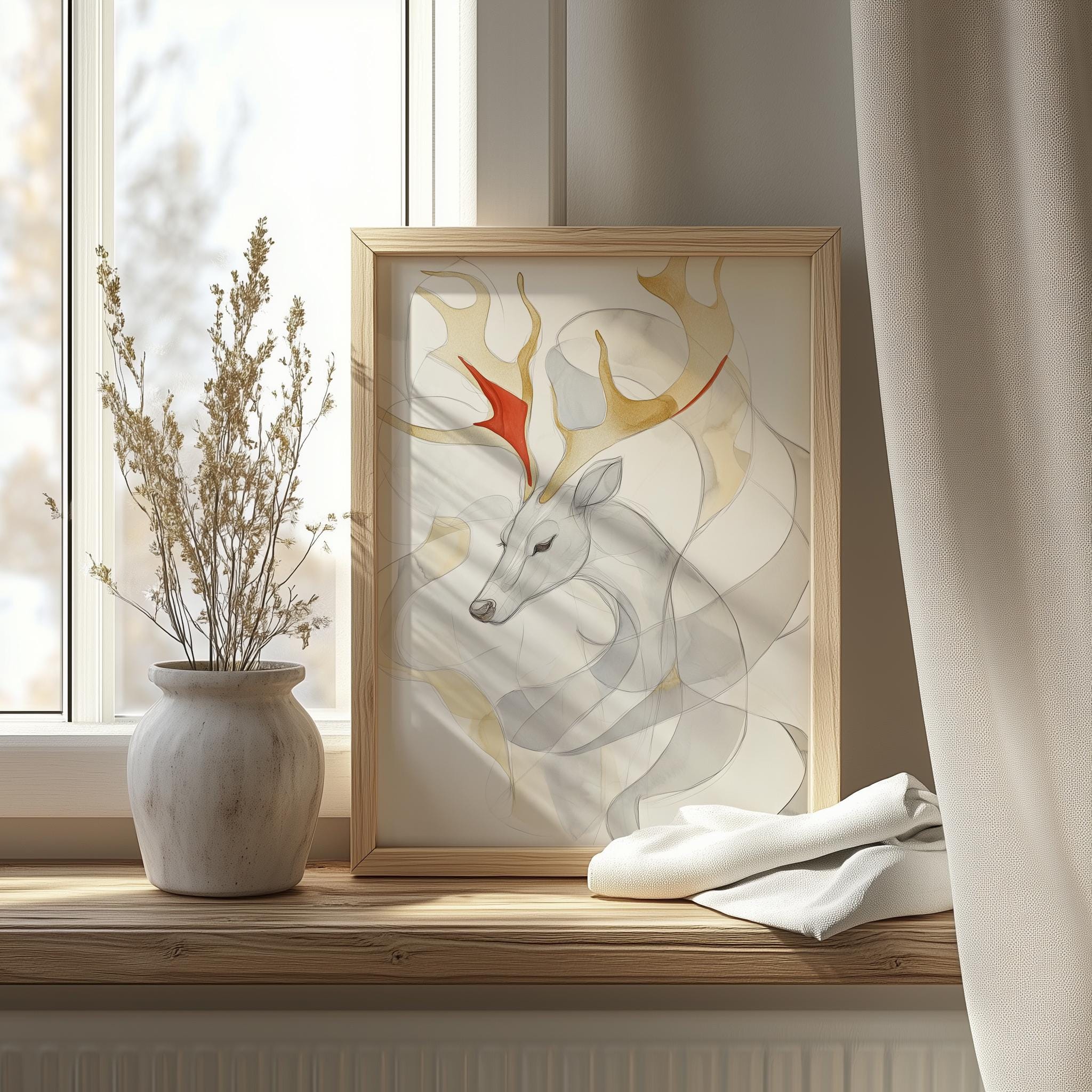 Immerse yourself in the charm of this rustic painting of an abstract reindeer head, beautifully depicted in soft watercolor layers. An instantly downloadable print, it's perfect for elevating your decor with budget-friendly charm. This gives you the flexibility to customize the size, frame, and material according to your personal taste and space, ensuring a perfect fit for your walls.