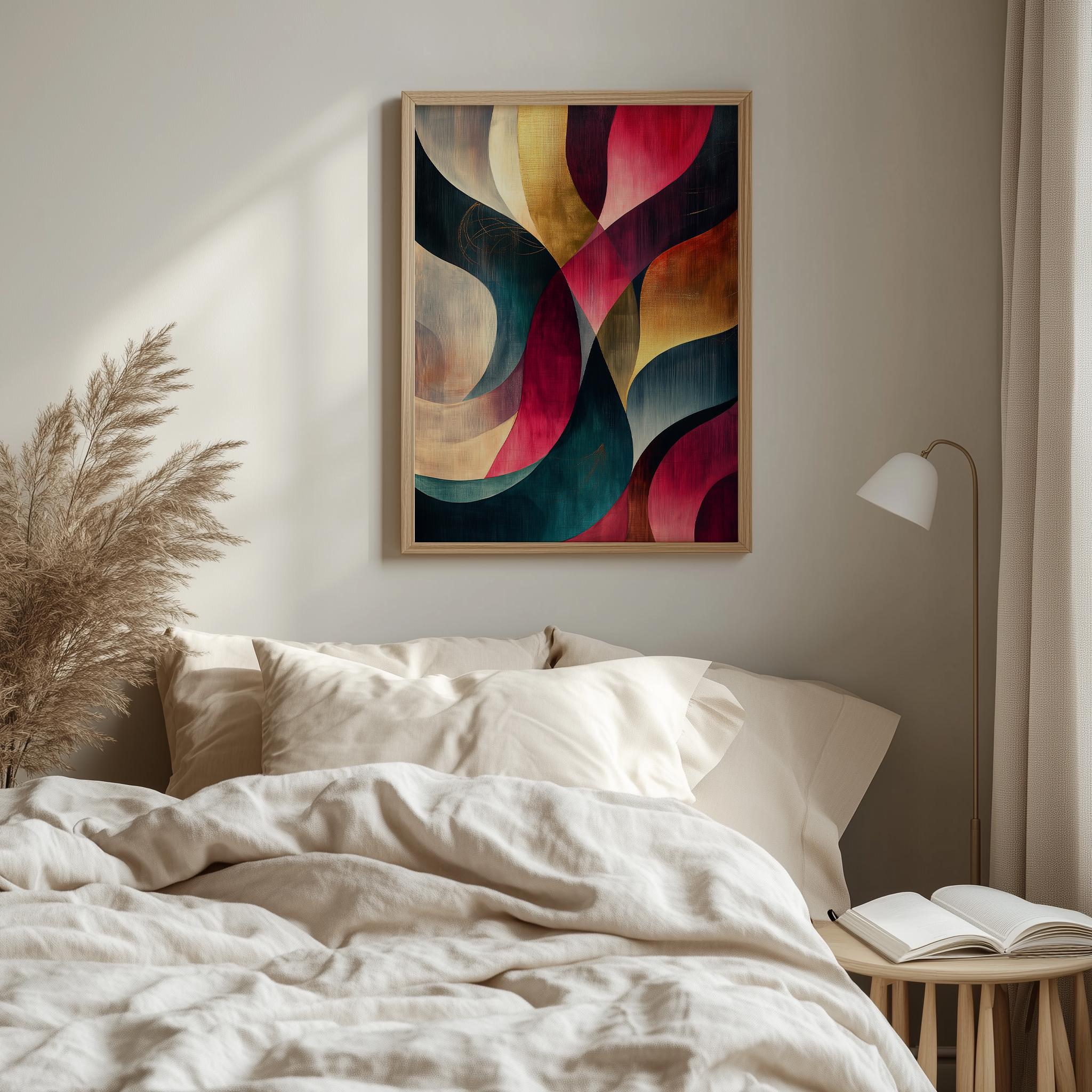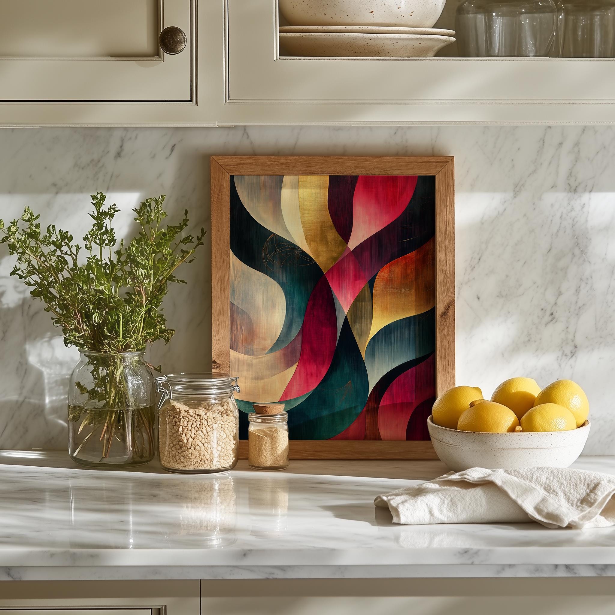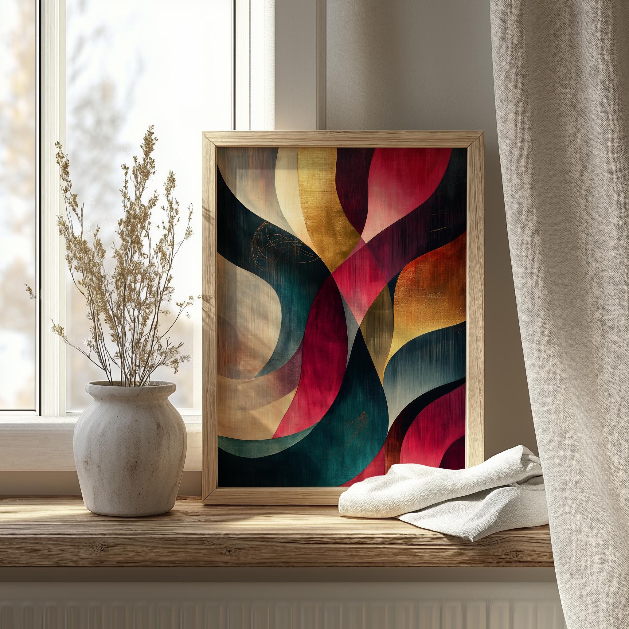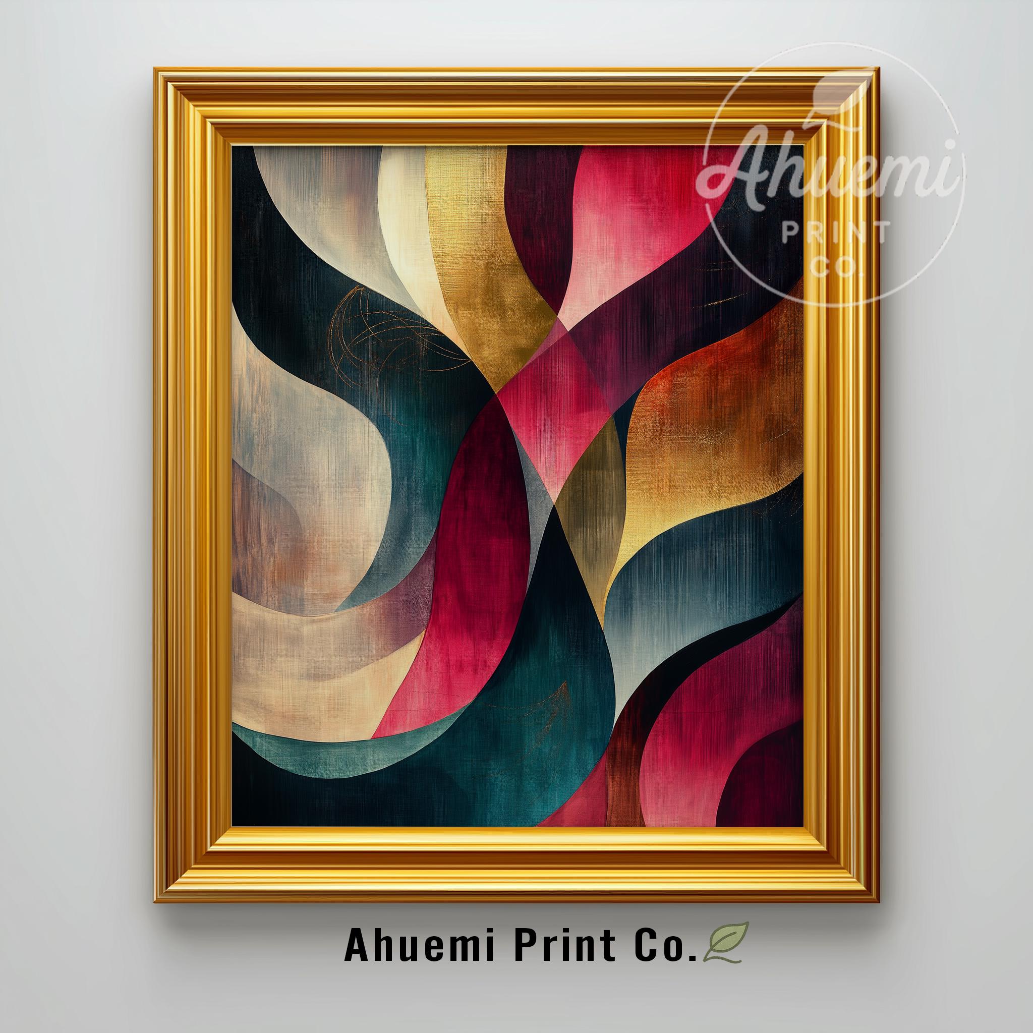 Immerse yourself in the charm of this rustic painting of elegant brushstrokes in rich jewel tones. An instantly downloadable print, it's perfect for elevating your decor with budget-friendly charm. This gives you the flexibility to customize the size, frame, and material according to your personal taste and space, ensuring a perfect fit for your walls.