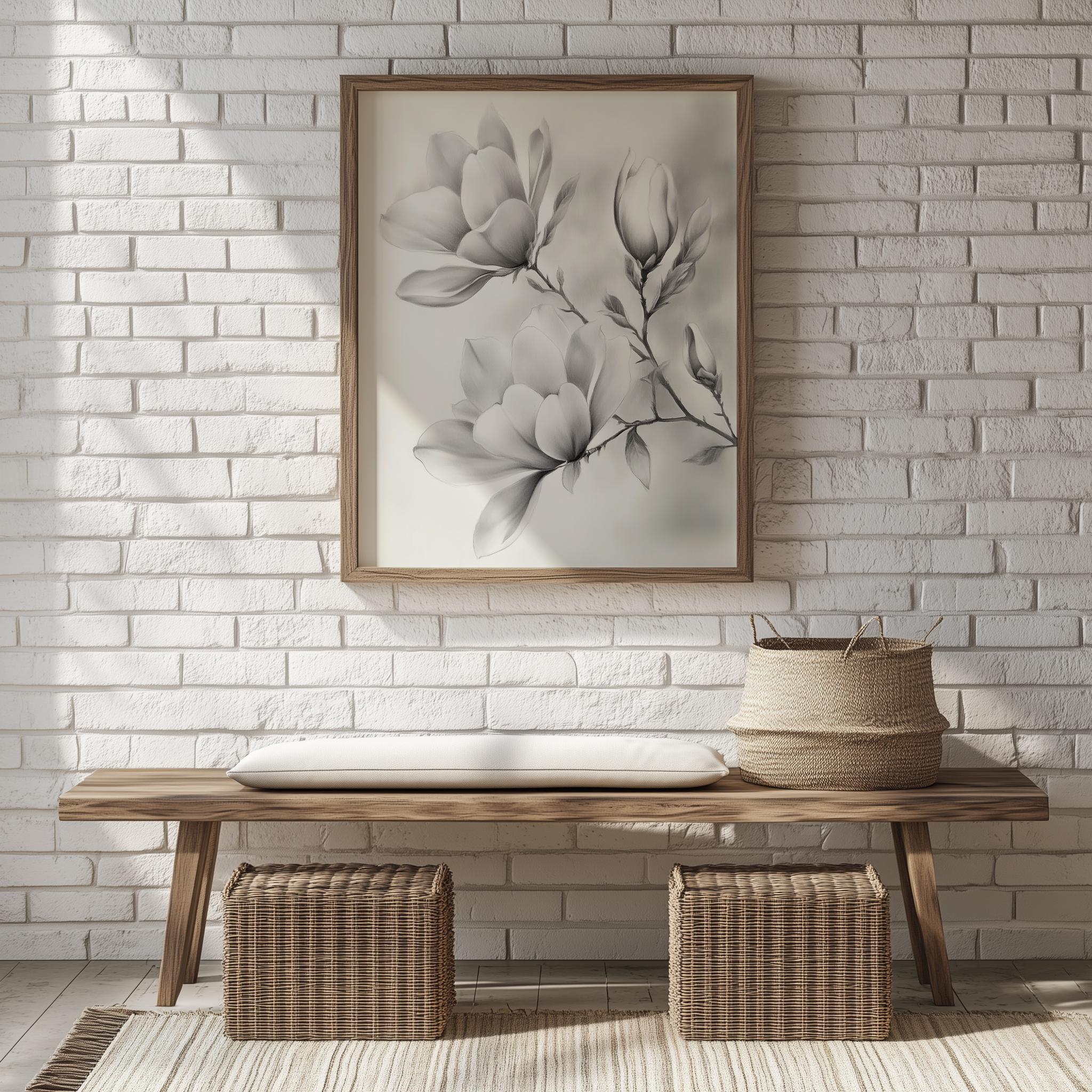 Immerse yourself in the charm of this rustic painting of delicate magnolia blossoms. An instantly downloadable print, it's perfect for elevating your decor with budget-friendly charm. This gives you the flexibility to customize the size, frame, and material according to your personal taste and space, ensuring a perfect fit for your walls.