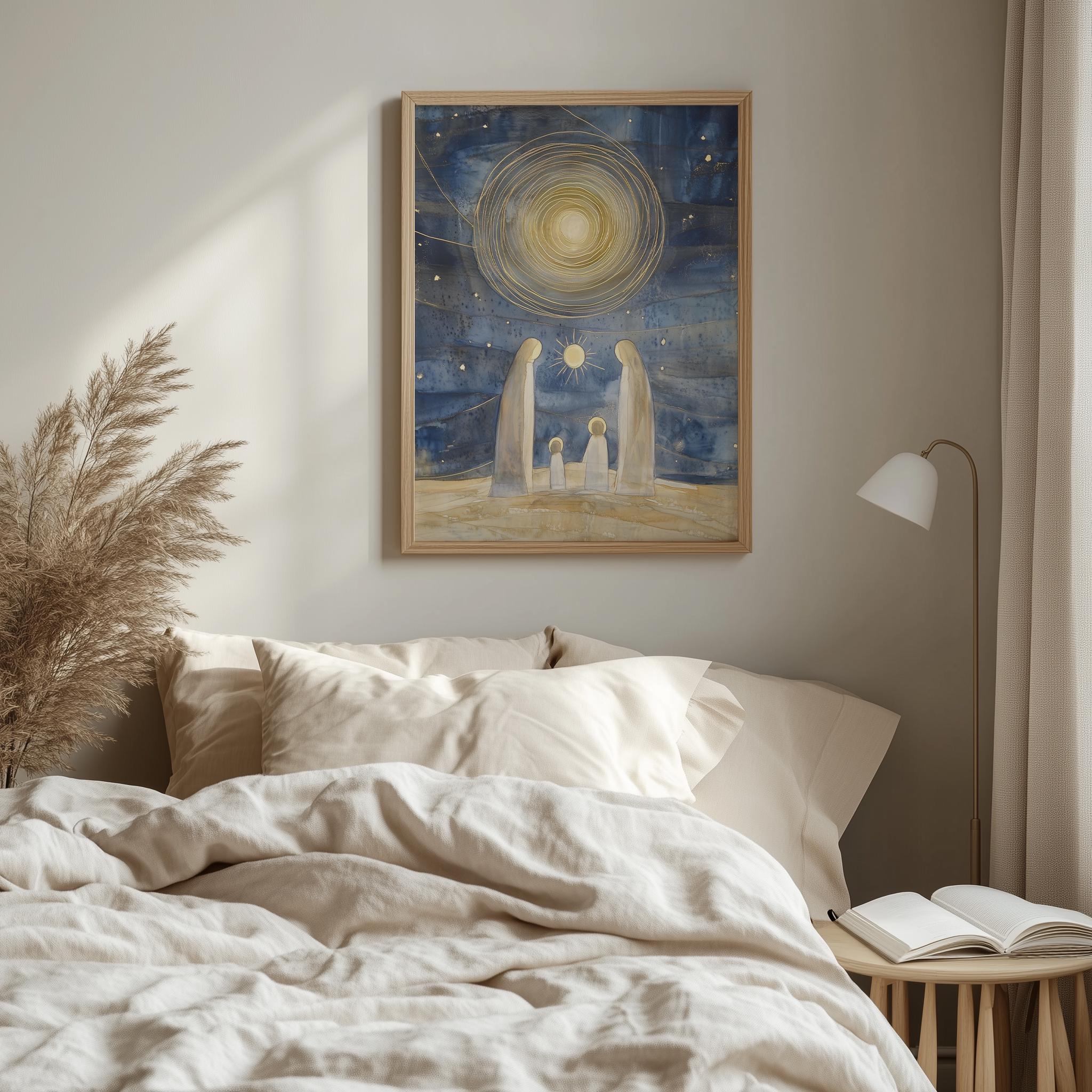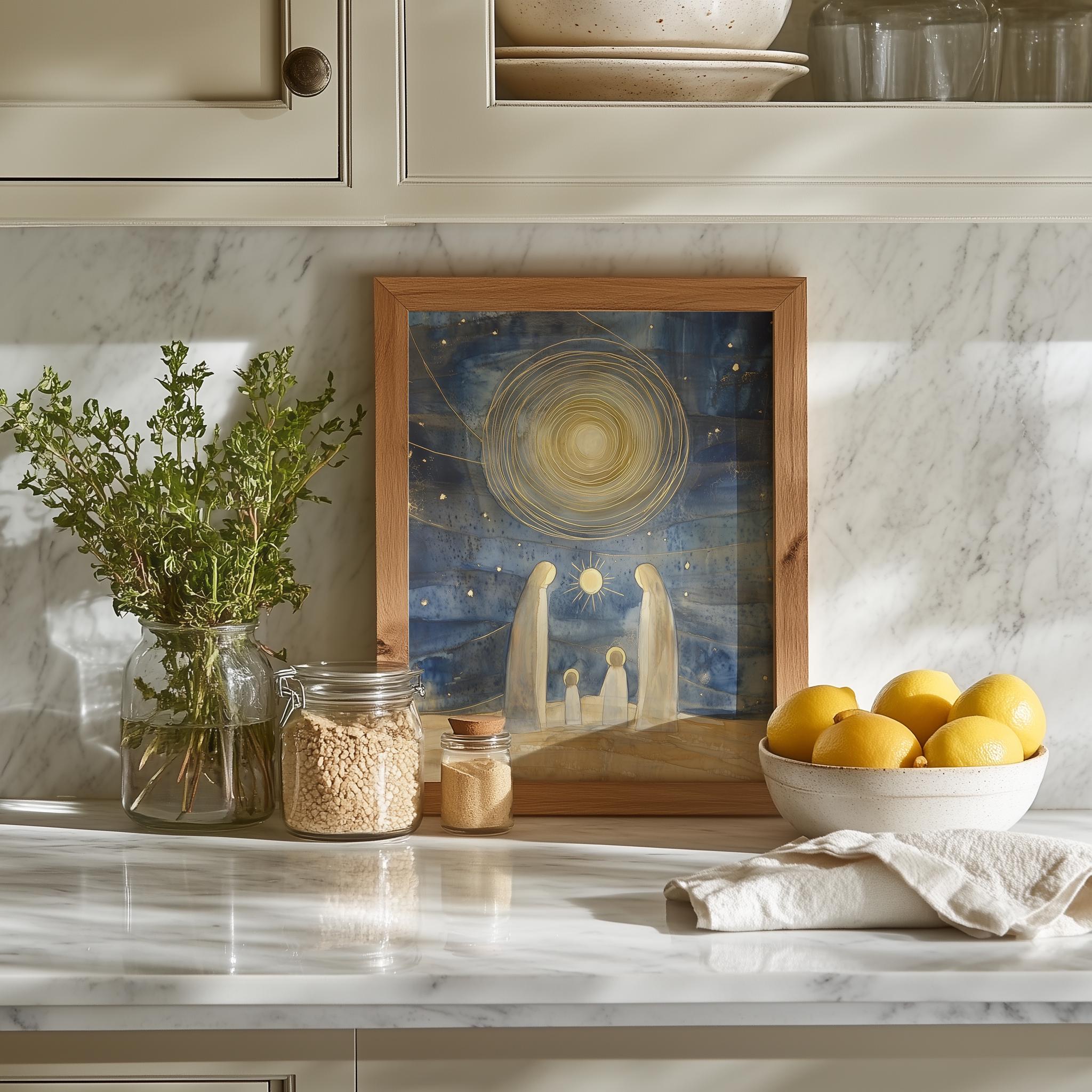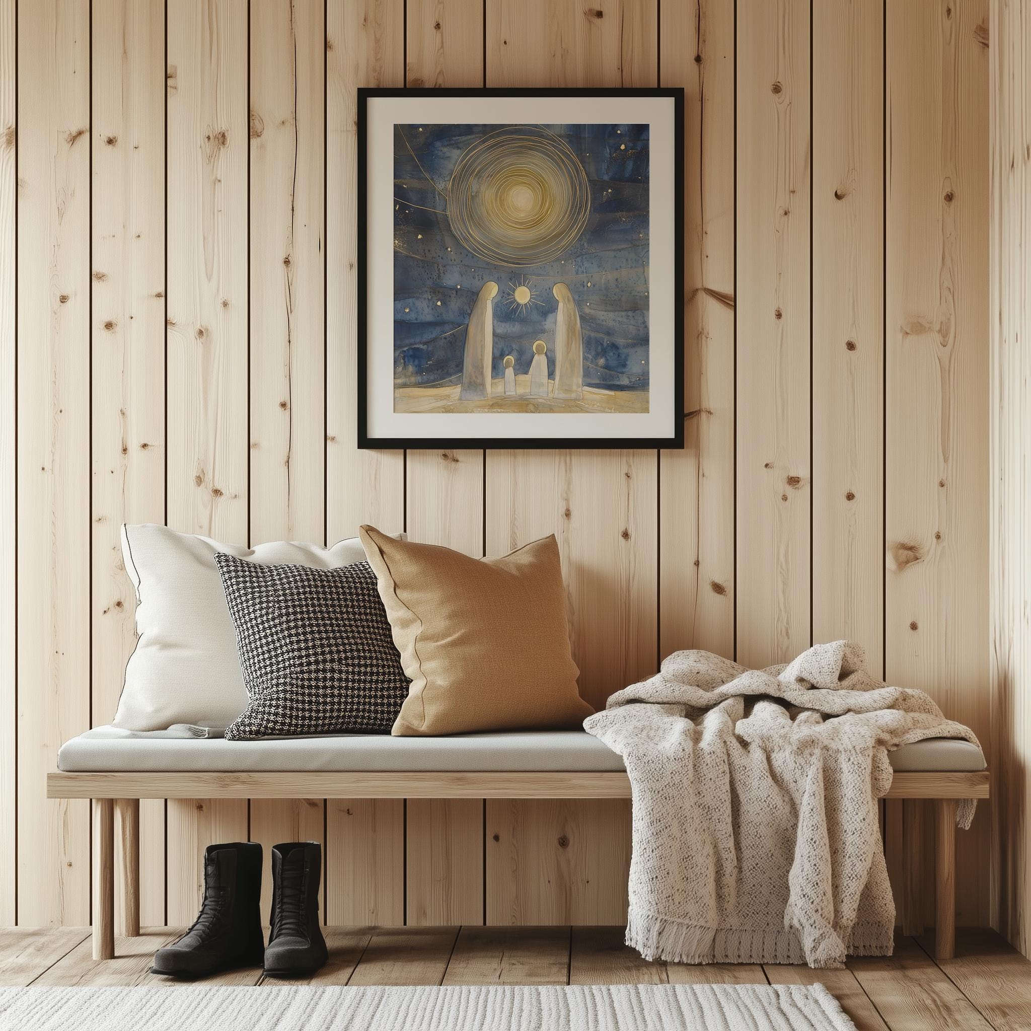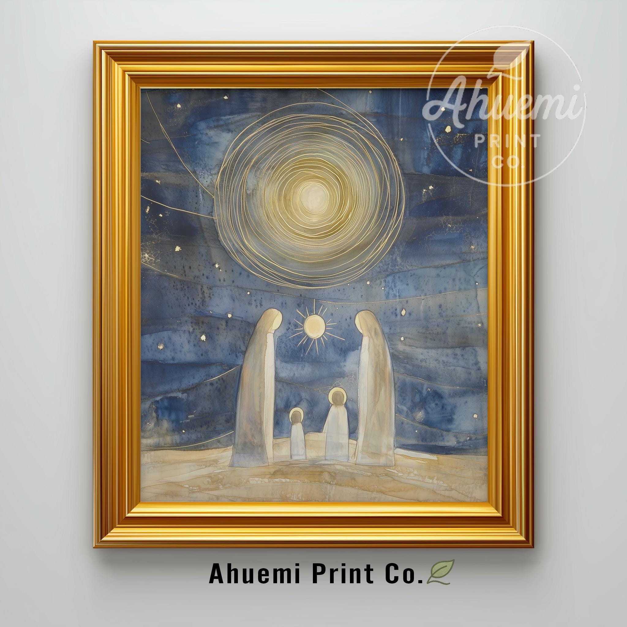 Immerse yourself in the charm of this rustic painting of a serene nativity scene illuminated by a radiant star. An instantly downloadable print, it's perfect for elevating your decor with budget-friendly charm. This gives you the flexibility to customize the size, frame, and material according to your personal taste and space, ensuring a perfect fit for your walls.
