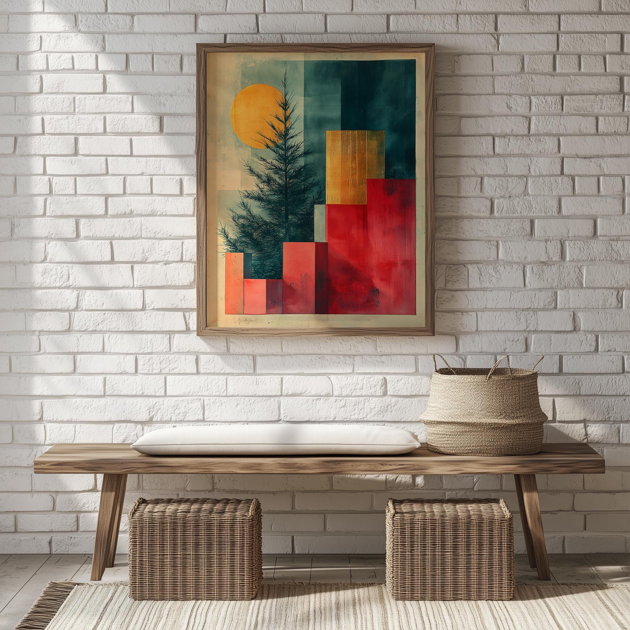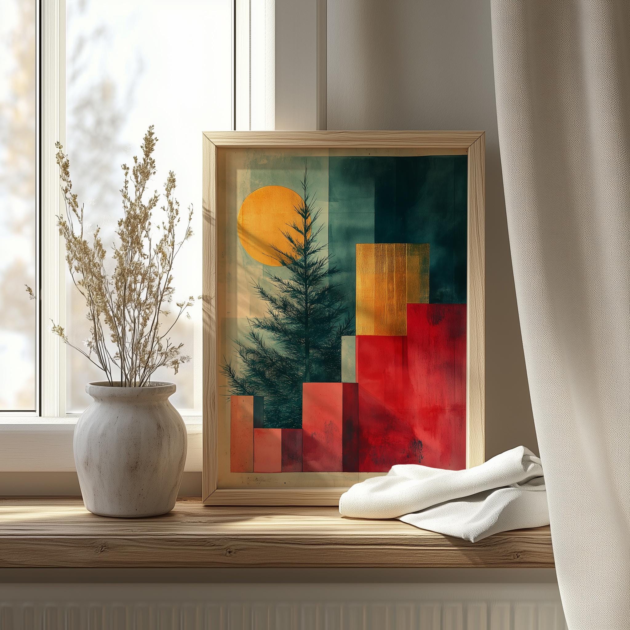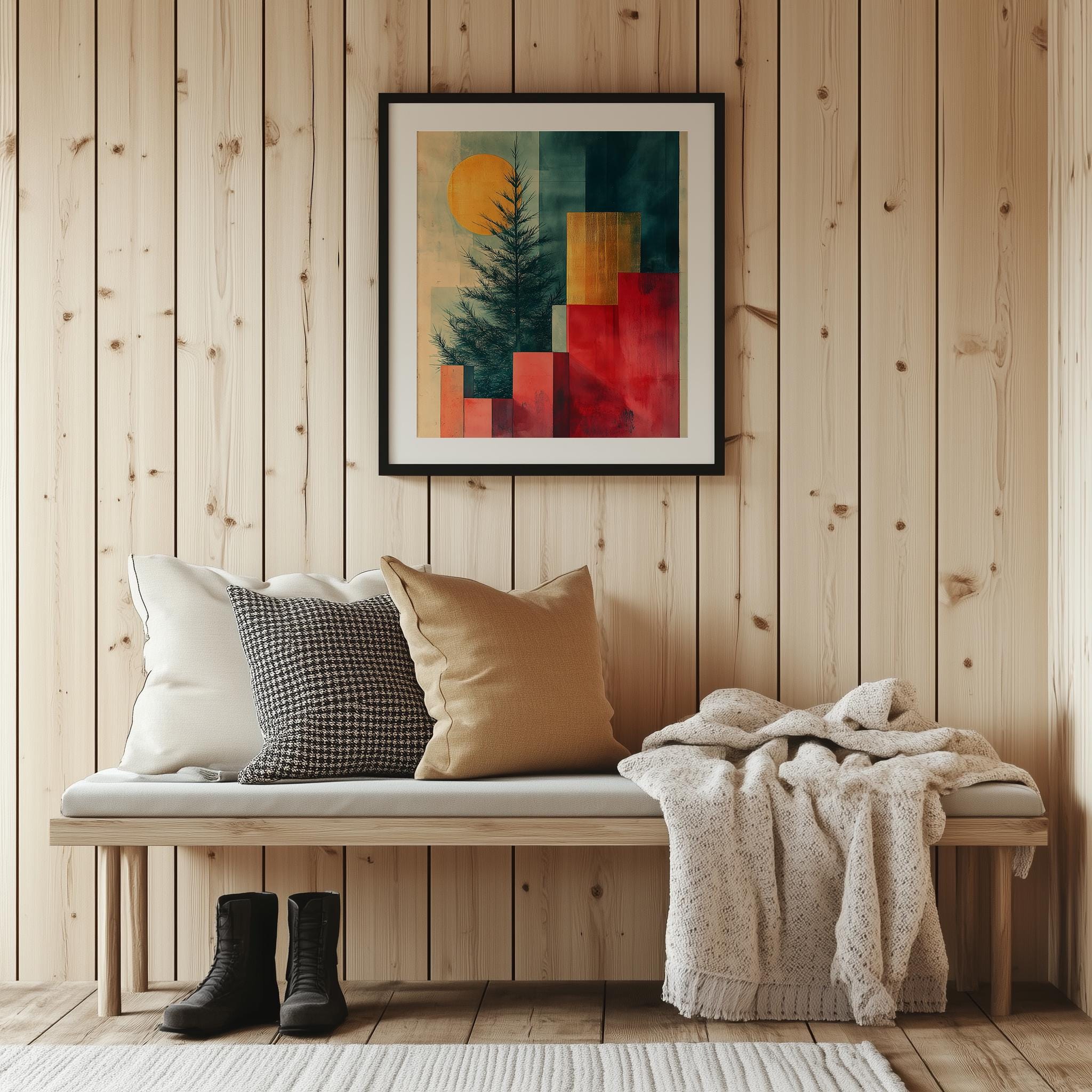 Immerse yourself in the charm of this rustic painting of a beautifully crafted Christmas tree silhouette. An instantly downloadable print, it's perfect for elevating your decor with budget-friendly charm. This gives you the flexibility to customize the size, frame, and material according to your personal taste and space, ensuring a perfect fit for your walls.