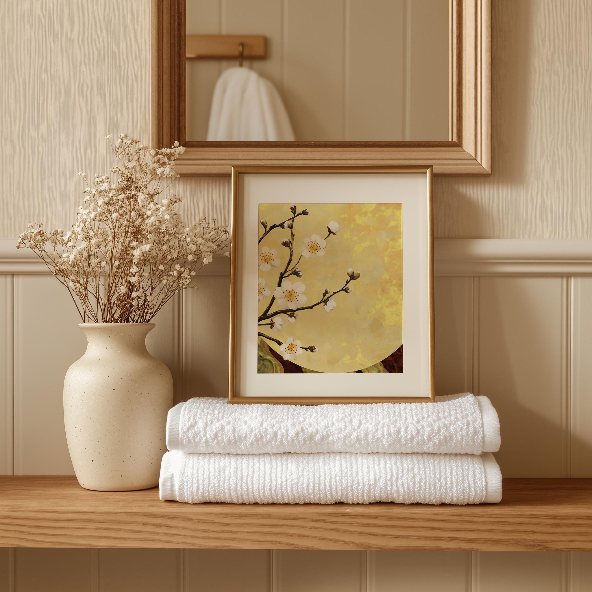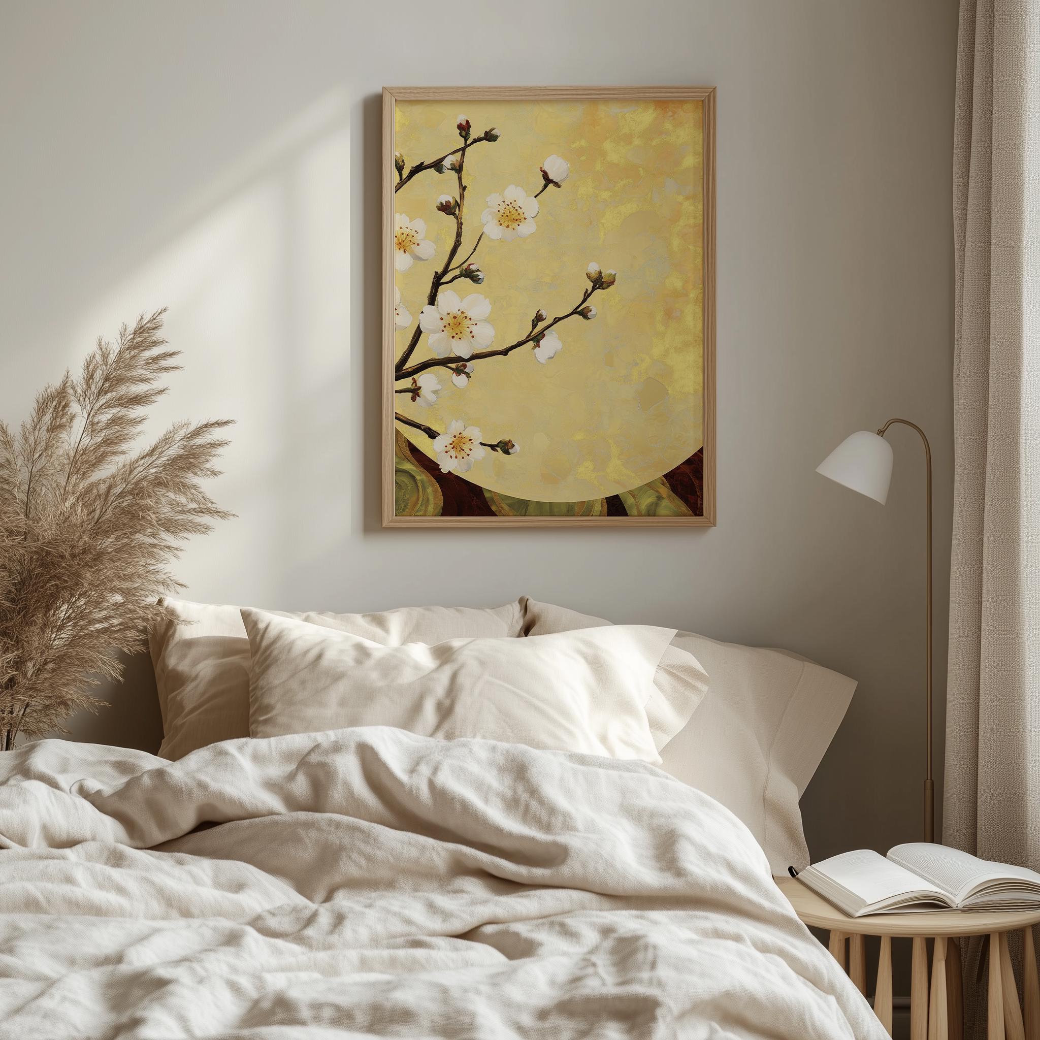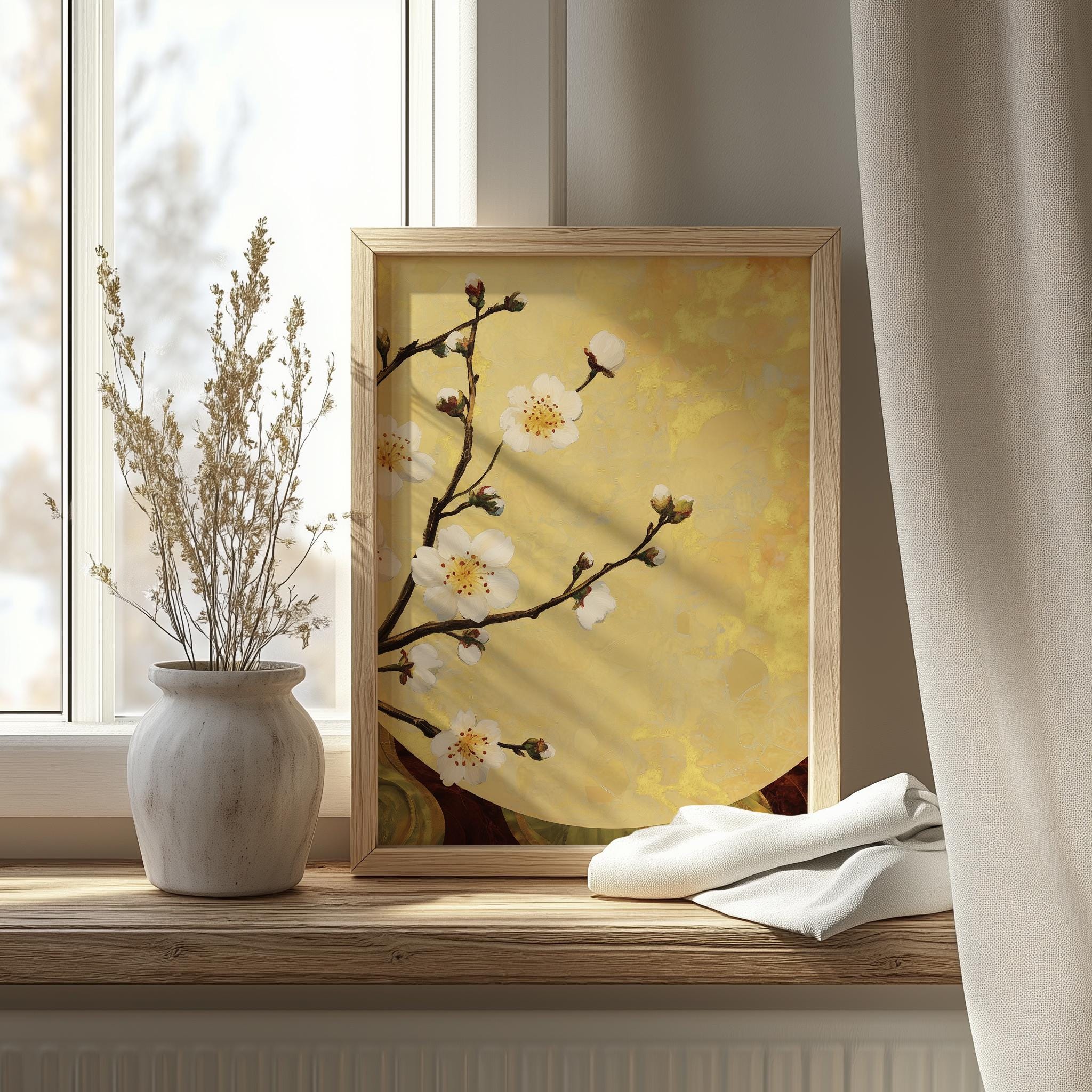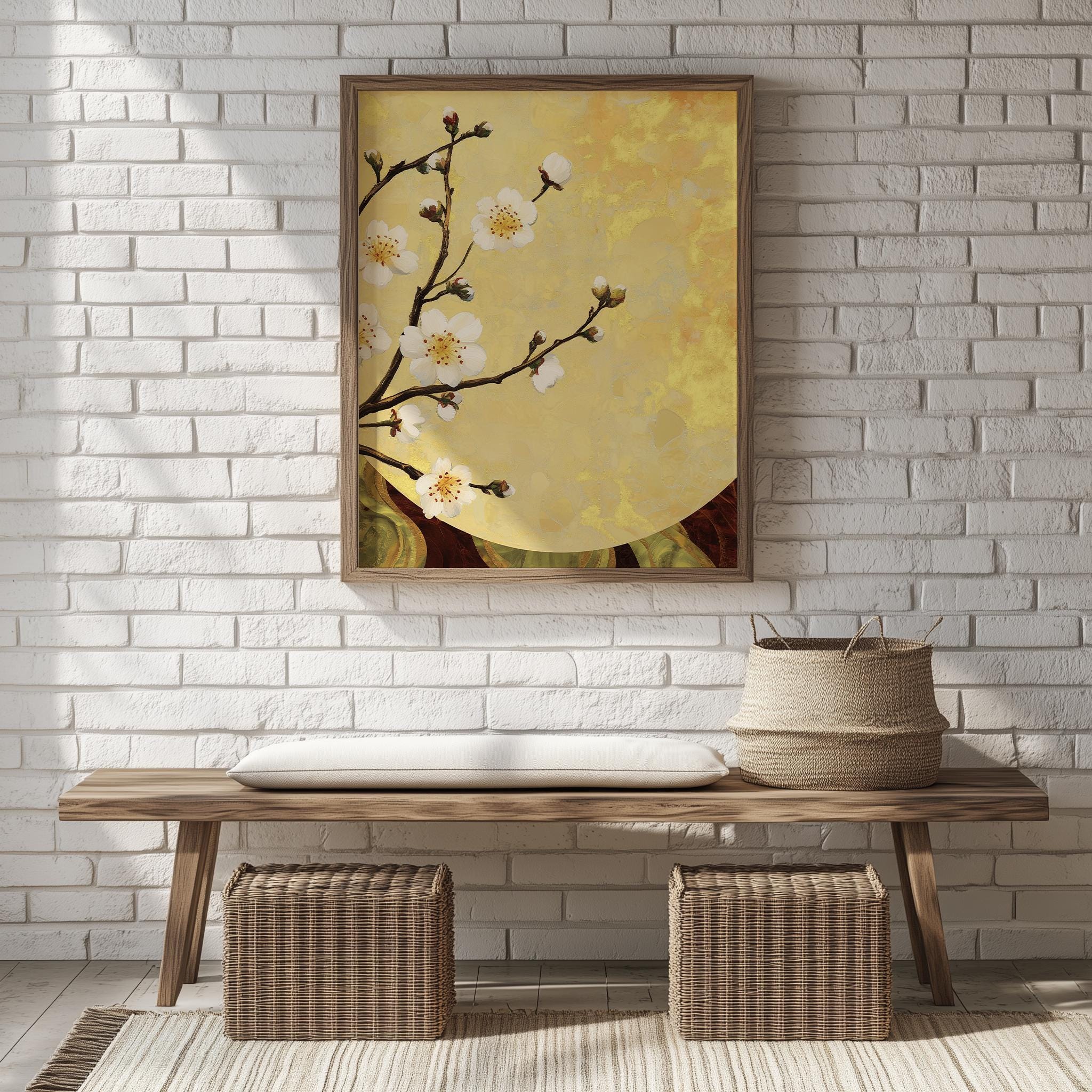 Immerse yourself in the charm of this rustic painting of delicate cherry blossom branches gently swaying in the spring breeze. An instantly downloadable print, it's perfect for elevating your decor with budget-friendly charm. This gives you the flexibility to customize the size, frame, and material according to your personal taste and space, ensuring a perfect fit for your walls.