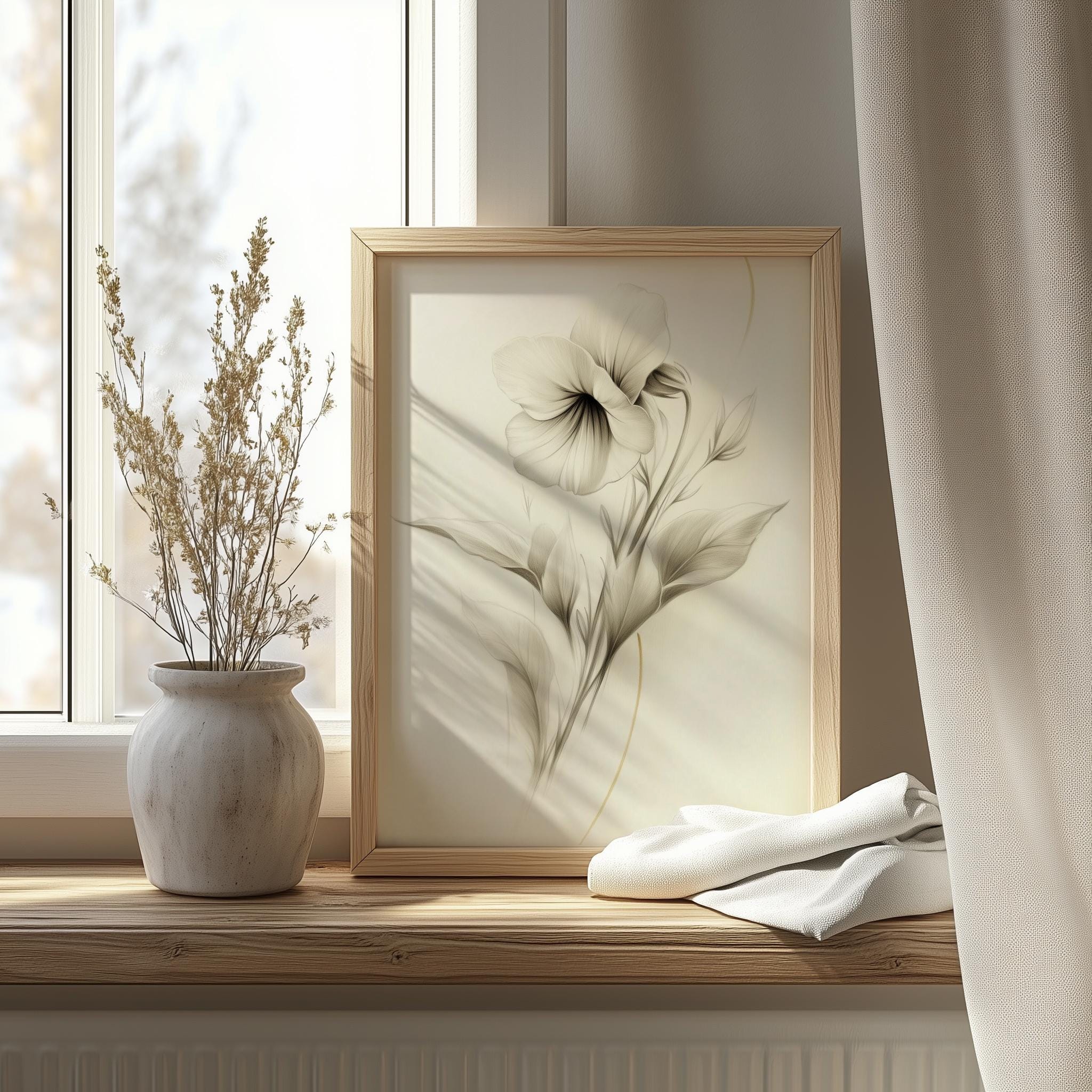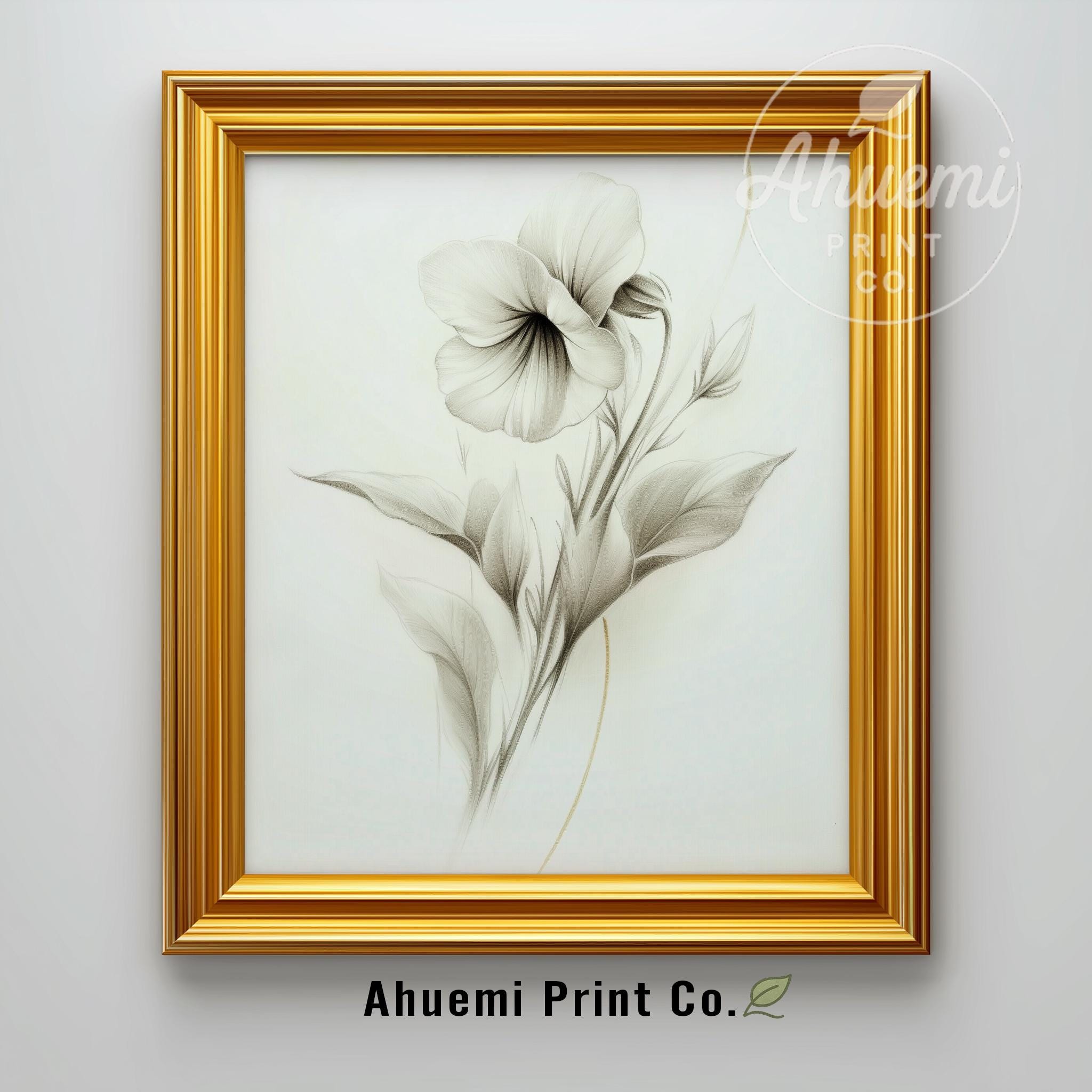 Immerse yourself in the charm of this rustic painting of a delicate violet flower, beautifully illustrated in a vintage pencil drawing style. An instantly downloadable print, it's perfect for elevating your decor with budget-friendly charm. This gives you the flexibility to customize the size, frame, and material according to your personal taste and space, ensuring a perfect fit for your walls.