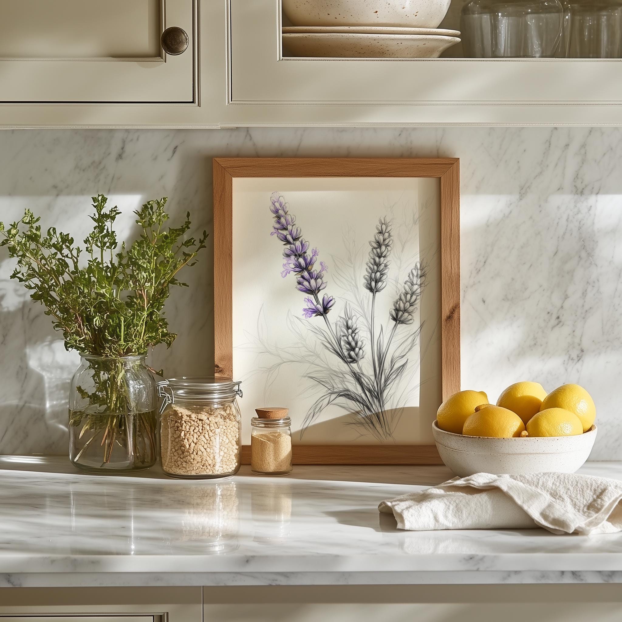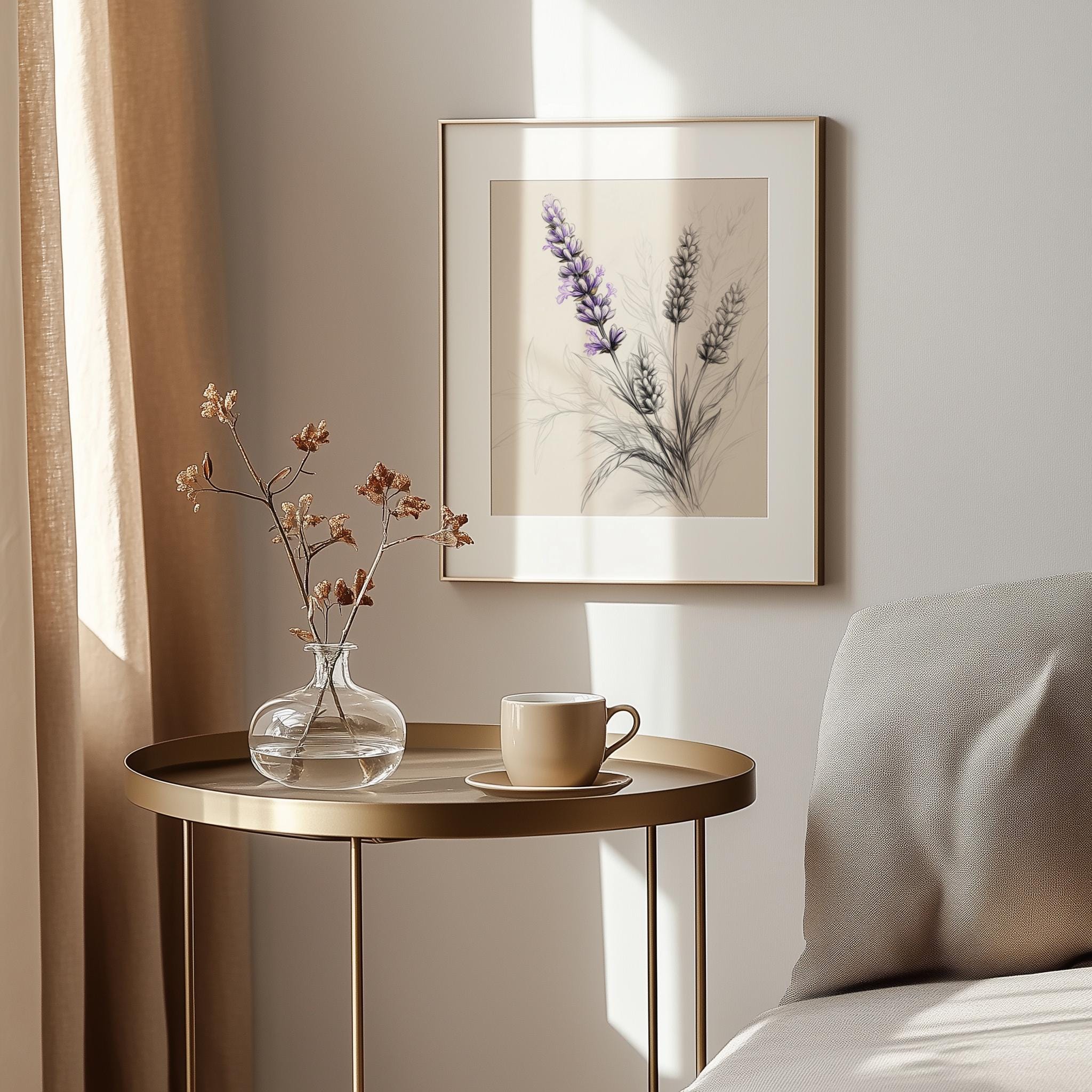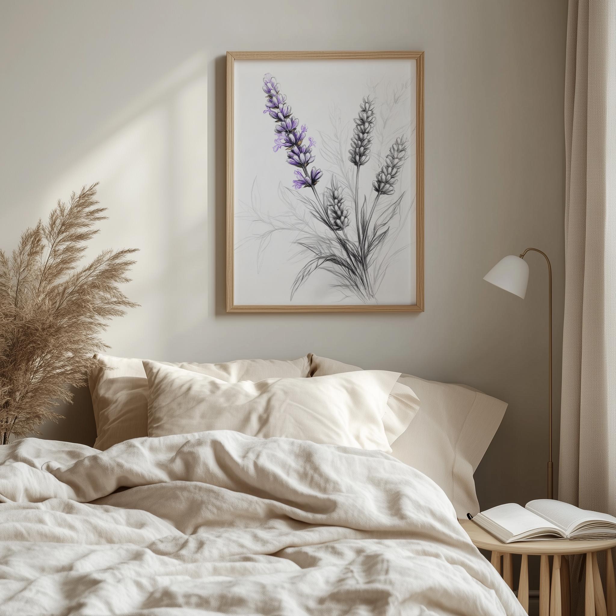 Immerse yourself in the charm of this rustic painting of a delicate lavender branch, beautifully rendered in pencil sketch. An instantly downloadable print, it's perfect for elevating your decor with budget-friendly charm. This gives you the flexibility to customize the size, frame, and material according to your personal taste and space, ensuring a perfect fit for your walls.