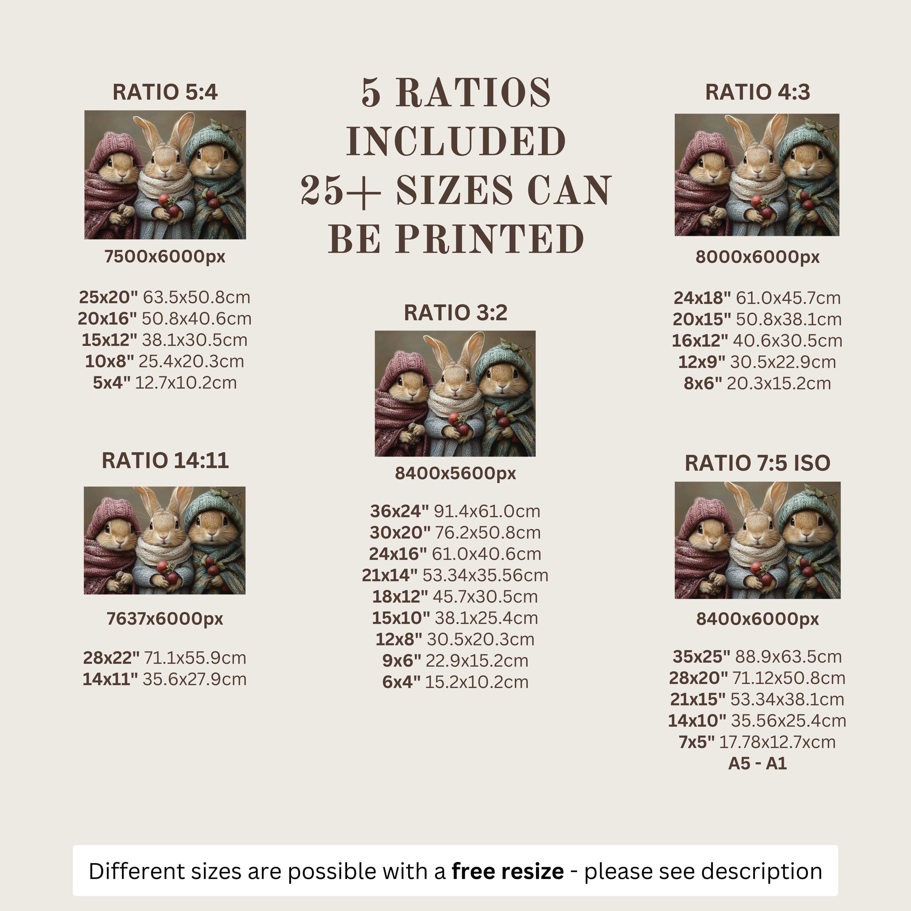 Each artwork includes 5 aspect ratios with 25+ print sizes. Most standard frames are covered. One custom resize per purchase available—message before ordering.