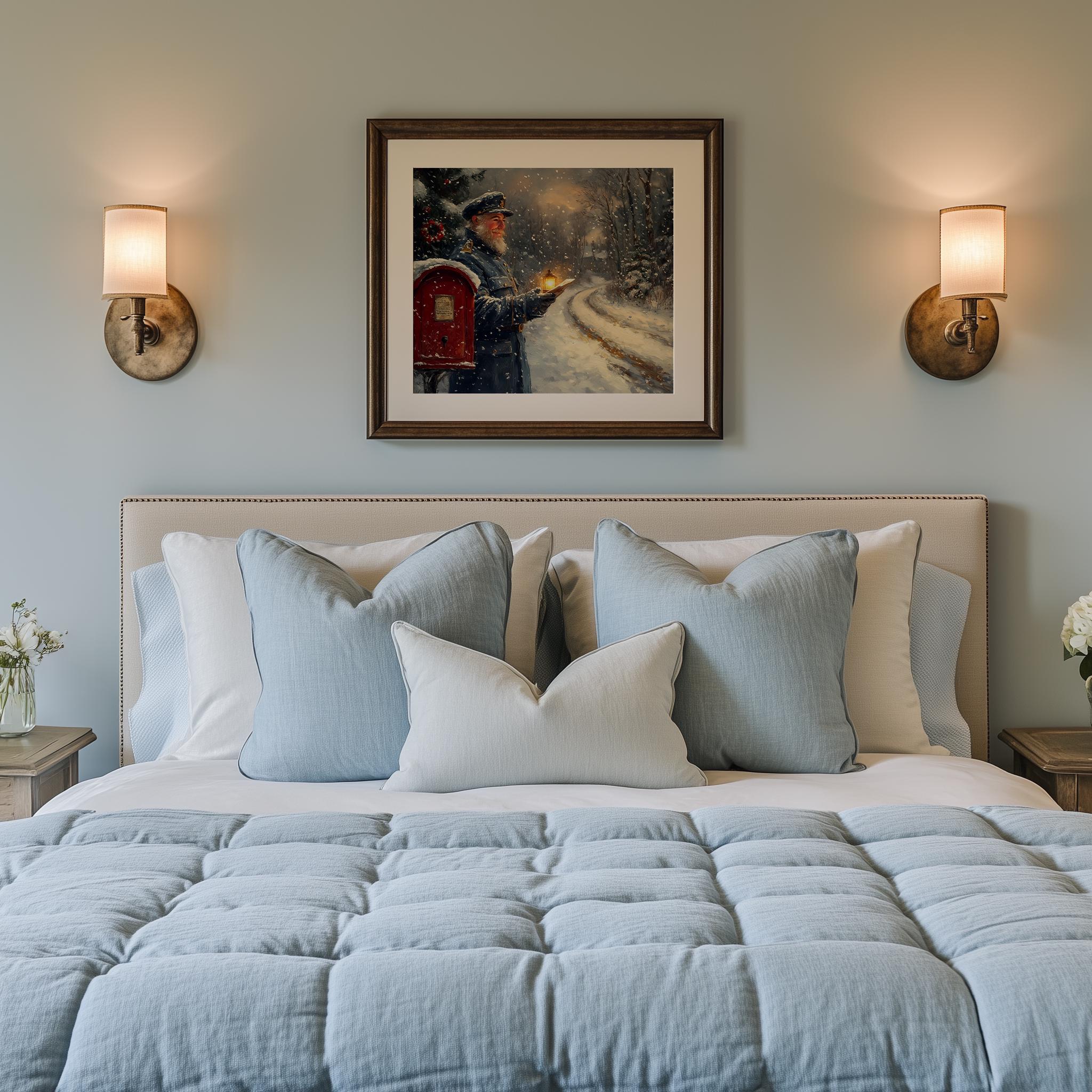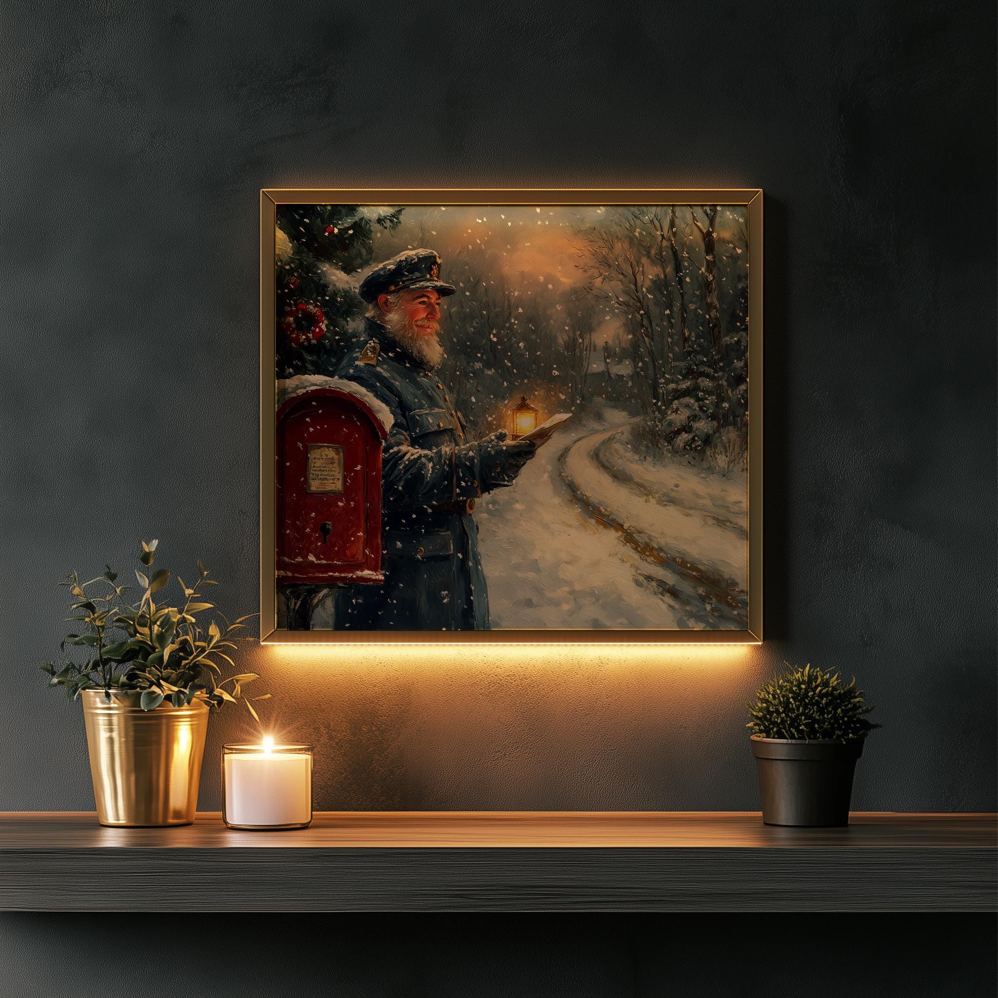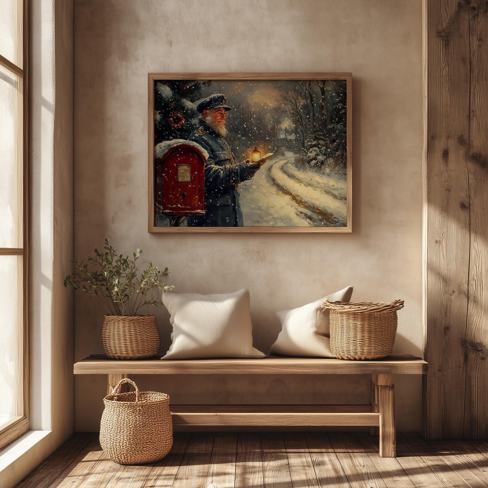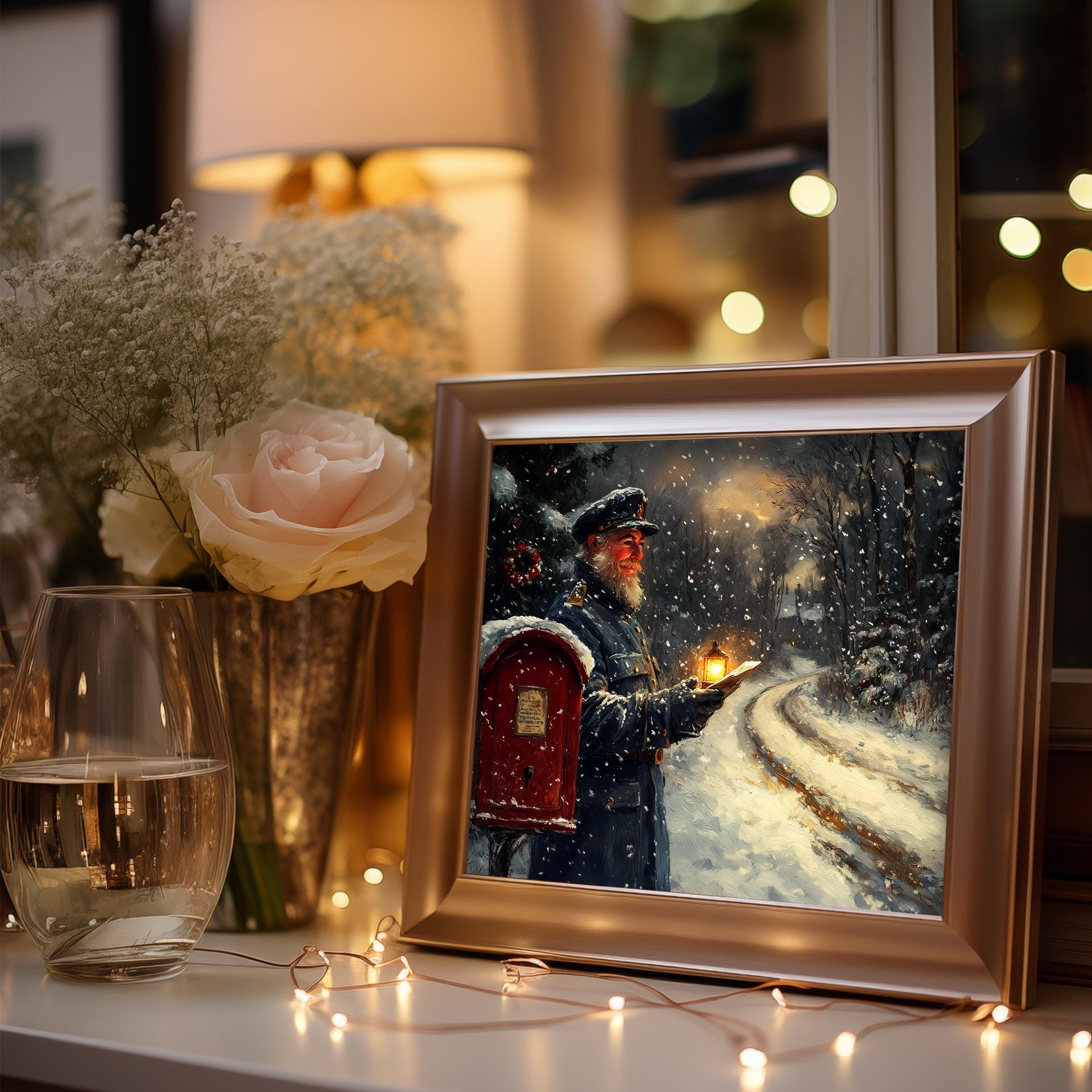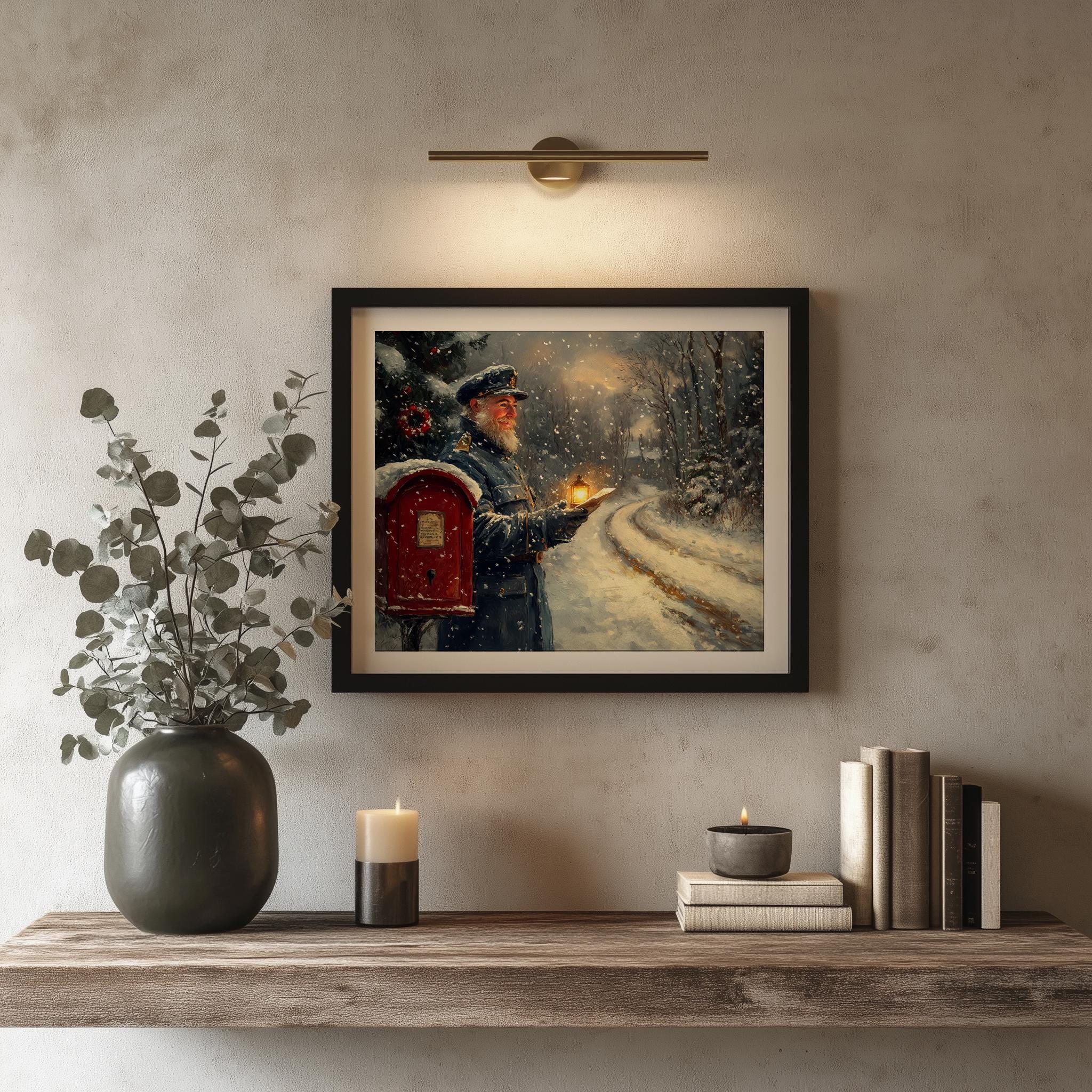 Immerse yourself in the charm with this rustic painting of a mail carrier braving the snowy landscape. An instantly downloadable print, it's perfect for elevating your decor with budget-friendly charm. This gives you the flexibility to customize the size, frame, and material according to your personal taste and space, ensuring a perfect fit for your walls.
