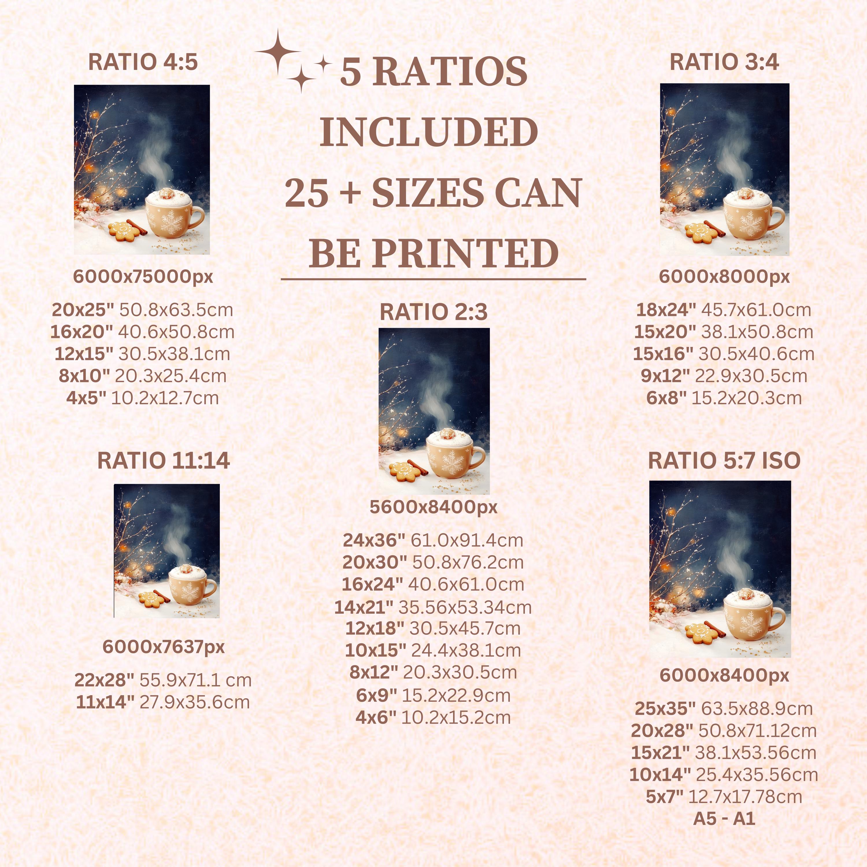 Each artwork includes 5 aspect ratios with 25+ print sizes. Most standard frames are covered. One custom resize per purchase available—message before ordering.
