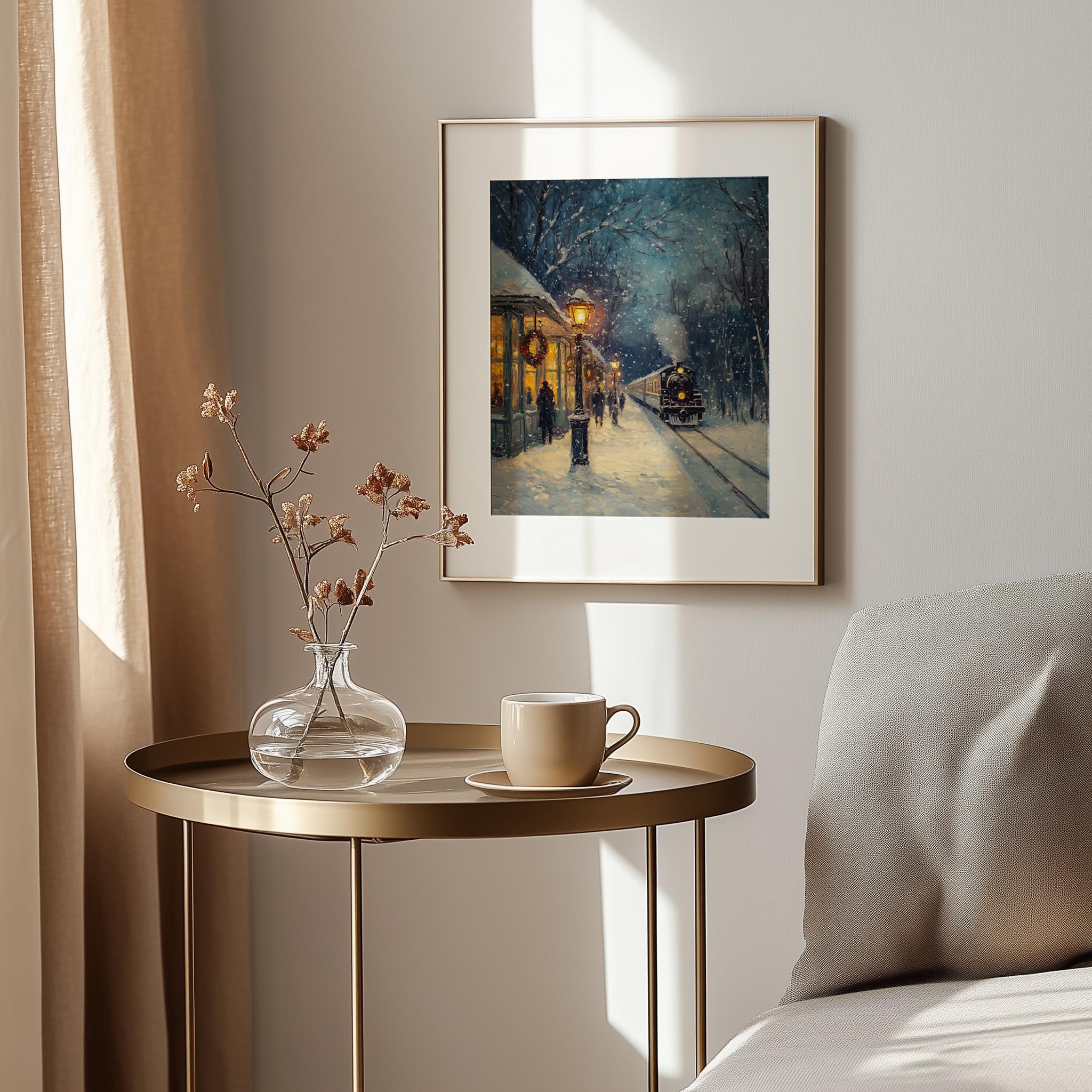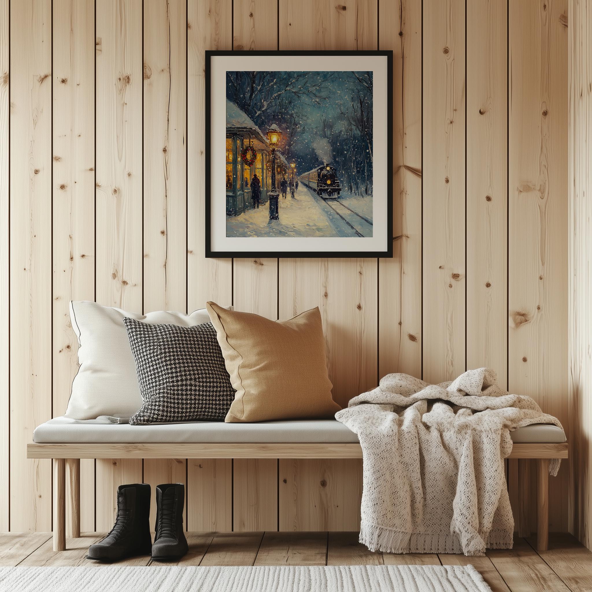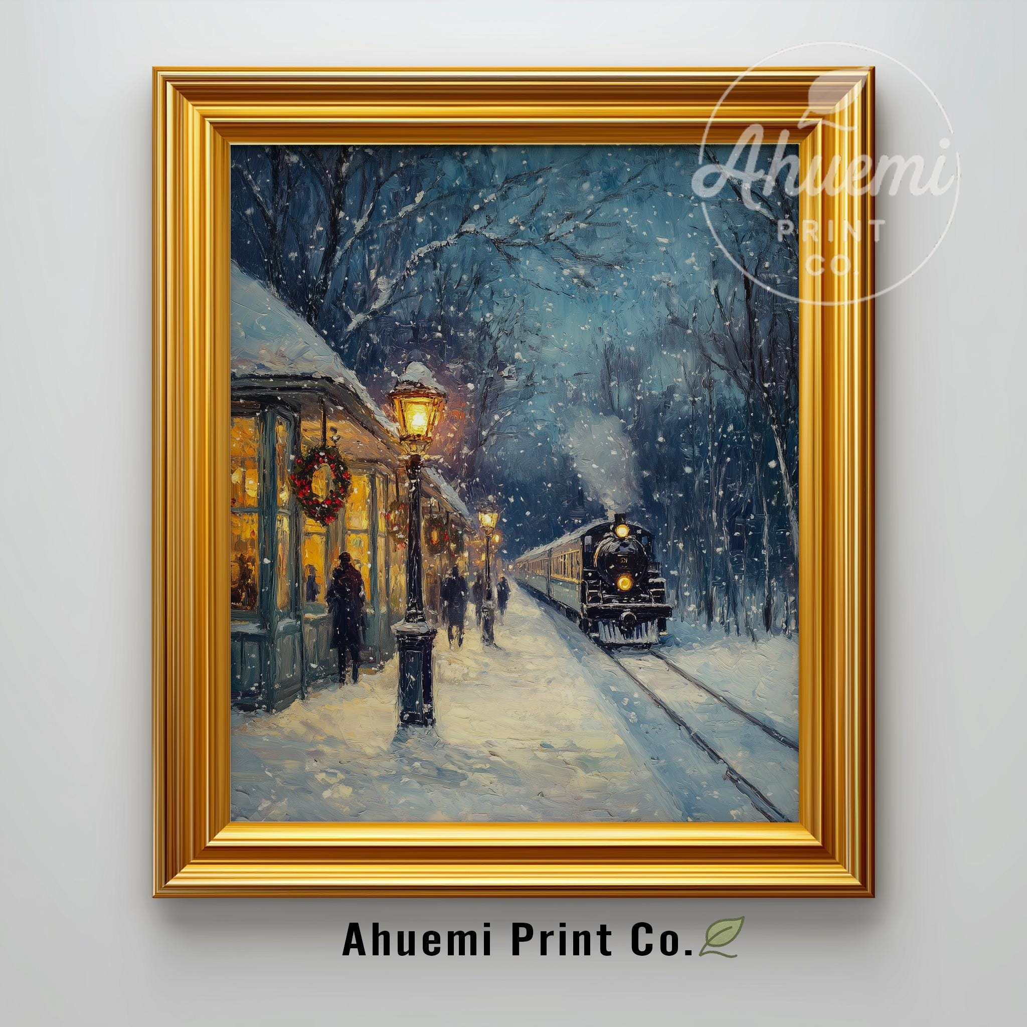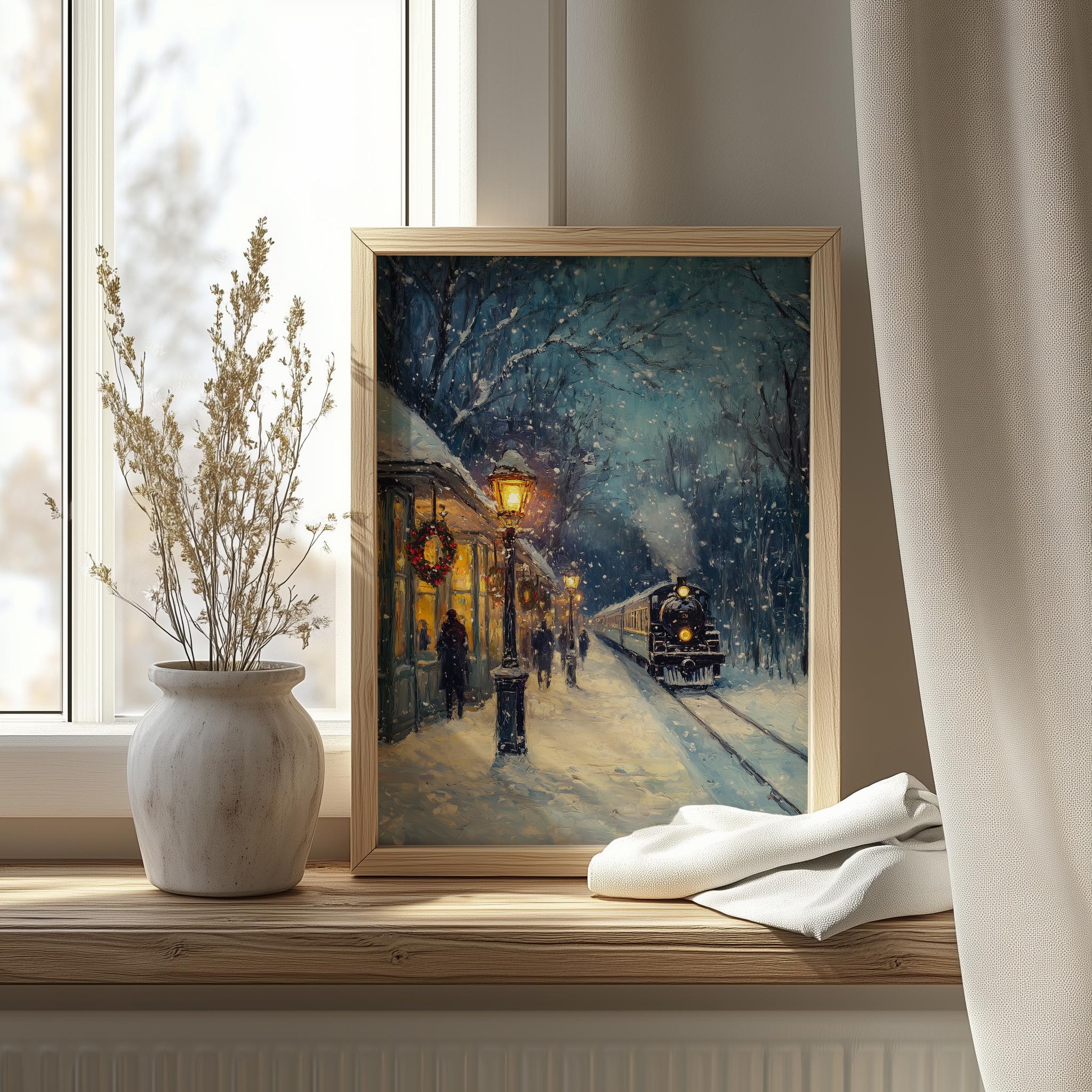 Immerse yourself in the charm of this rustic painting of a vintage steam locomotive gracefully traversing a snow-covered landscape. An instantly downloadable print, it's perfect for elevating your decor with budget-friendly charm. This gives you the flexibility to customize the size, frame, and material according to your personal taste and space, ensuring a perfect fit for your walls.