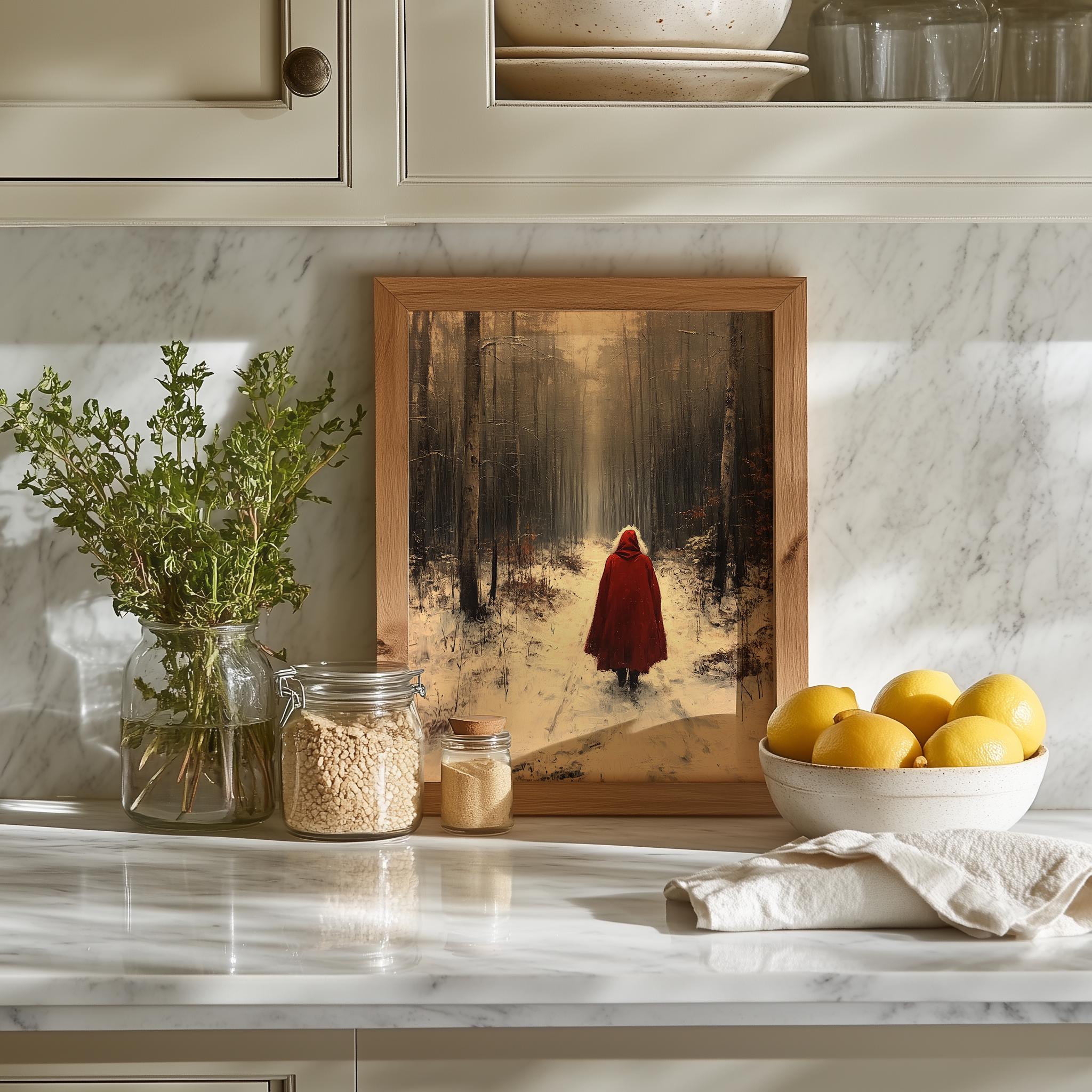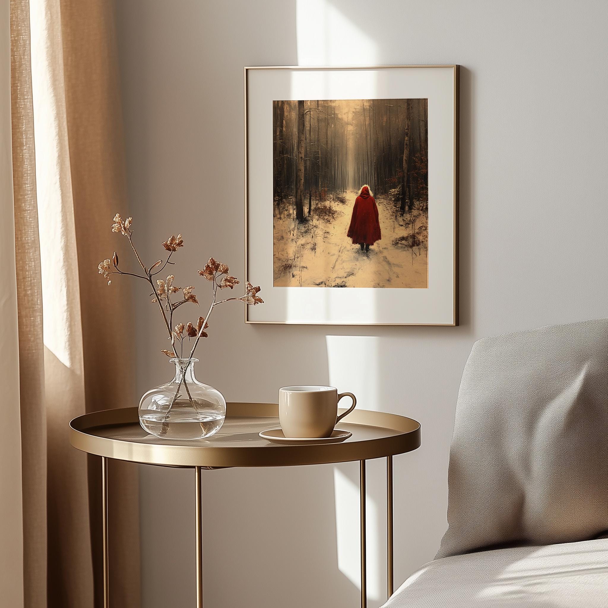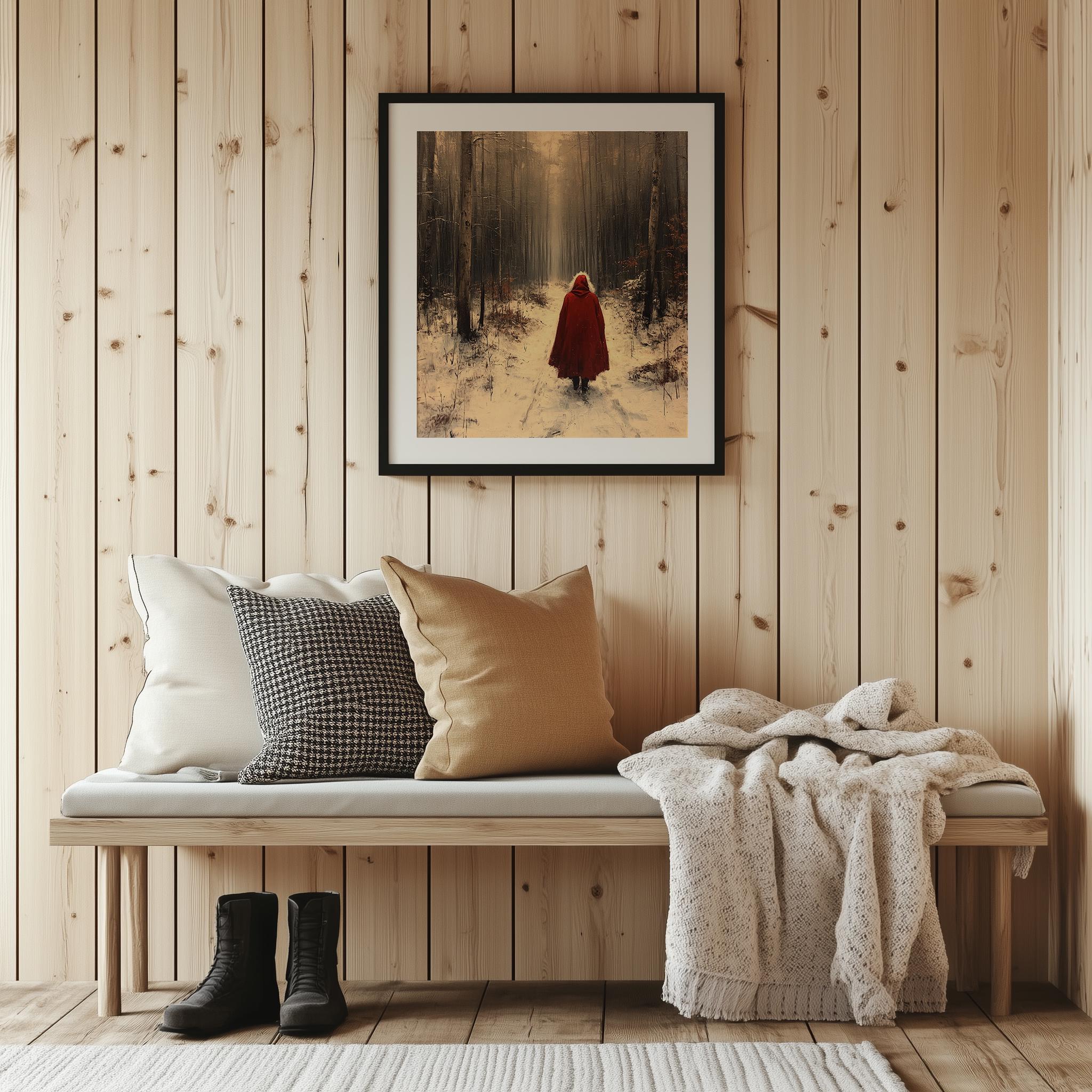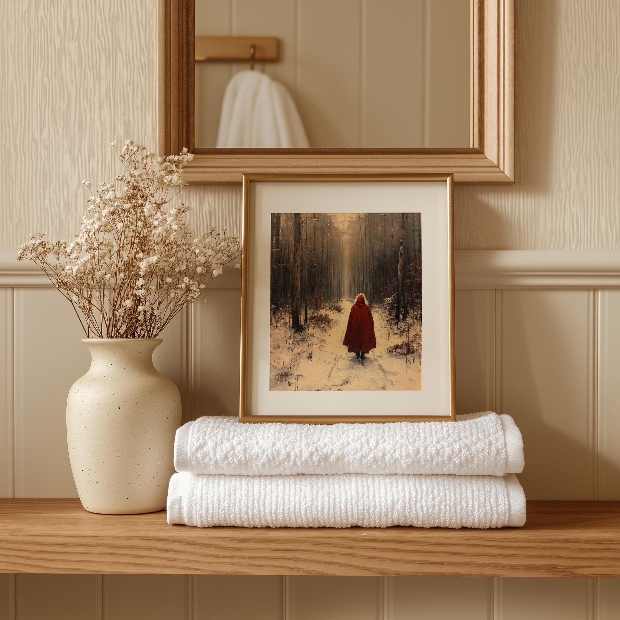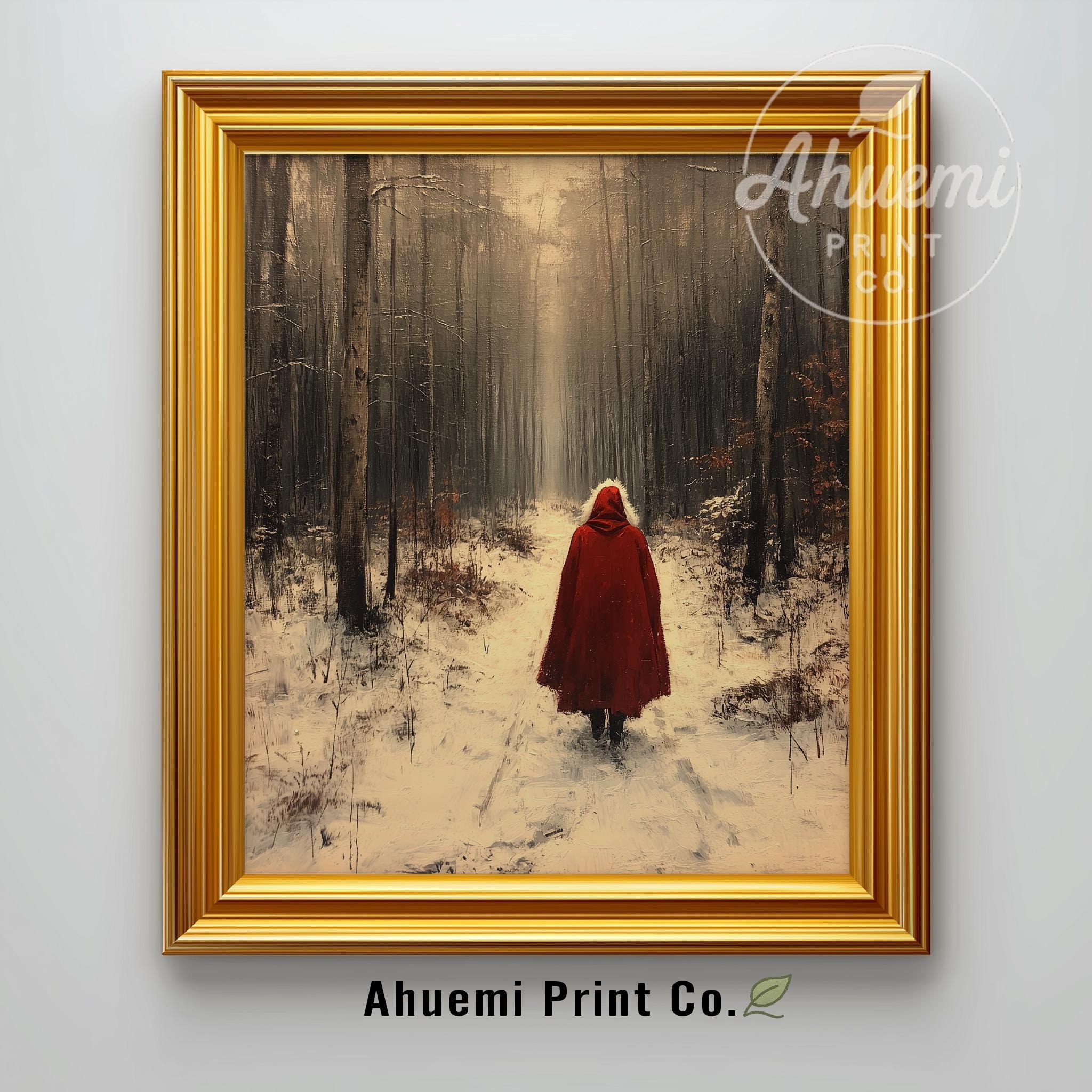 Immerse yourself in the charm of this rustic painting of a solitary Santa wandering through a snowy forest, surrounded by serene winter landscapes. An instantly downloadable print, it's perfect for elevating your decor with budget-friendly charm. This gives you the flexibility to customize the size, frame, and material according to your personal taste and space, ensuring a perfect fit for your walls.