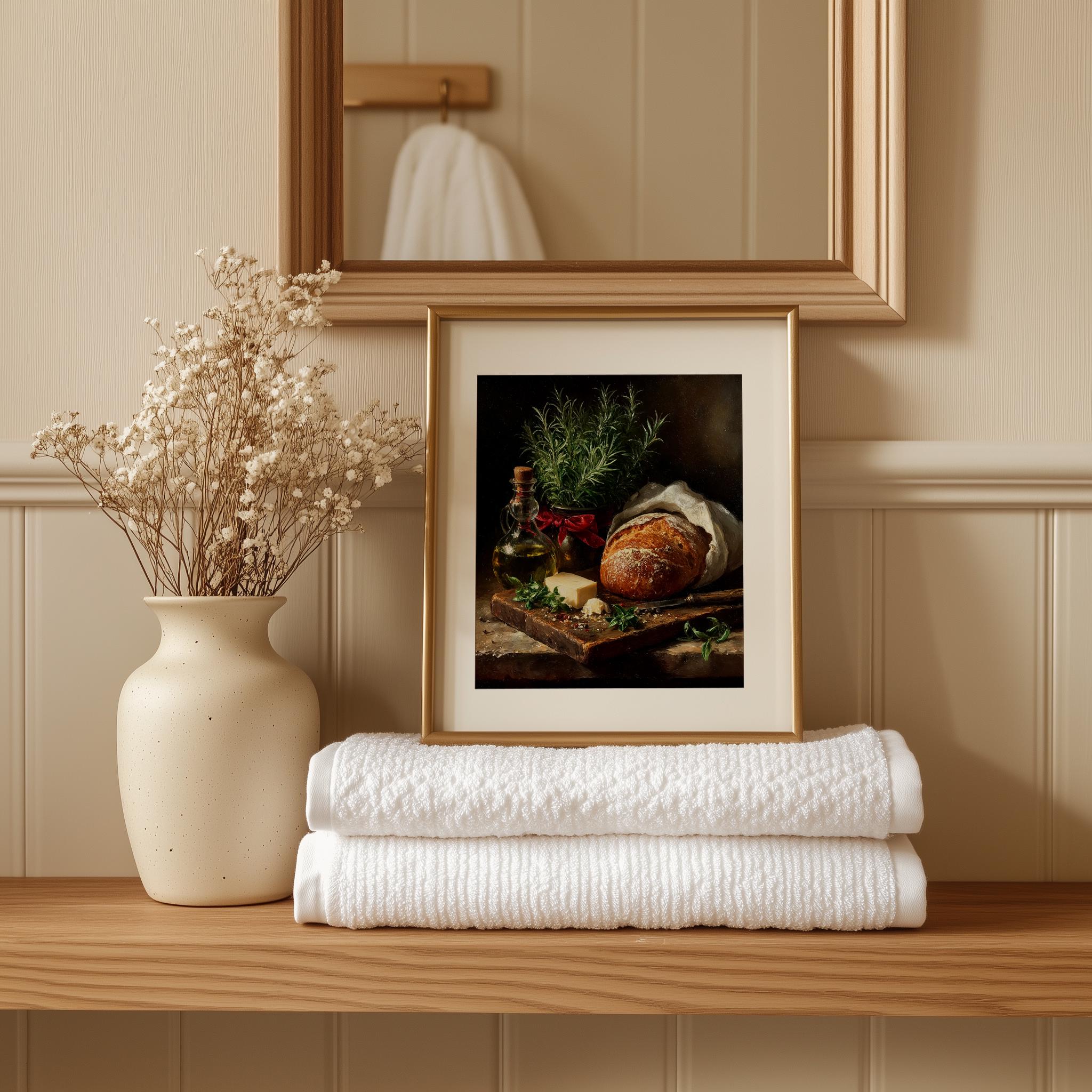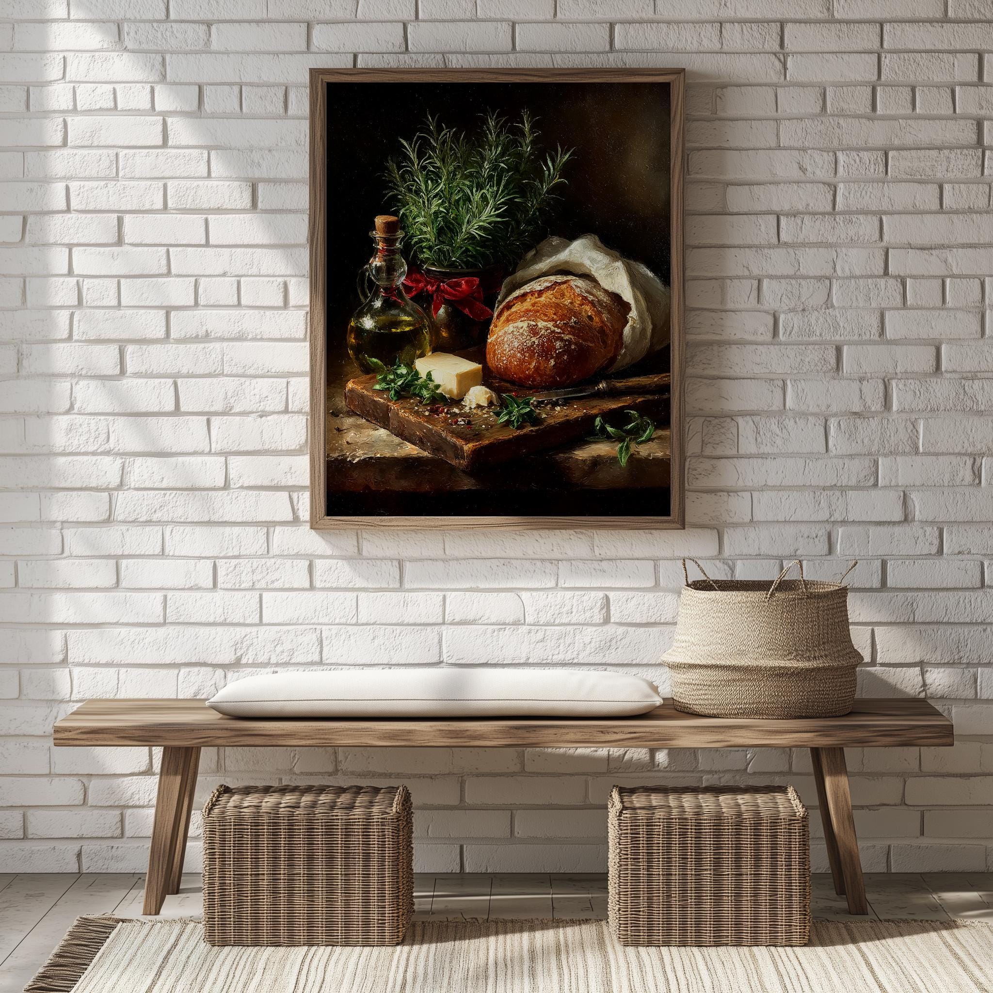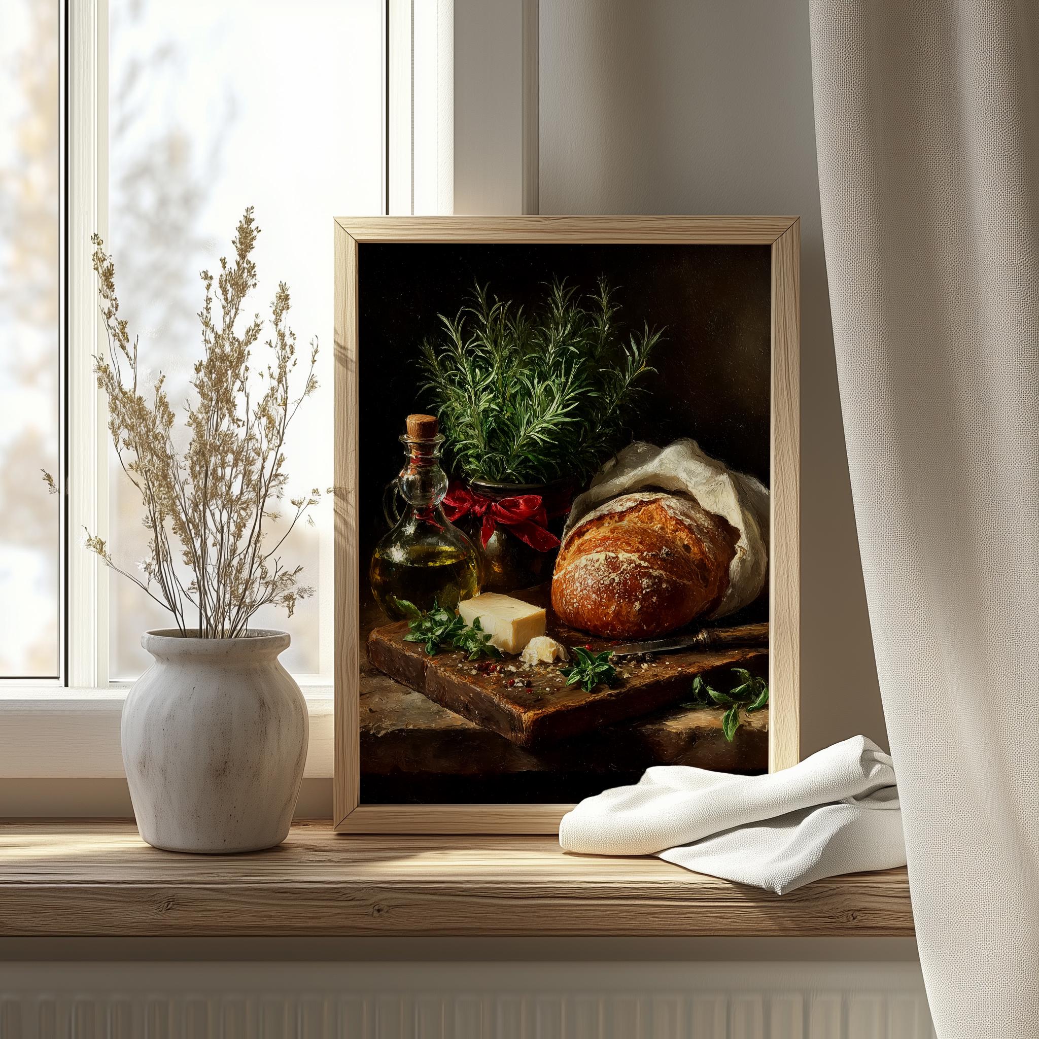 Immerse yourself in the charm of this rustic painting of a serene still life featuring fresh rosemary tied with a red ribbon. An instantly downloadable print, it's perfect for elevating your decor with budget-friendly charm. This gives you the flexibility to customize the size, frame, and material according to your personal taste and space, ensuring a perfect fit for your walls.