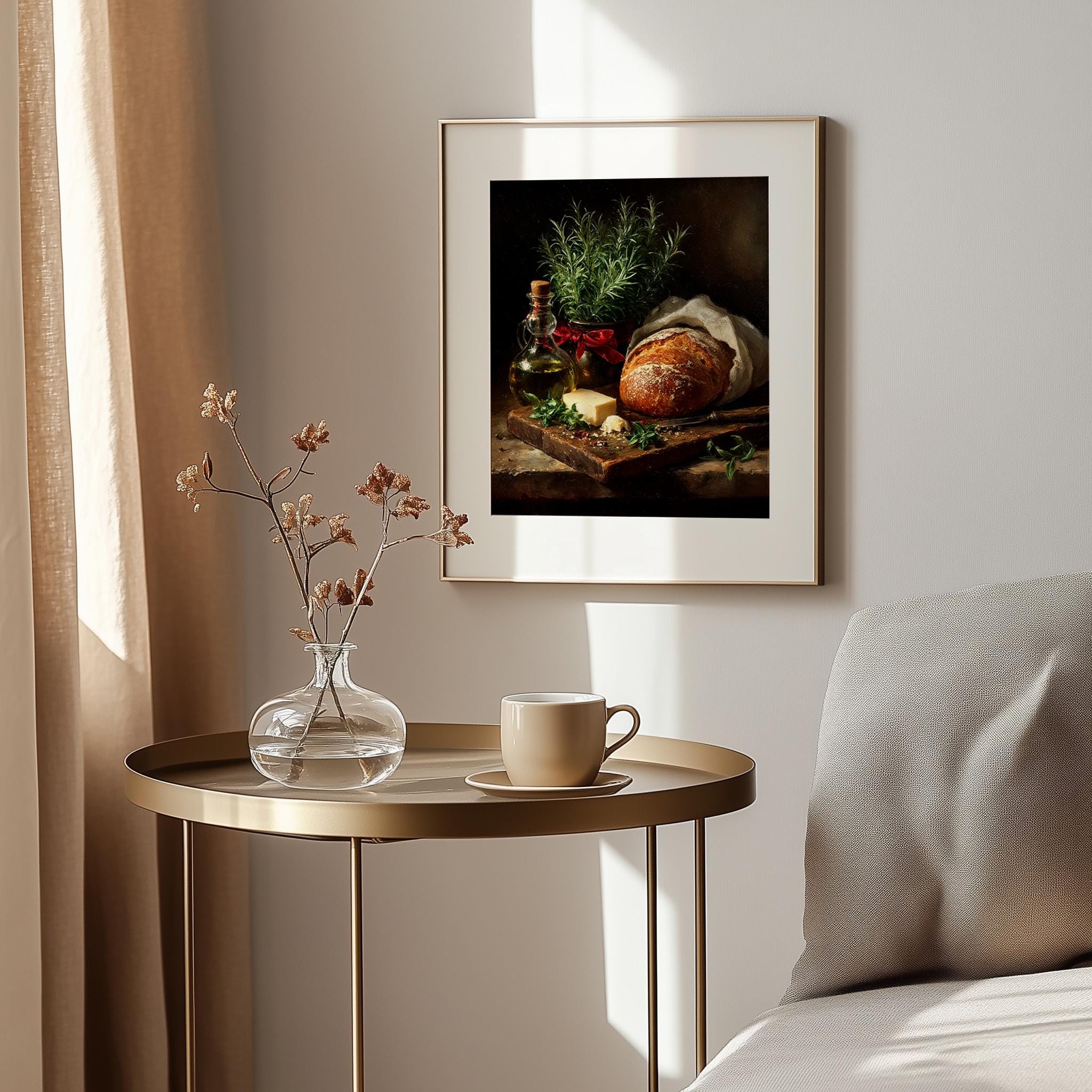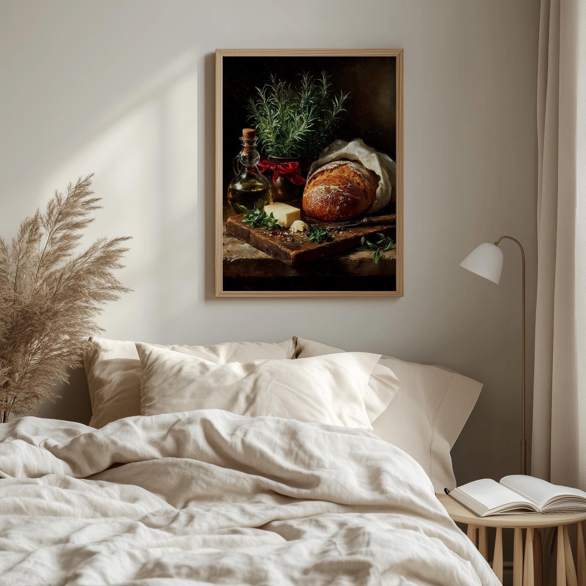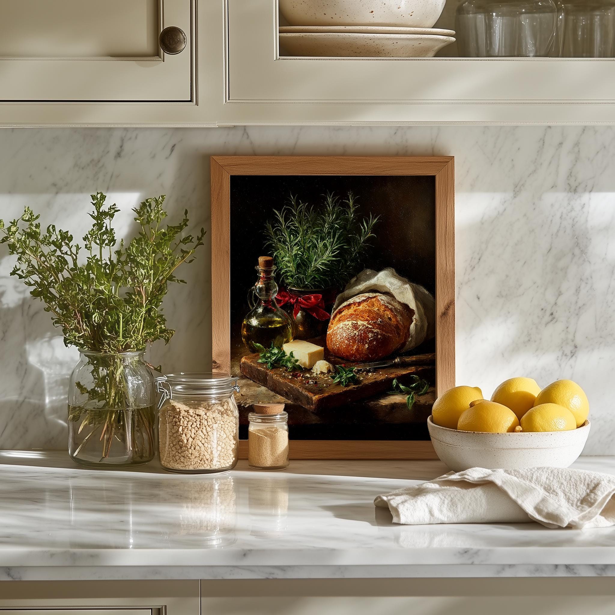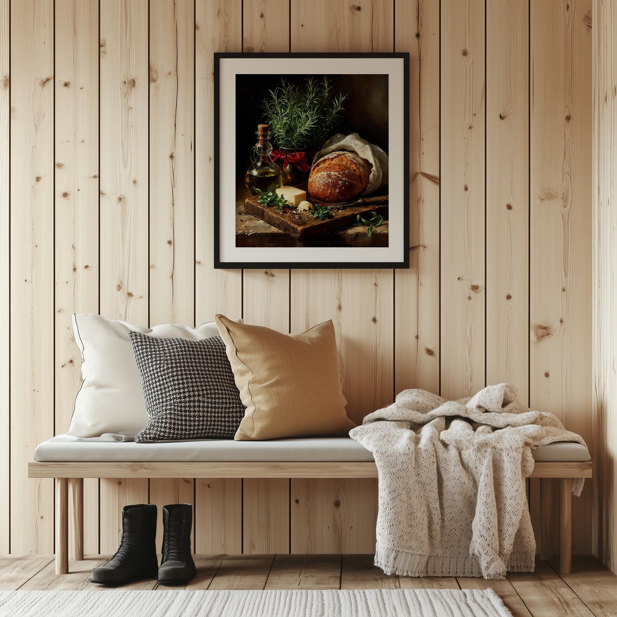 Immerse yourself in the charm of this rustic painting of a serene still life featuring fresh rosemary tied with a red ribbon. An instantly downloadable print, it's perfect for elevating your decor with budget-friendly charm. This gives you the flexibility to customize the size, frame, and material according to your personal taste and space, ensuring a perfect fit for your walls.