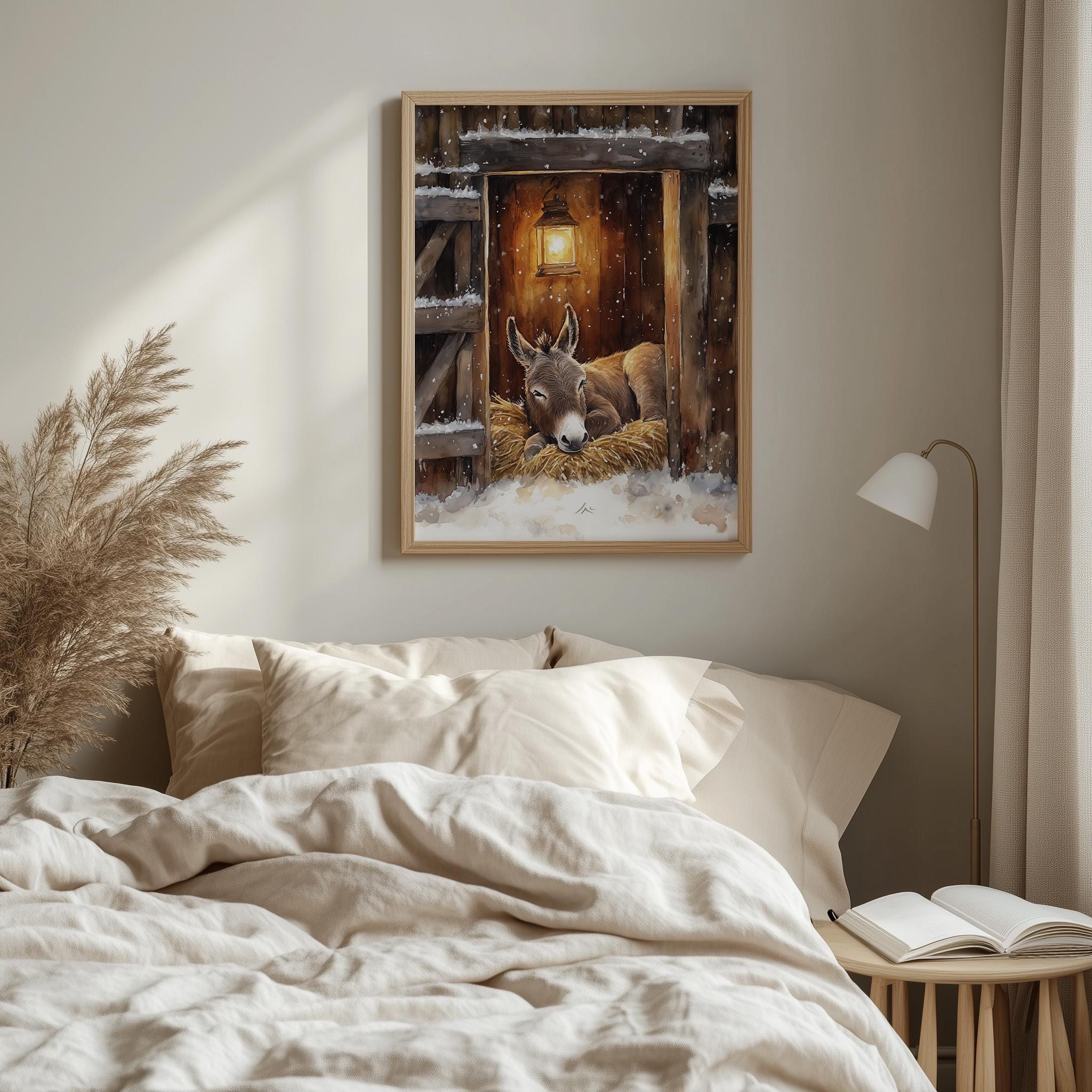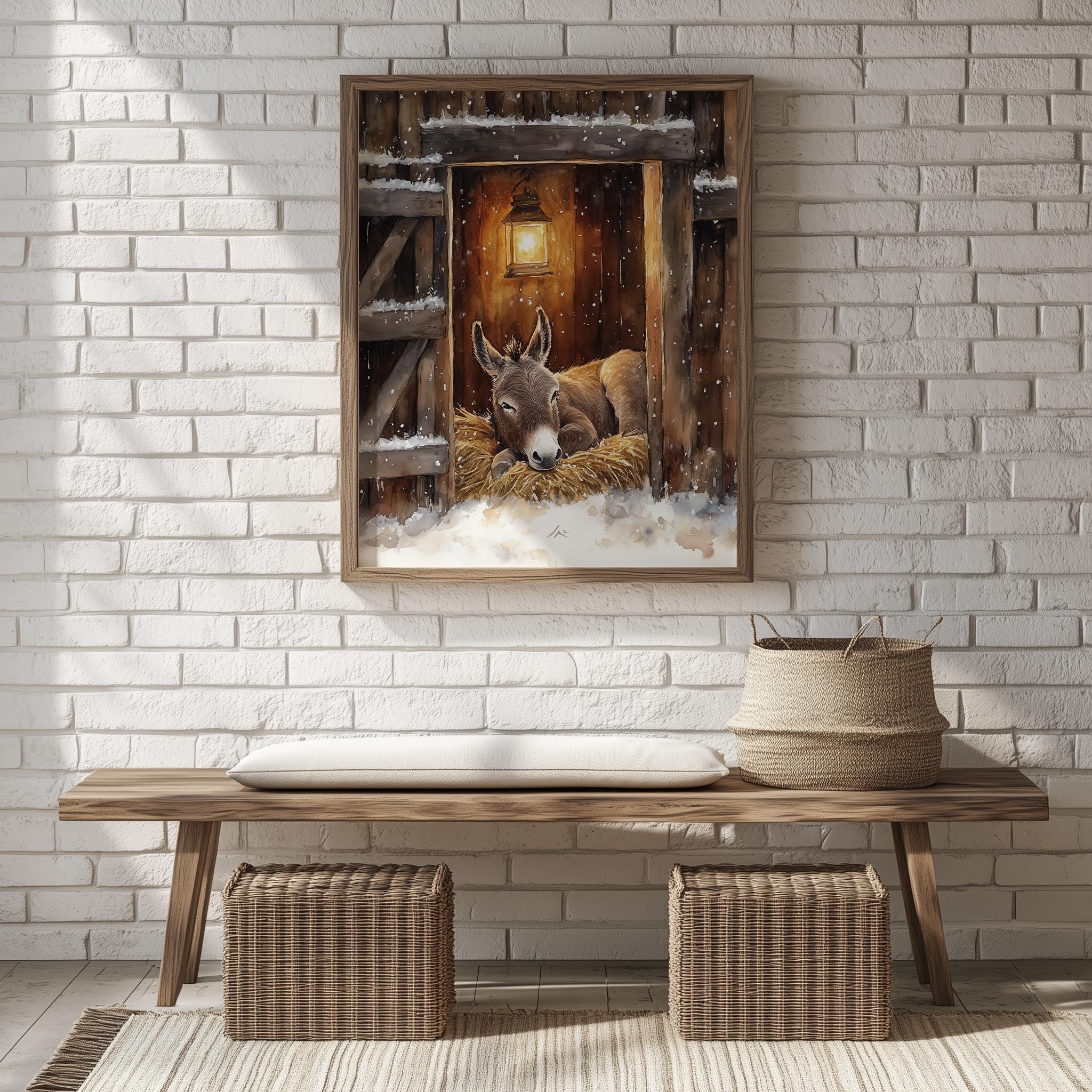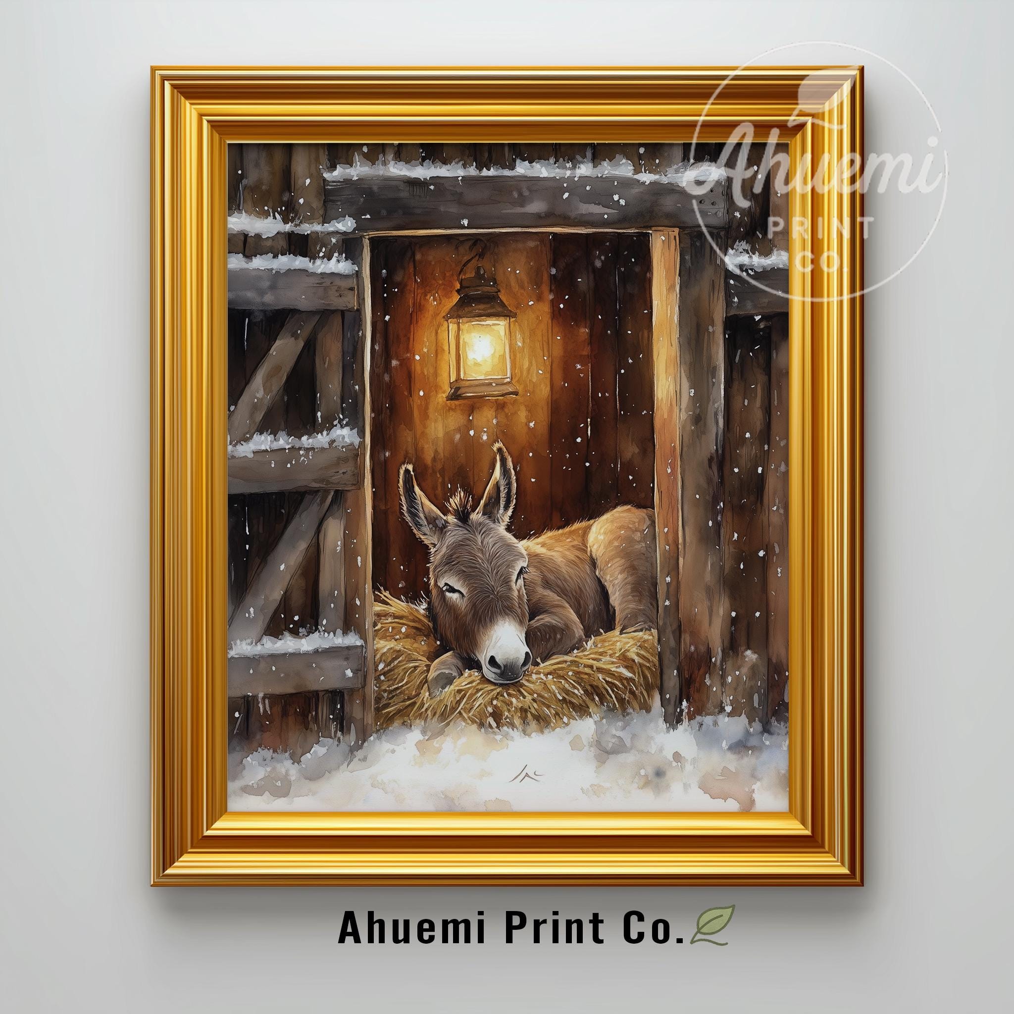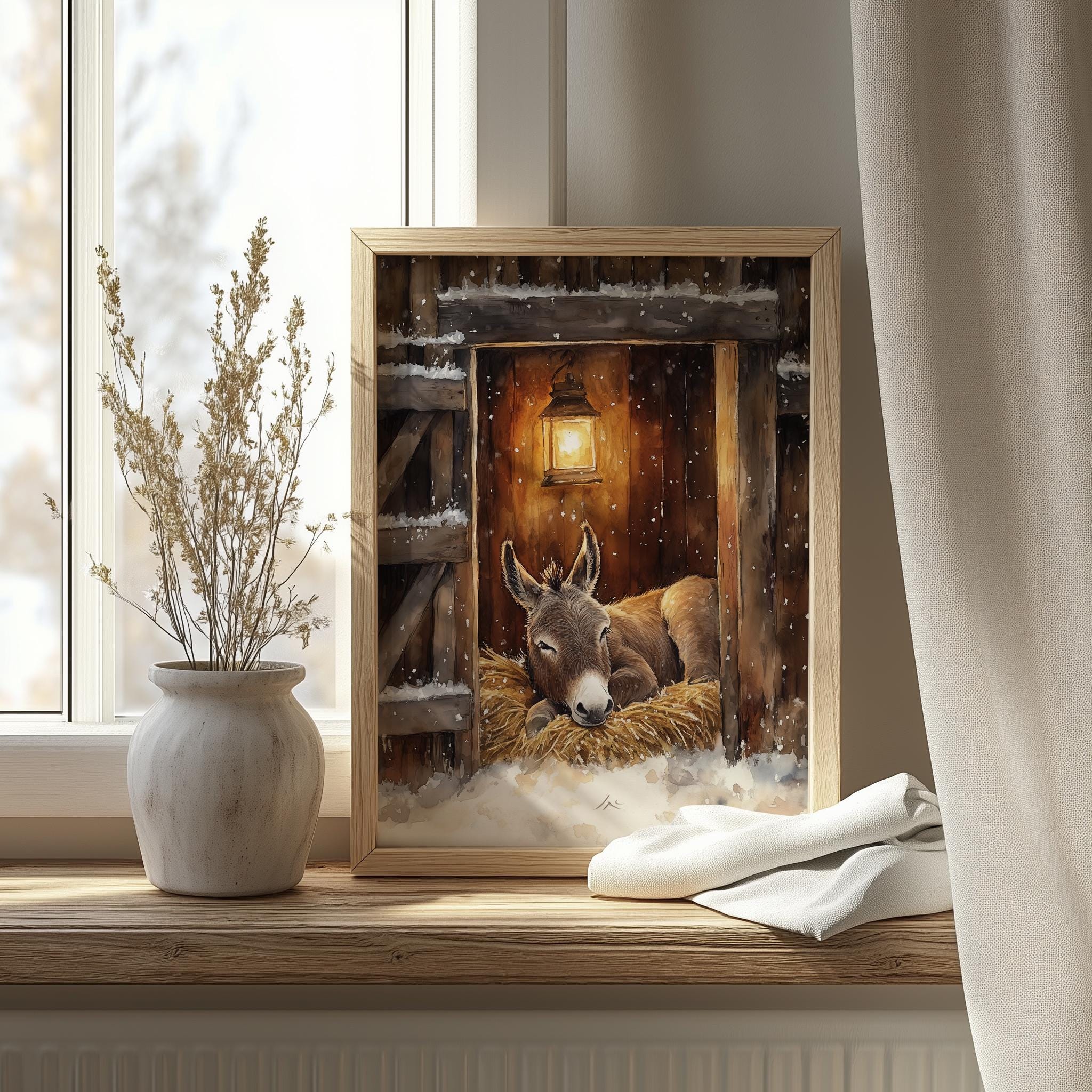 Immerse yourself in the charm of this rustic painting of a serene donkey resting in a cozy stable. An instantly downloadable print, it's perfect for elevating your decor with budget-friendly charm. This gives you the flexibility to customize the size, frame, and material according to your personal taste and space, ensuring a perfect fit for your walls.