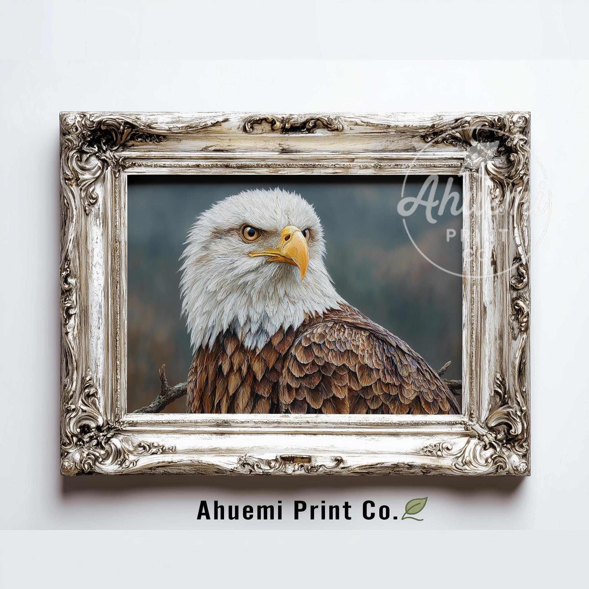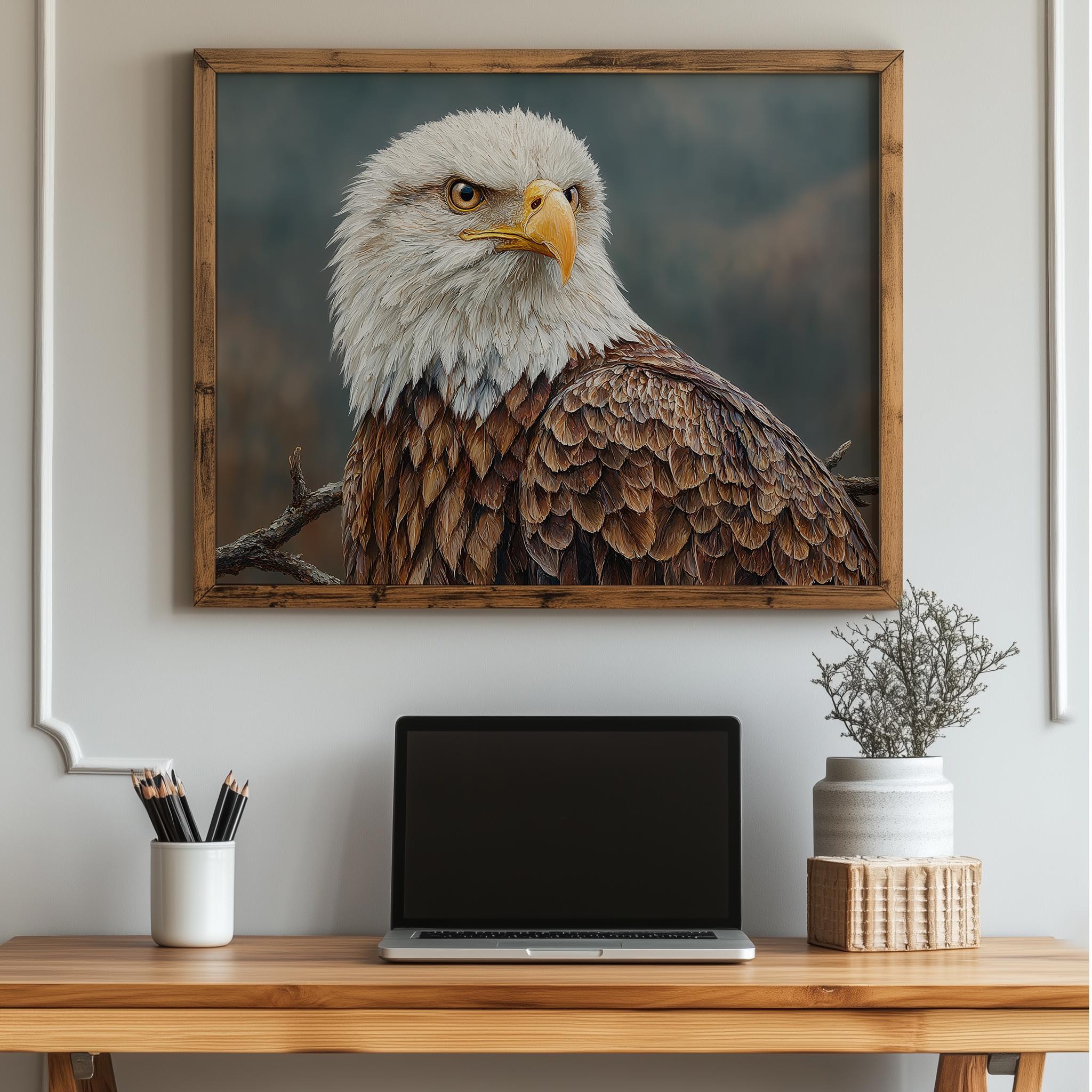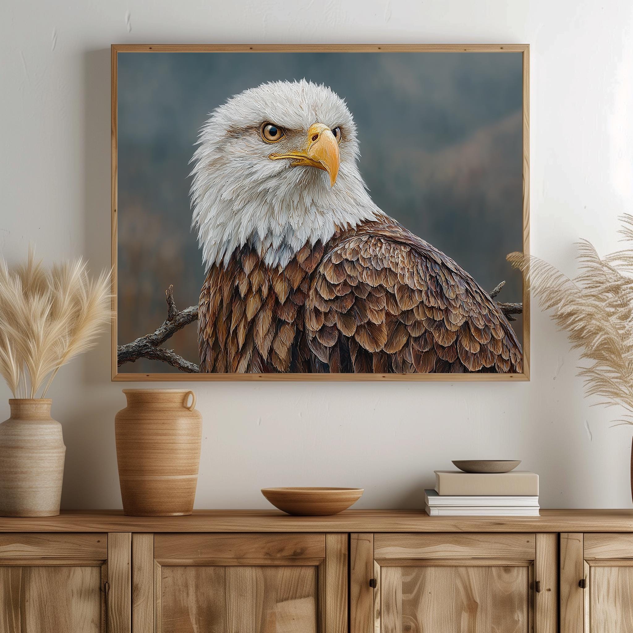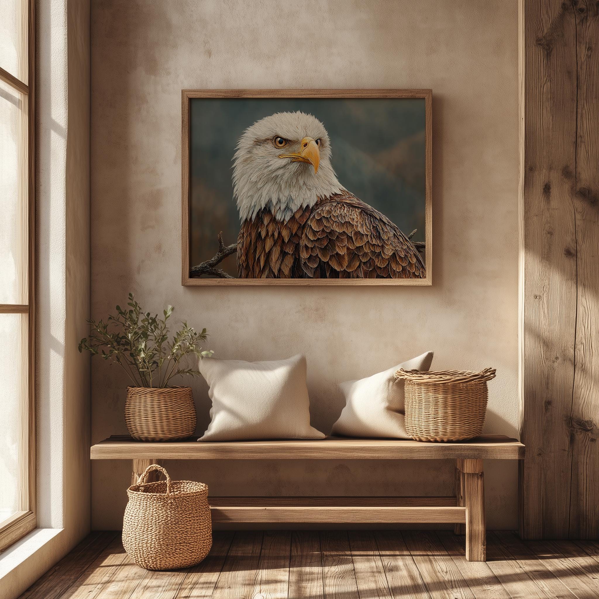 Immerse yourself in the charm with this rustic painting of a majestic bald eagle. An instantly downloadable print, it's perfect for elevating your decor with budget-friendly charm. This gives you the flexibility to customize the size, frame, and material according to your personal taste and space, ensuring a perfect fit for your walls.