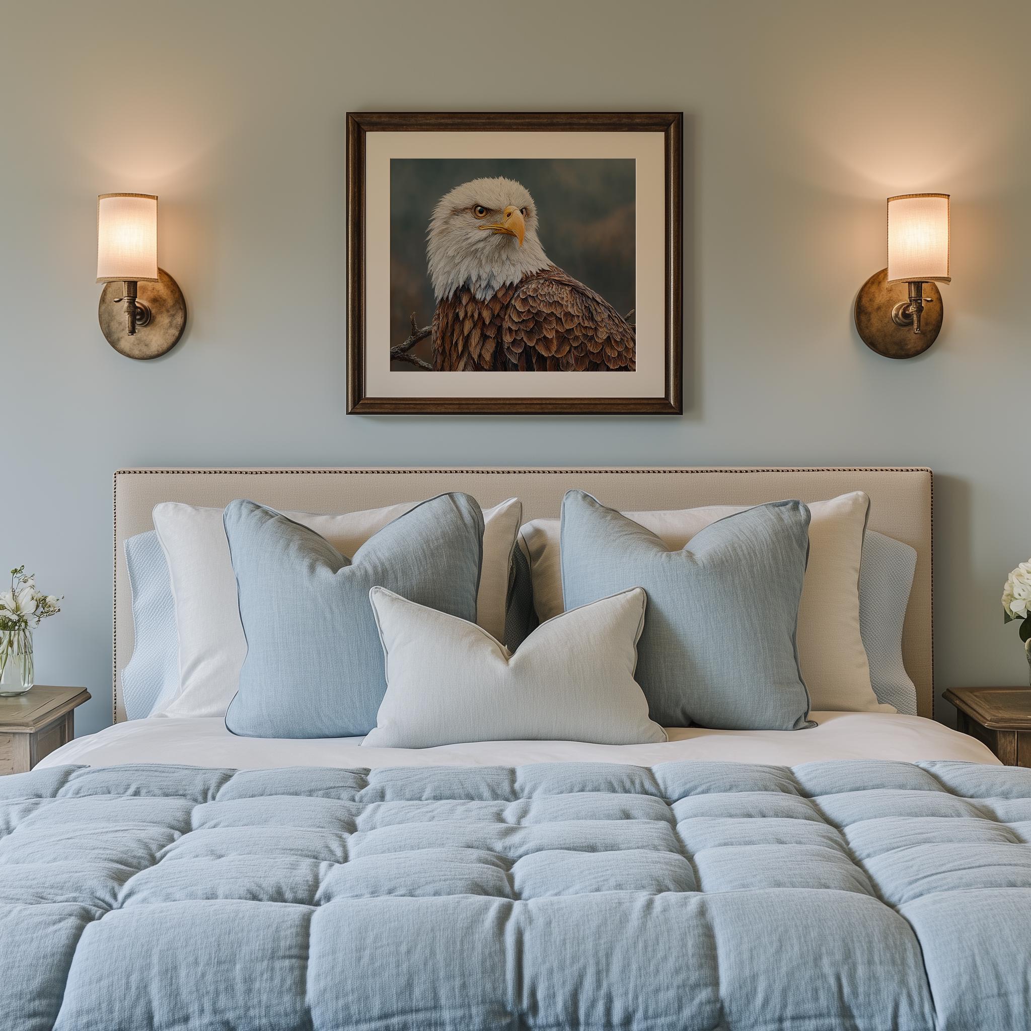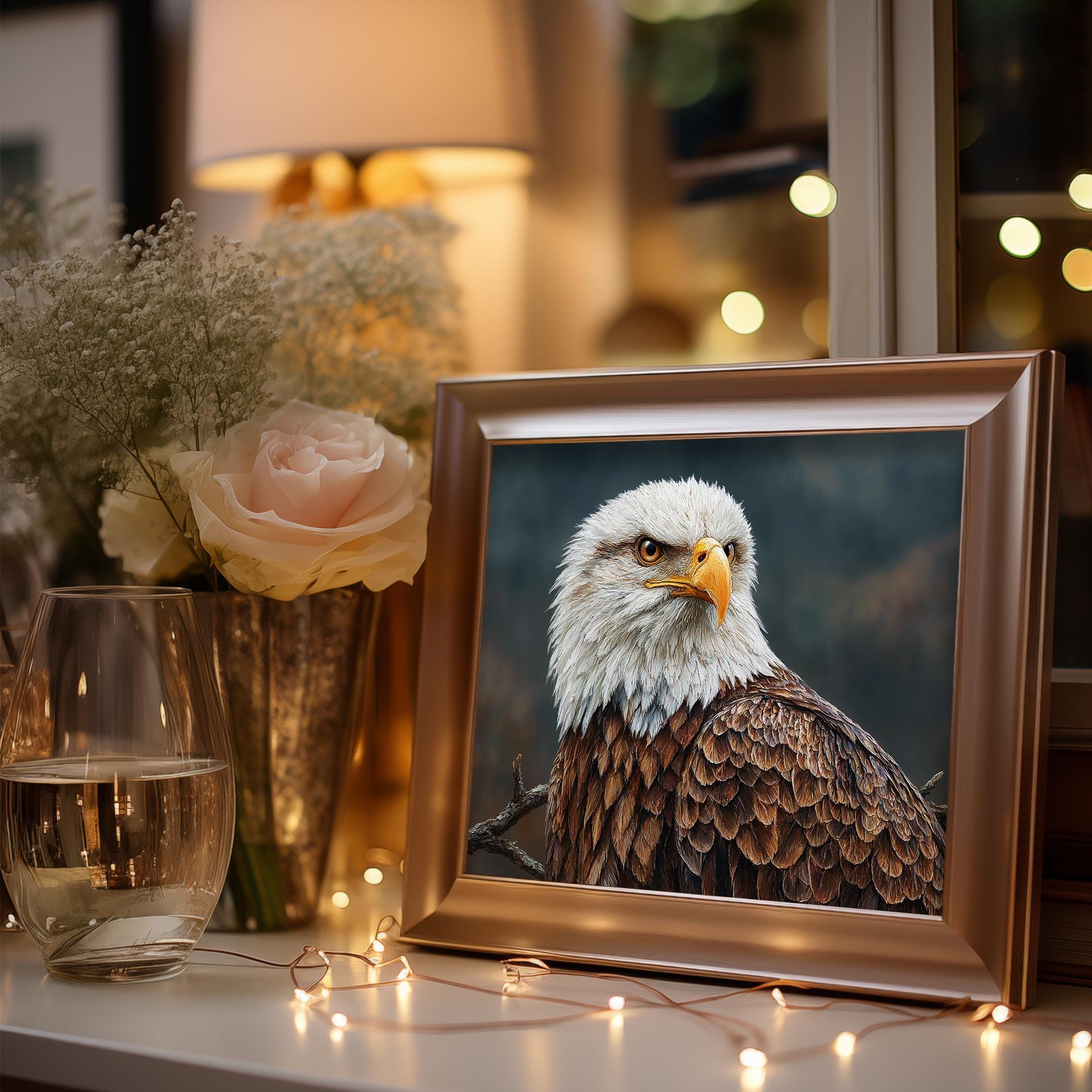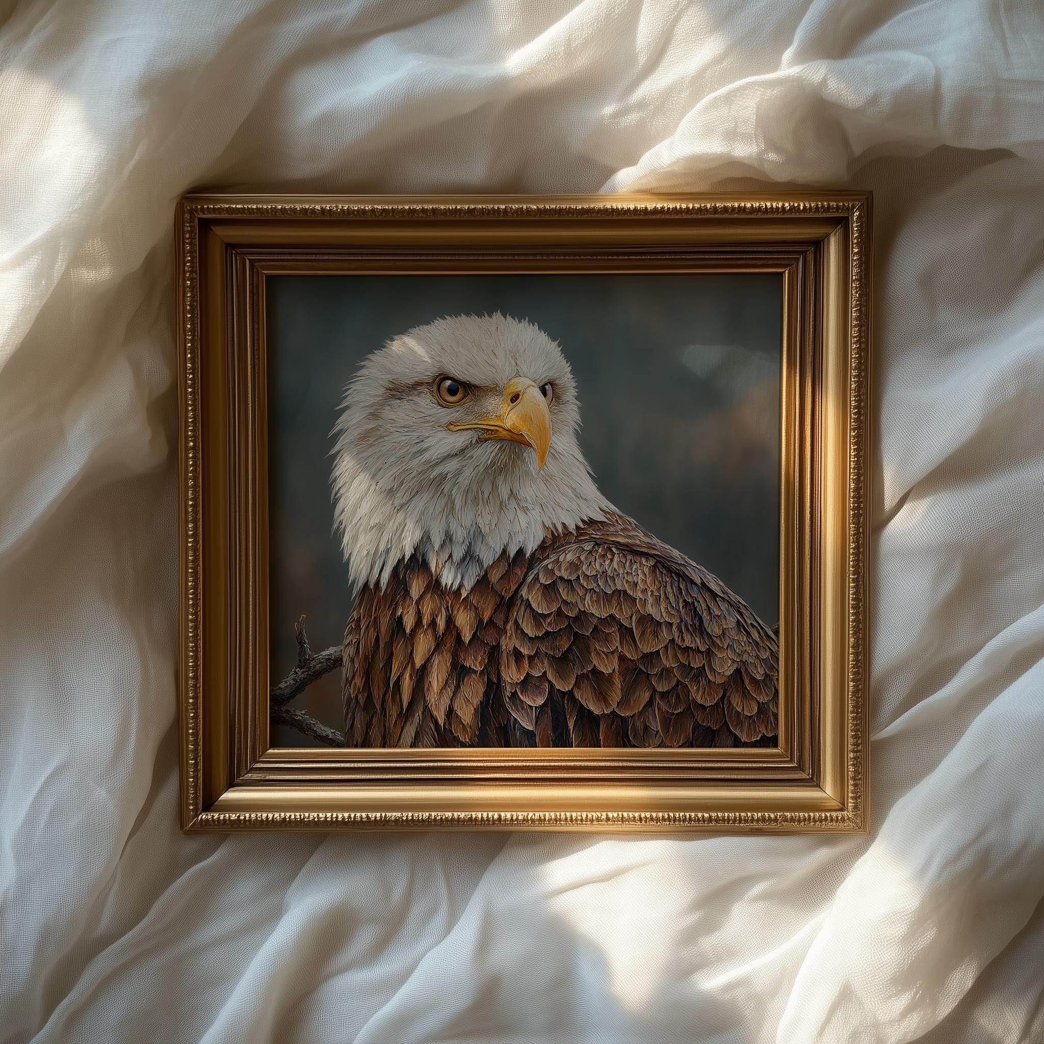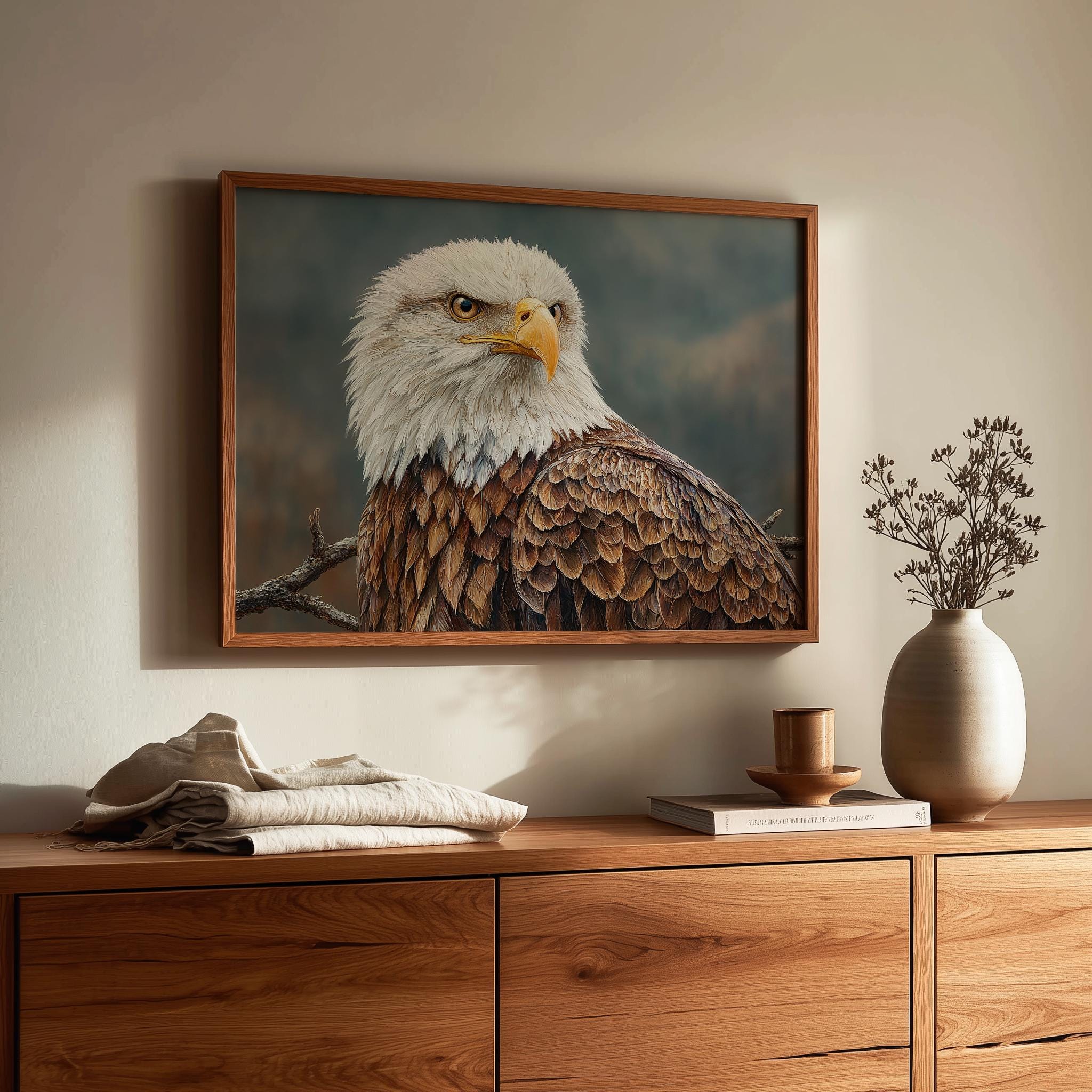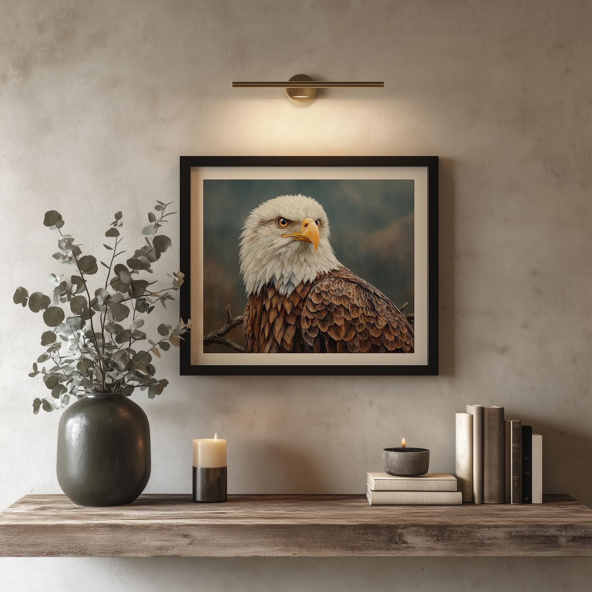 Immerse yourself in the charm with this rustic painting of a majestic bald eagle. An instantly downloadable print, it's perfect for elevating your decor with budget-friendly charm. This gives you the flexibility to customize the size, frame, and material according to your personal taste and space, ensuring a perfect fit for your walls.
