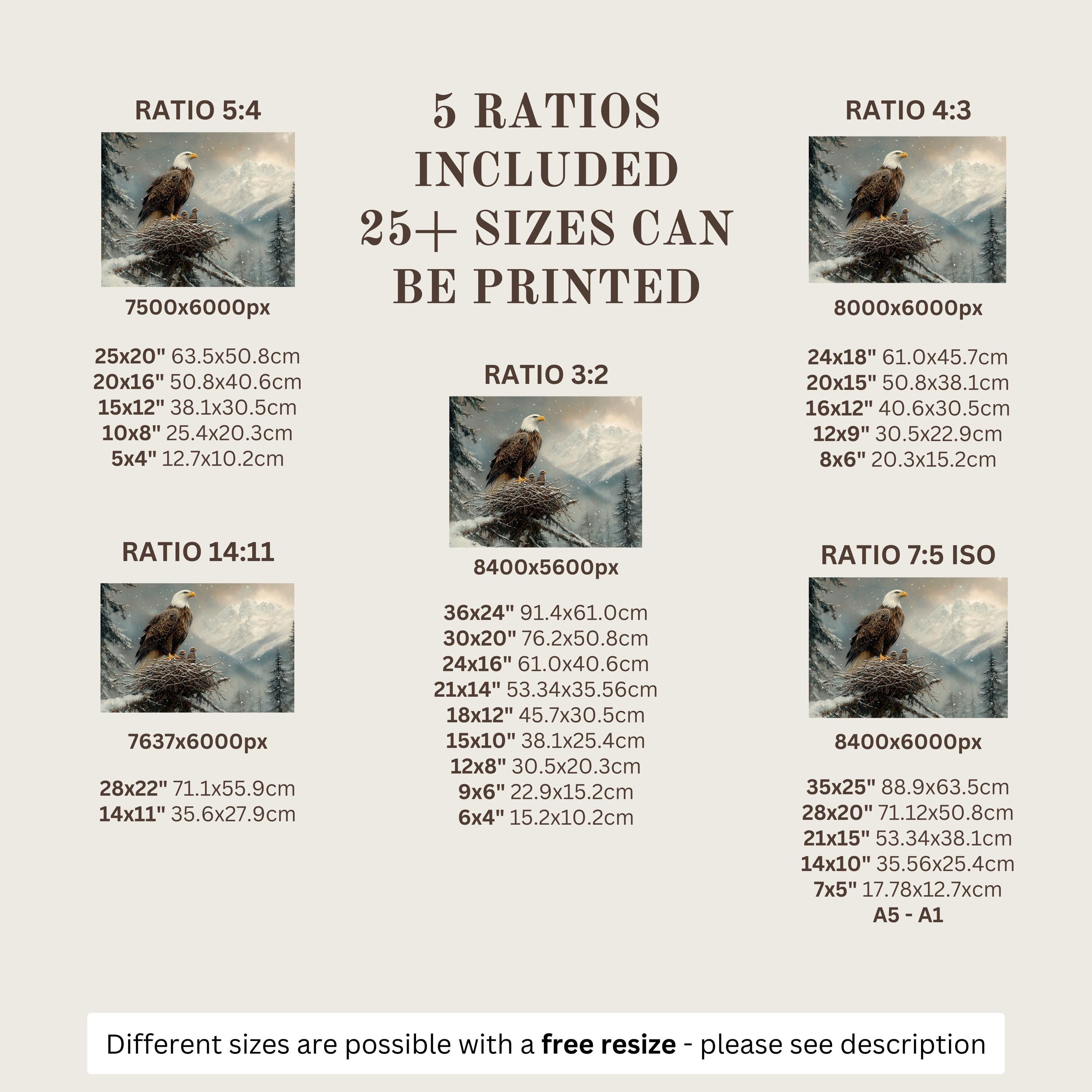 Each artwork includes 5 aspect ratios with 25+ print sizes. Most standard frames are covered. One custom resize per purchase available—message before ordering.