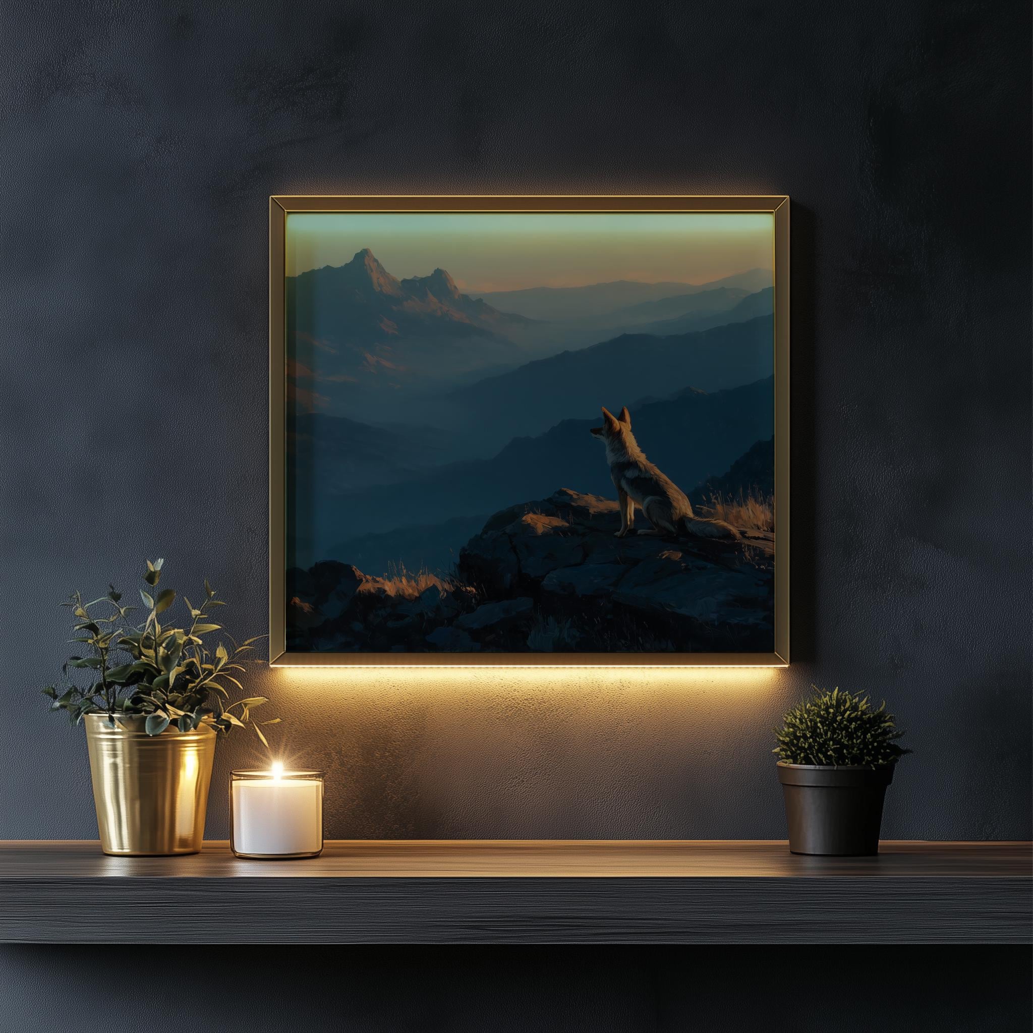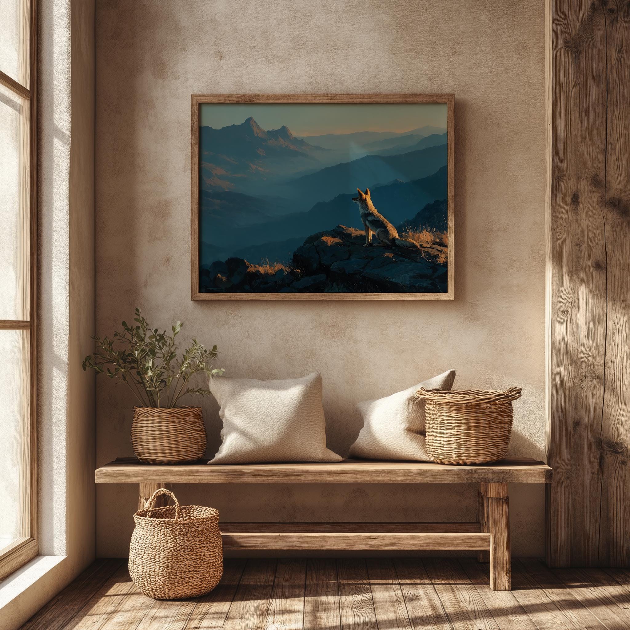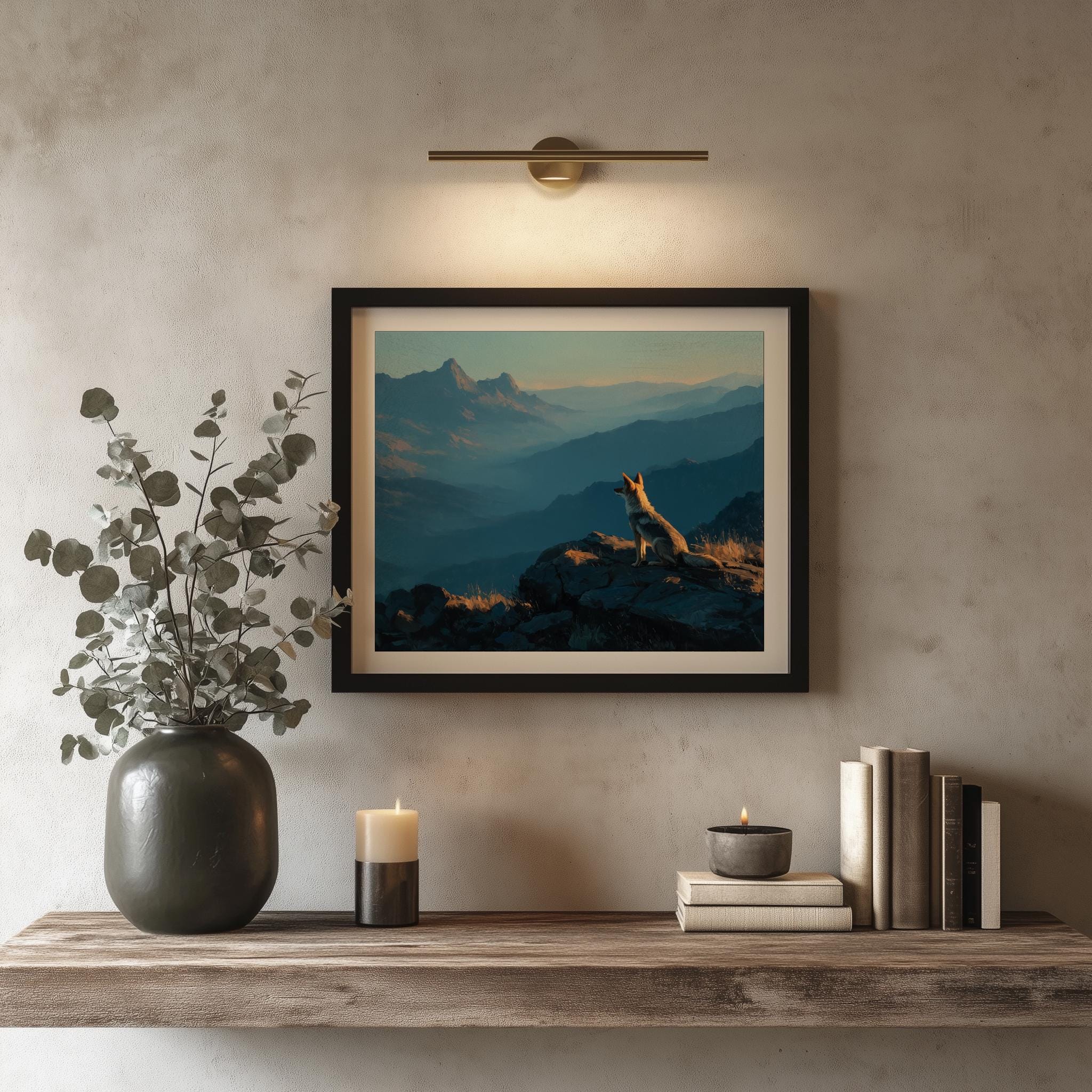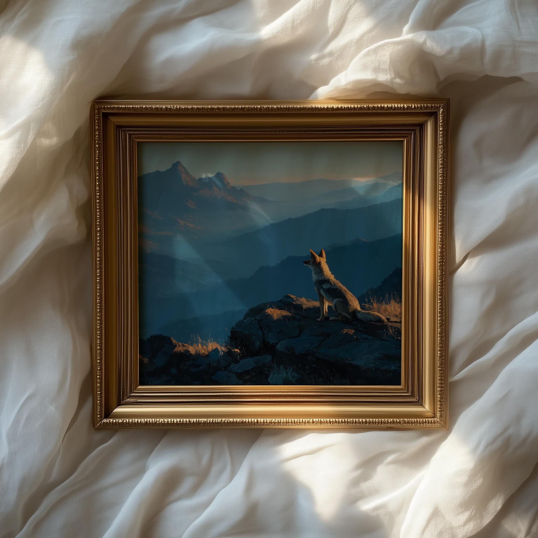 Immerse yourself in the charm with this rustic painting of a lone coyote howling on a mountain ridge. An instantly downloadable print, it's perfect for elevating your decor with budget-friendly charm. This gives you the flexibility to customize the size, frame, and material according to your personal taste and space, ensuring a perfect fit for your walls.