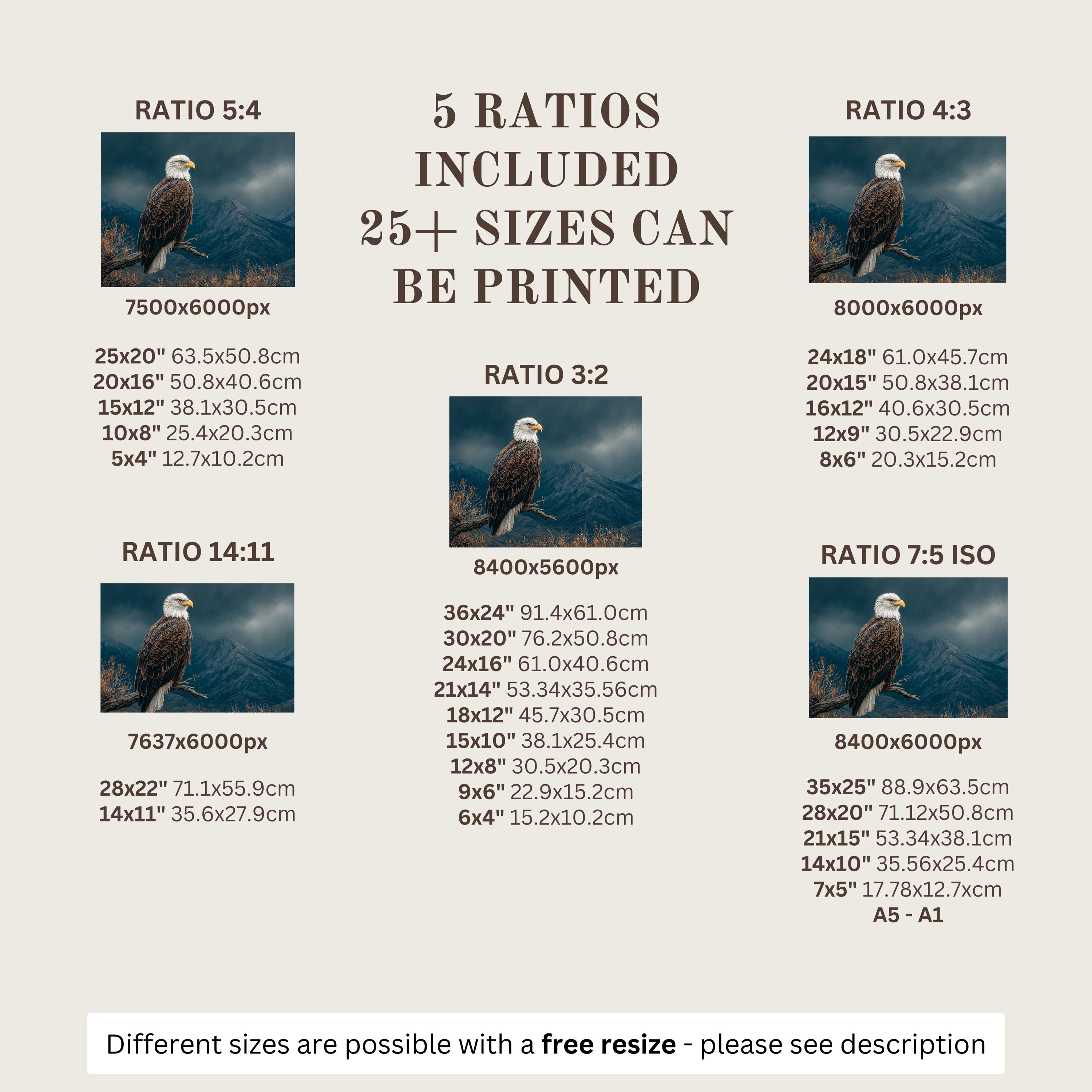 Each artwork includes 5 aspect ratios with 25+ print sizes. Most standard frames are covered. One custom resize per purchase available—message before ordering.