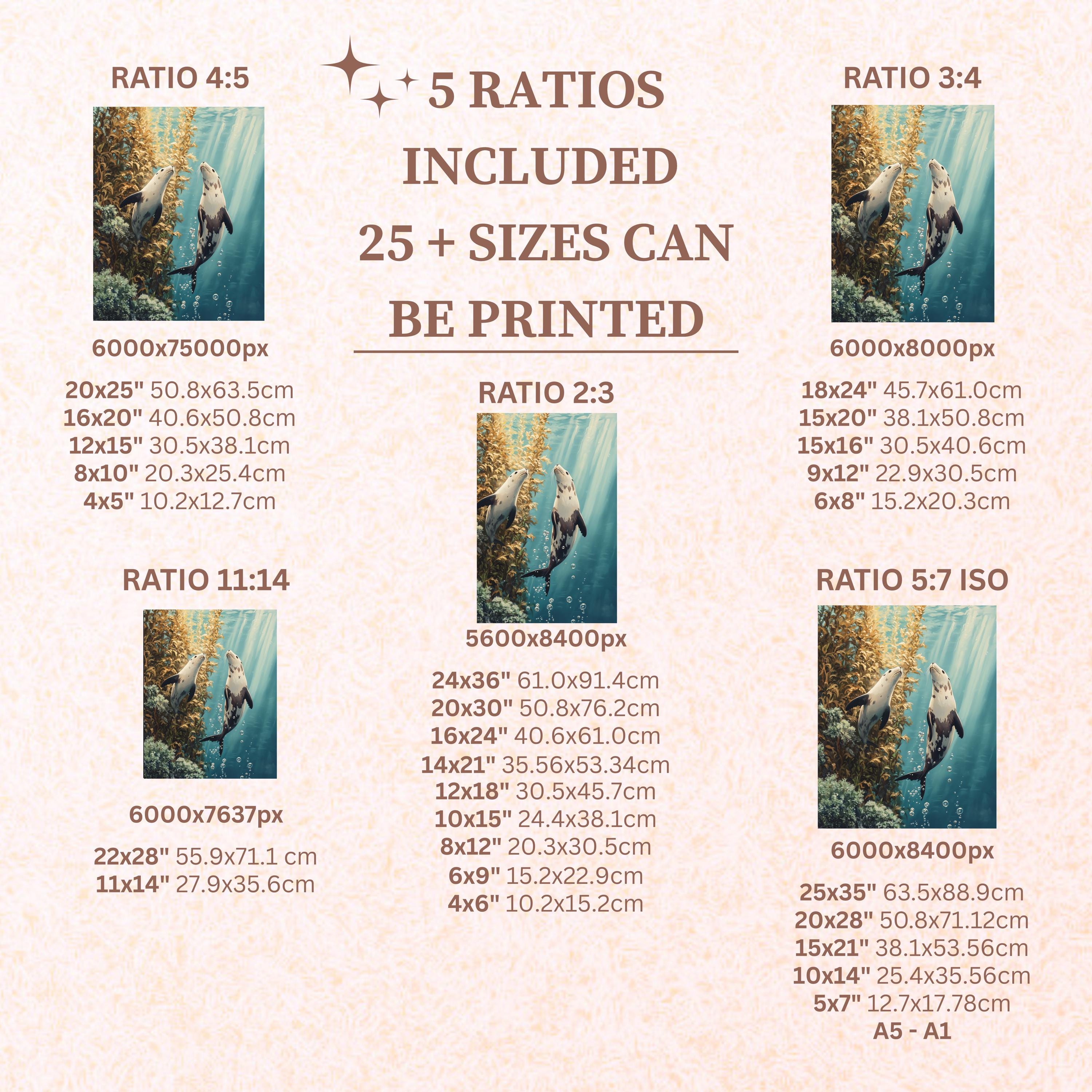 Each artwork includes 5 aspect ratios with 25+ print sizes. Most standard frames are covered. One custom resize per purchase available—message before ordering.