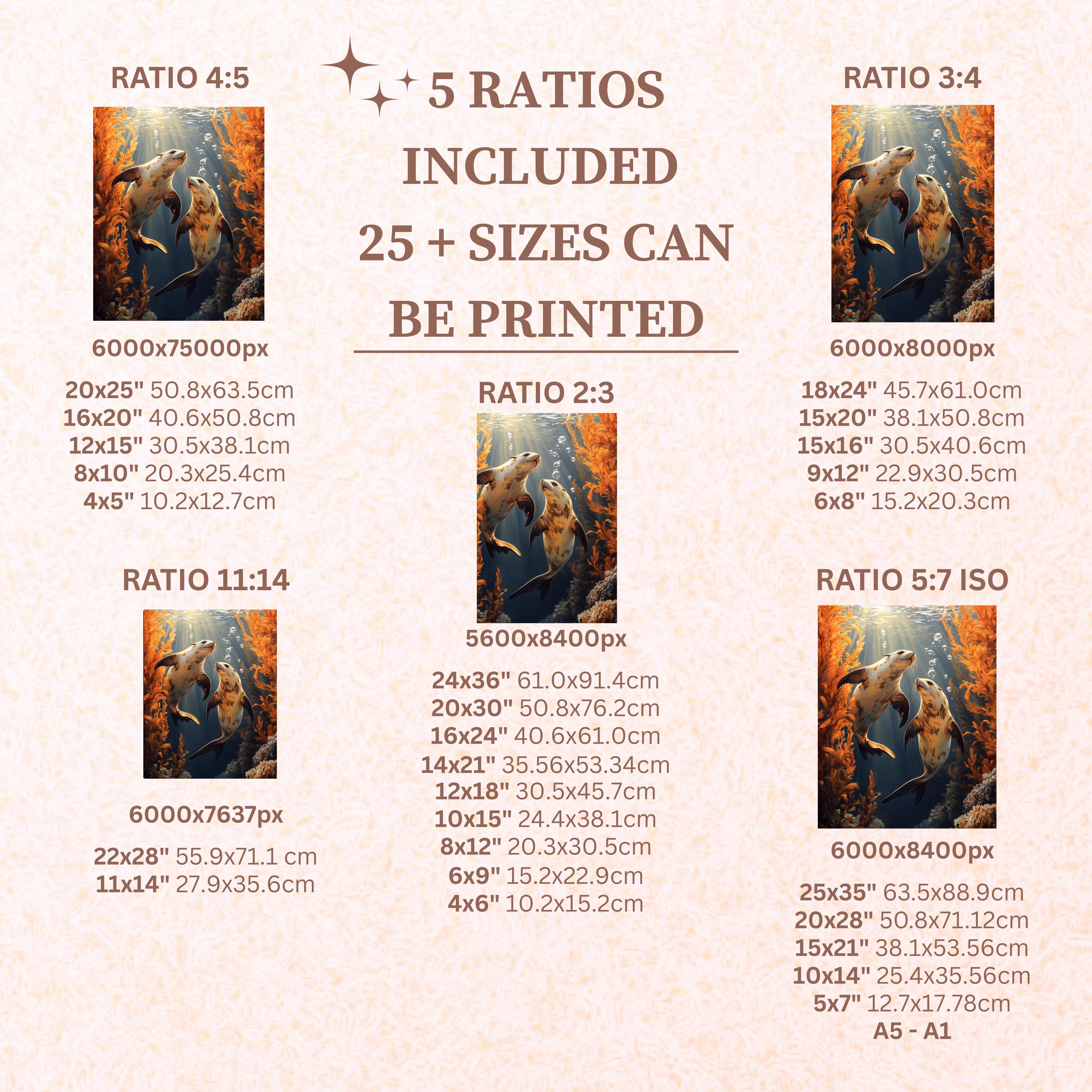 Each artwork includes 5 aspect ratios with 25+ print sizes. Most standard frames are covered. One custom resize per purchase available—message before ordering.