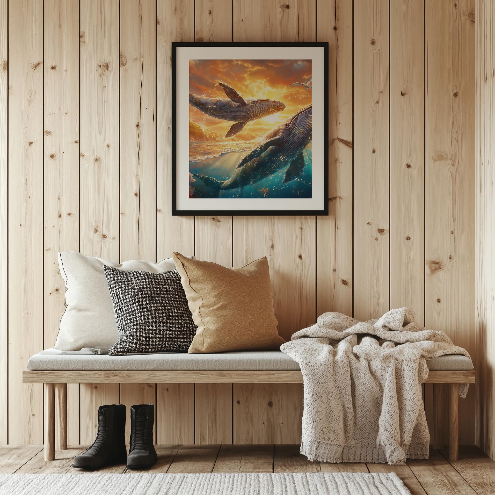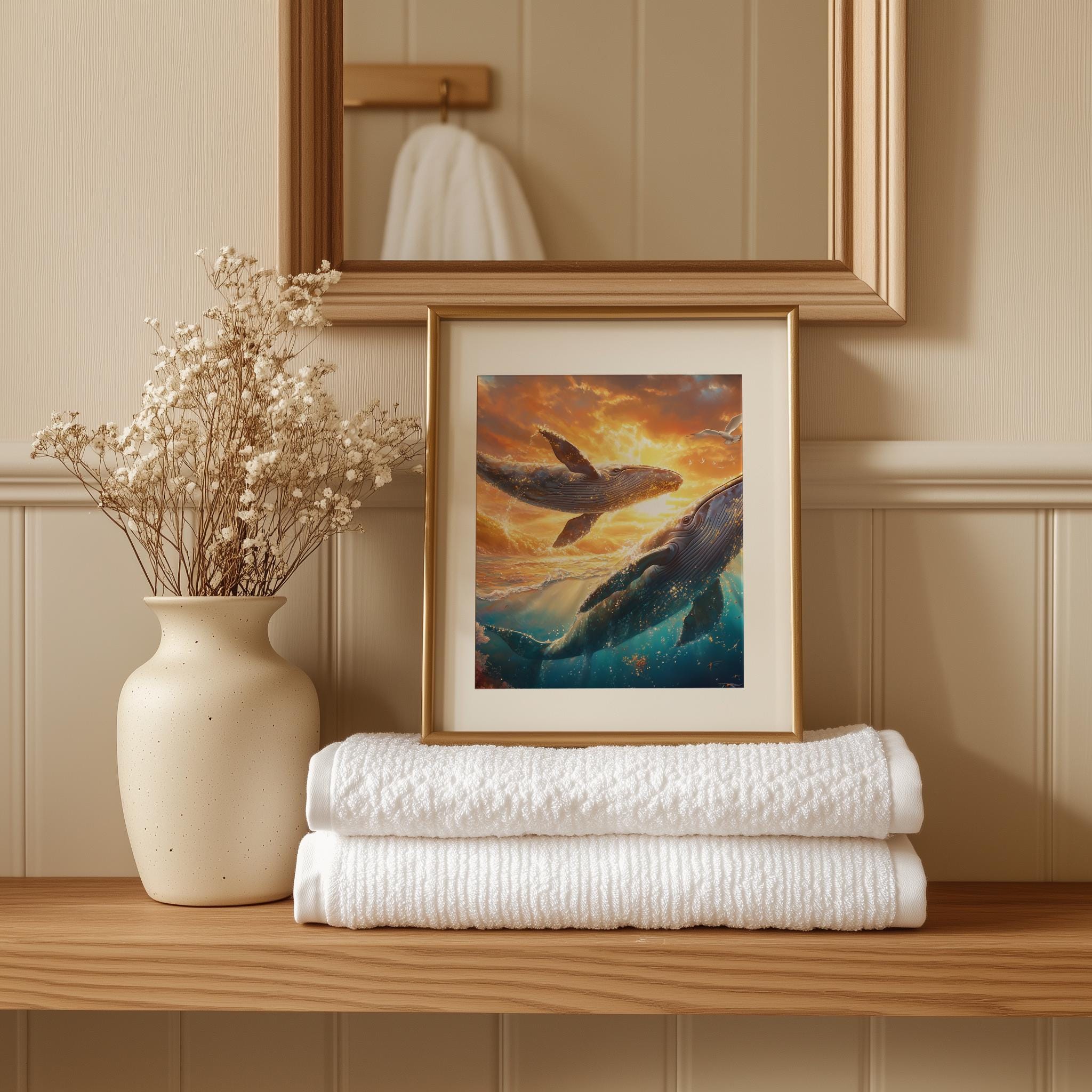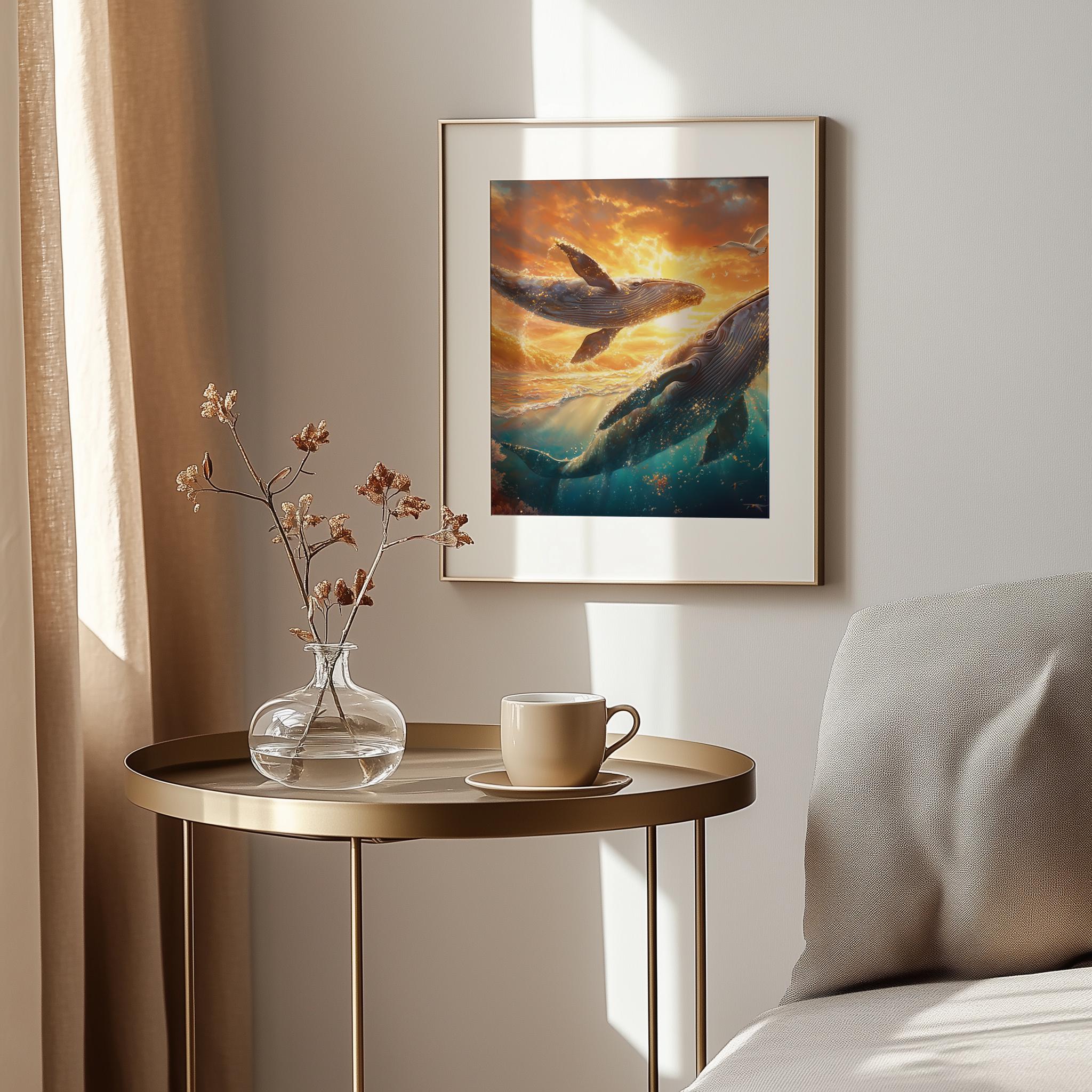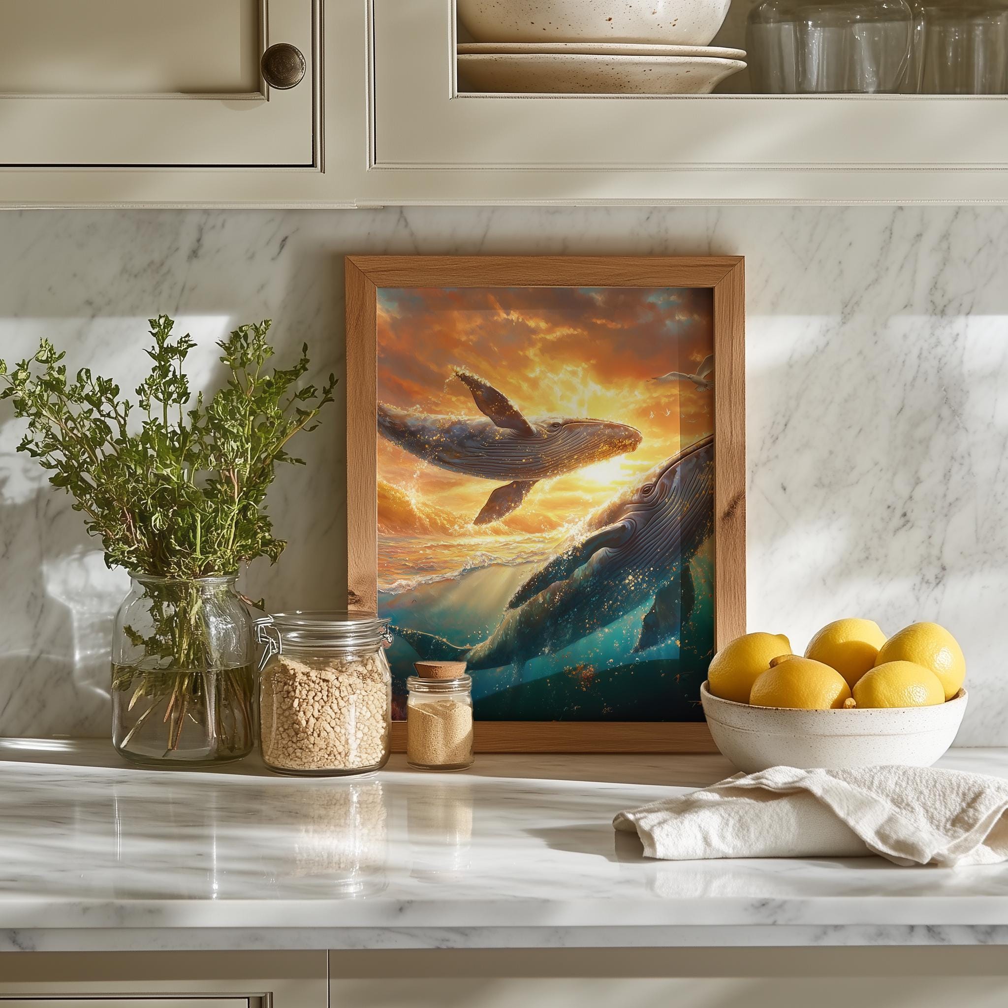 Immerse yourself in the charm of this painting of a magnificent whale gliding through tranquil waters. An instantly downloadable print, it's perfect for elevating your decor with budget-friendly charm. This gives you the flexibility to customize the size, frame, and material according to your personal taste and space, ensuring a perfect fit for your walls.