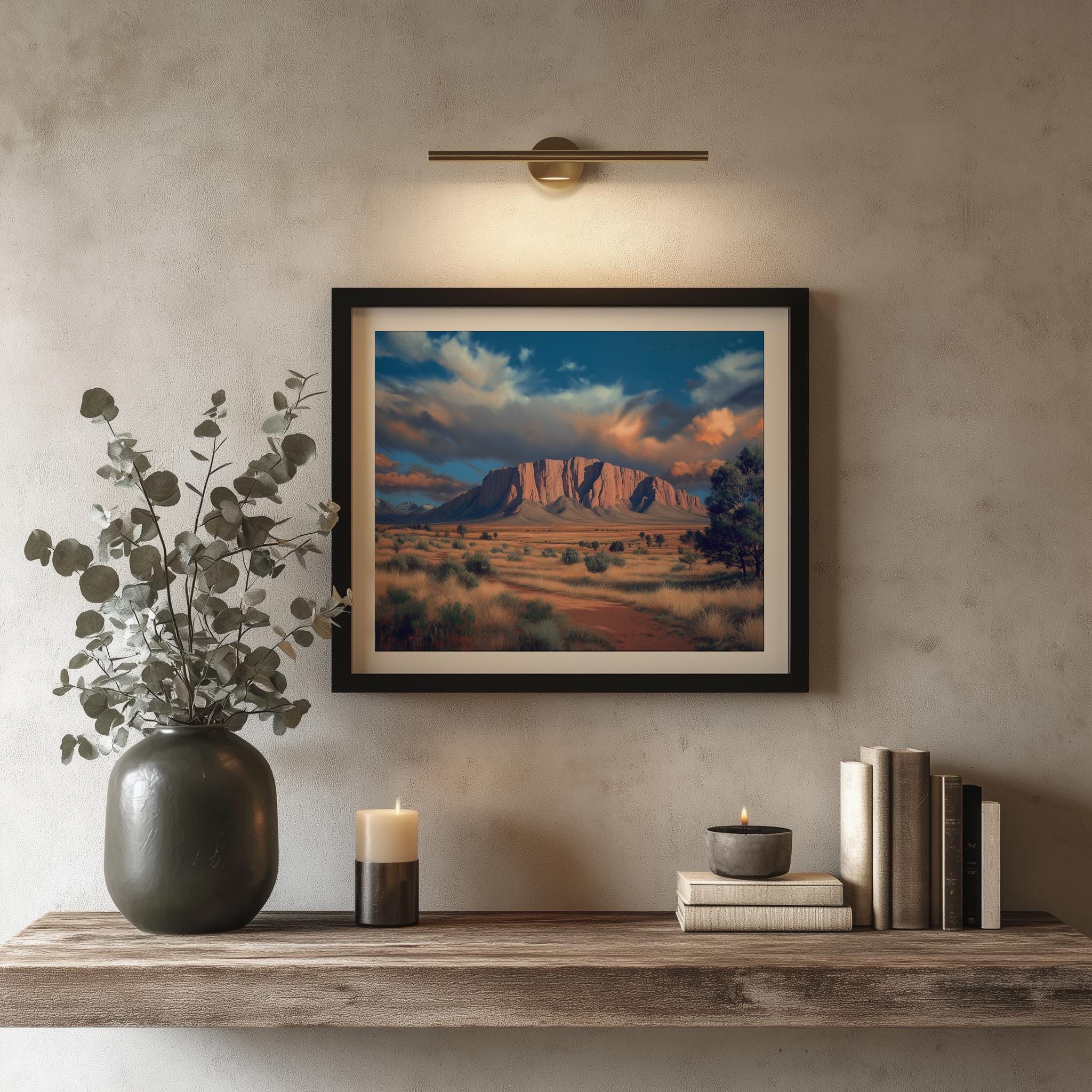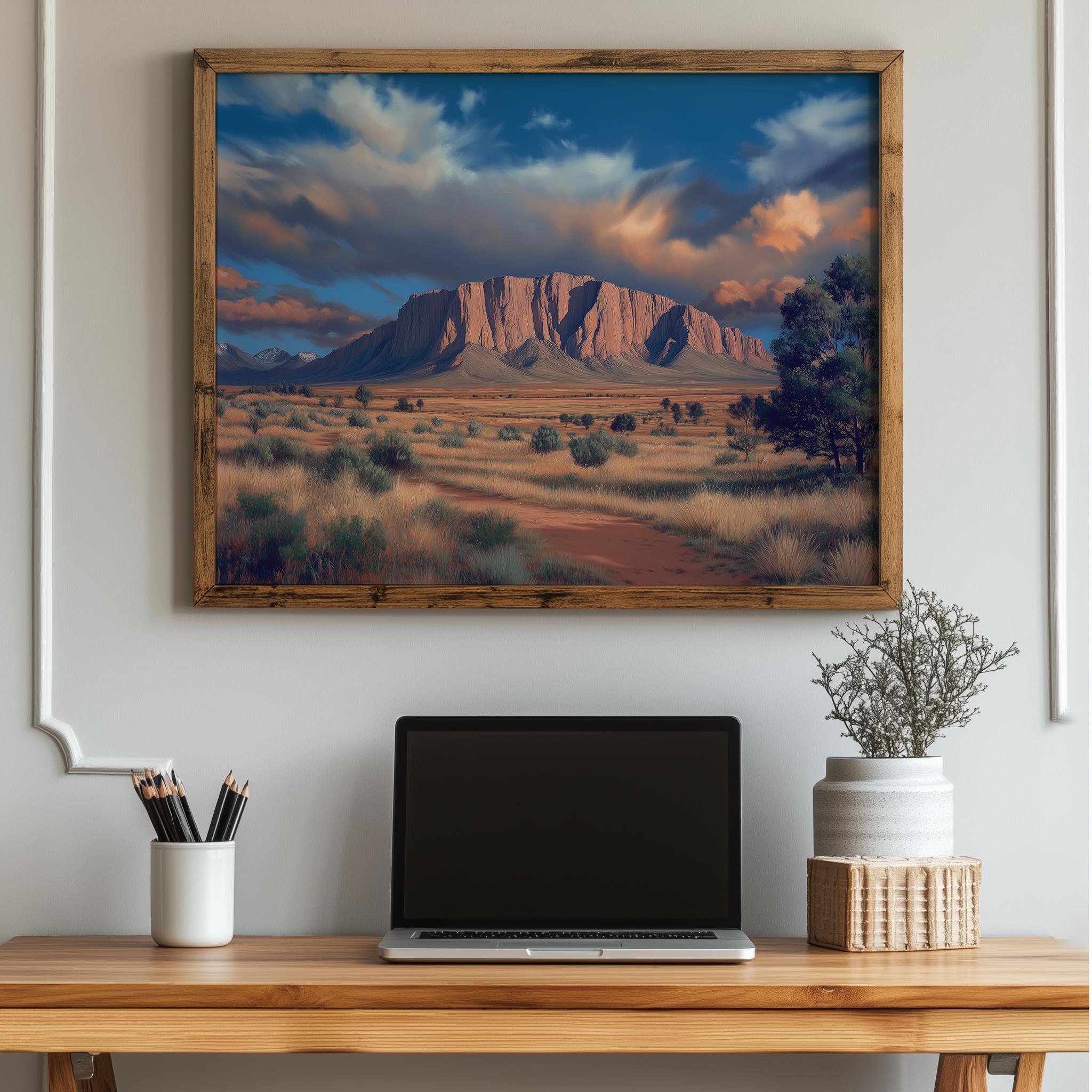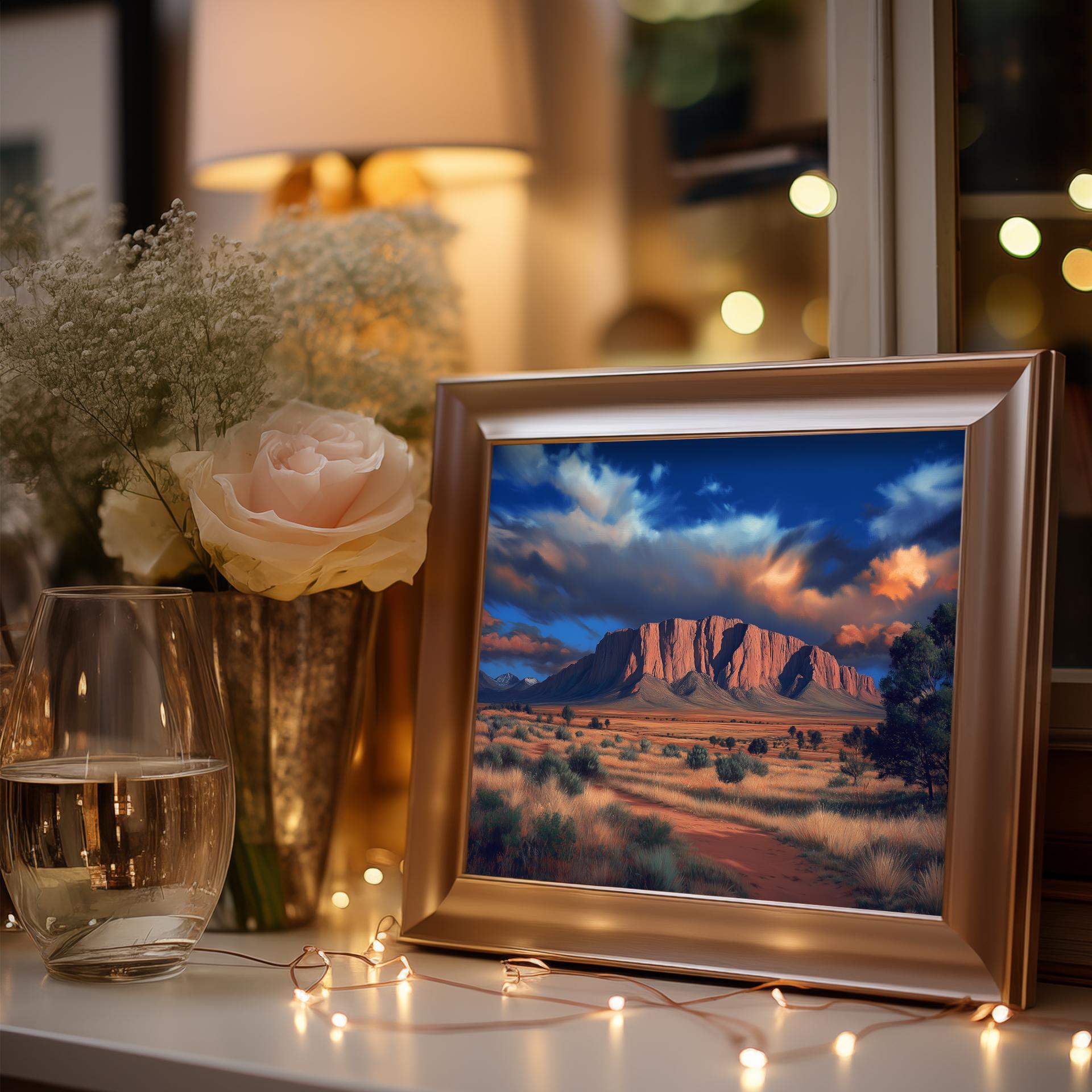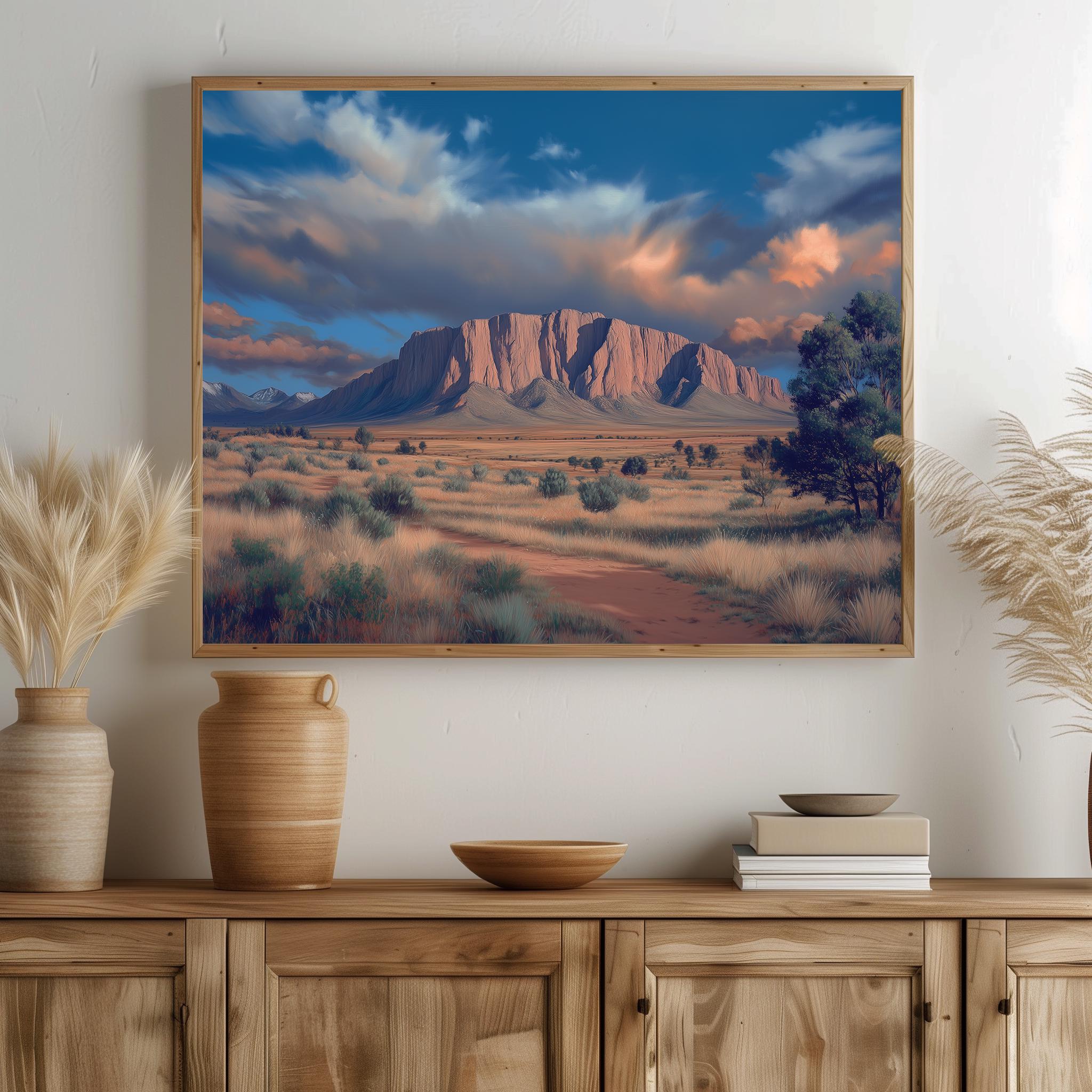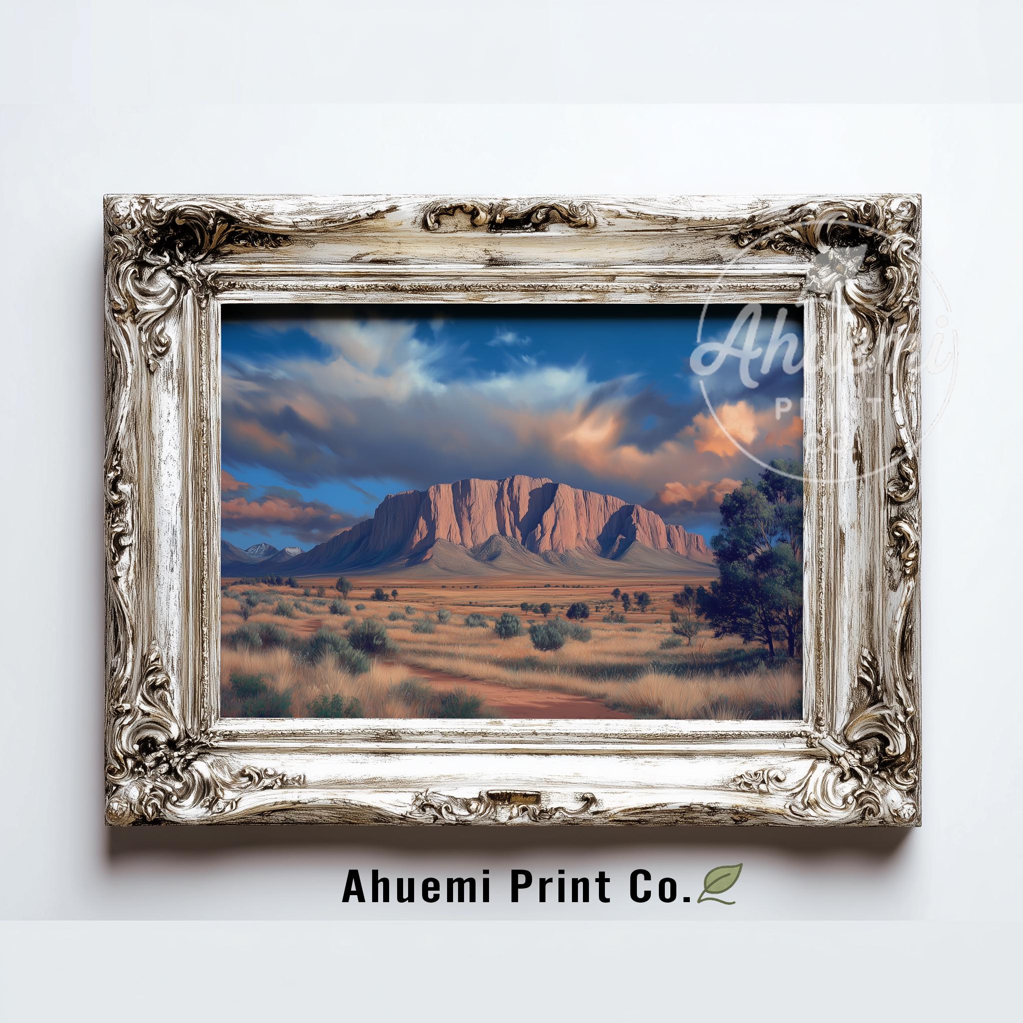 Immerse yourself in the charm with this painting of a breathtaking Uluru at golden hour. An instantly downloadable print, it's perfect for elevating your decor with budget-friendly charm. This gives you the flexibility to customize the size, frame, and material according to your personal taste and space, ensuring a perfect fit for your walls.