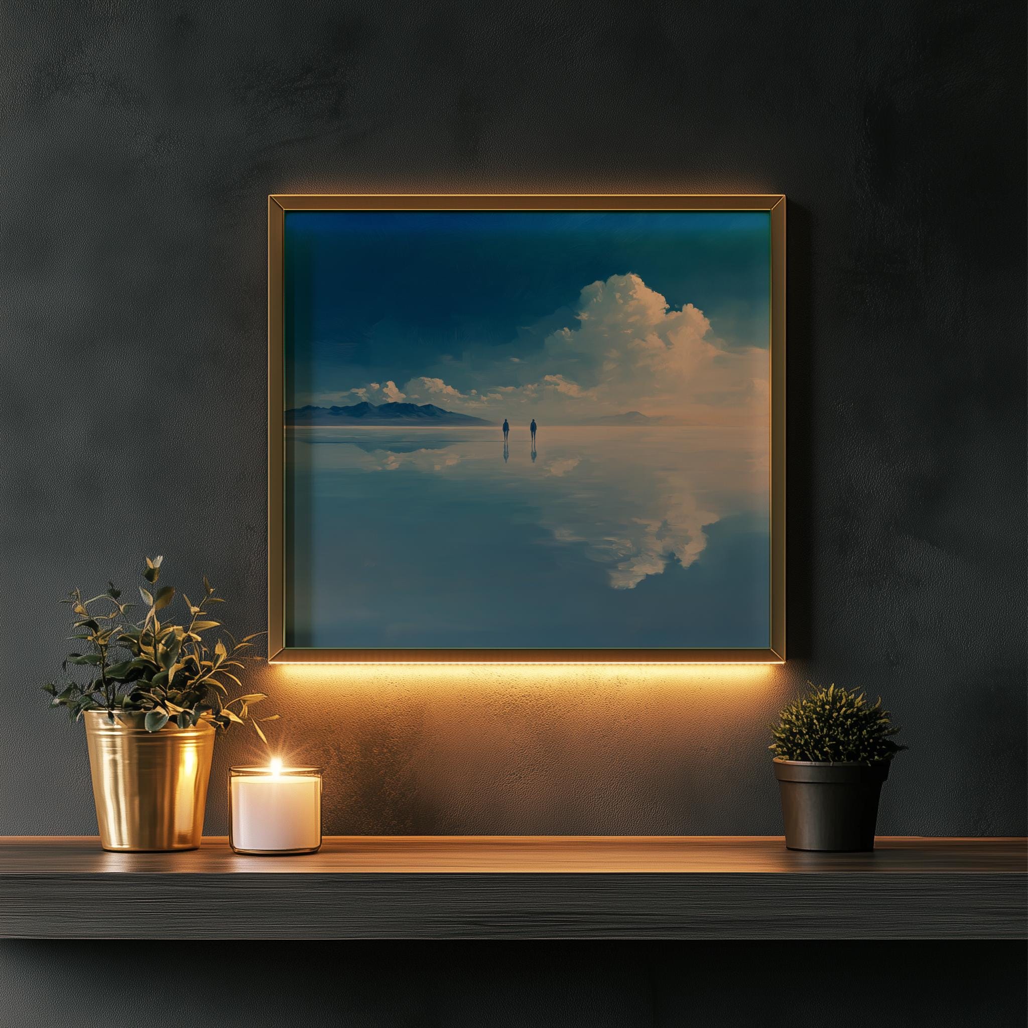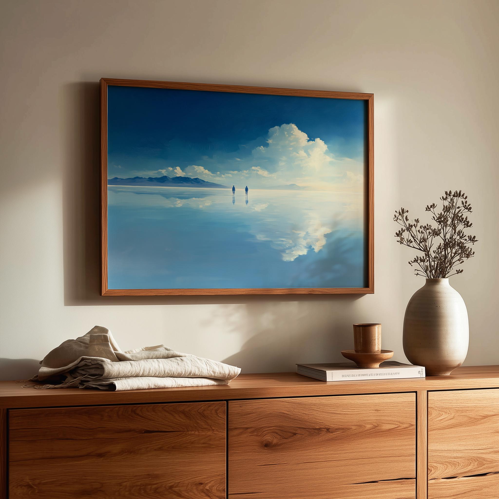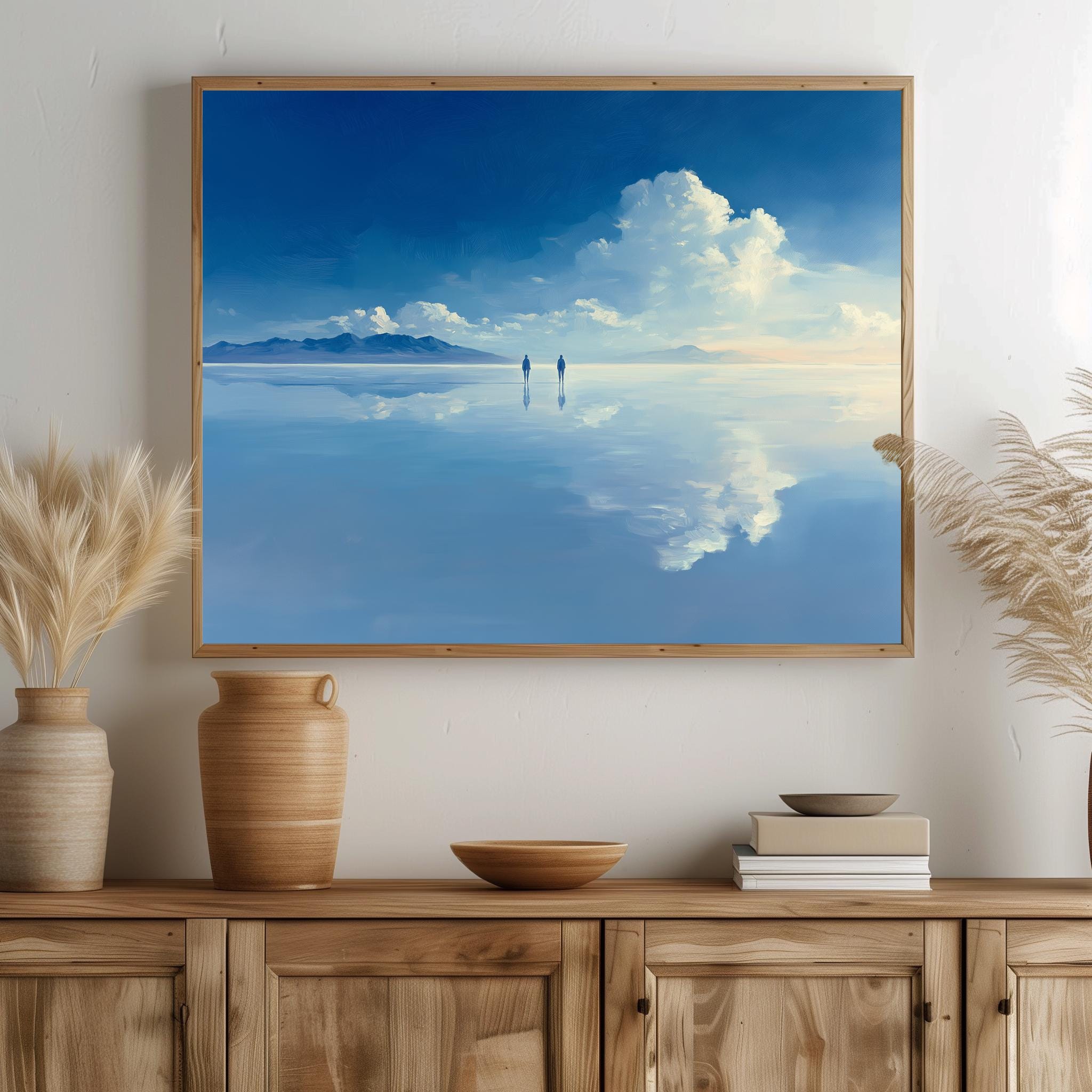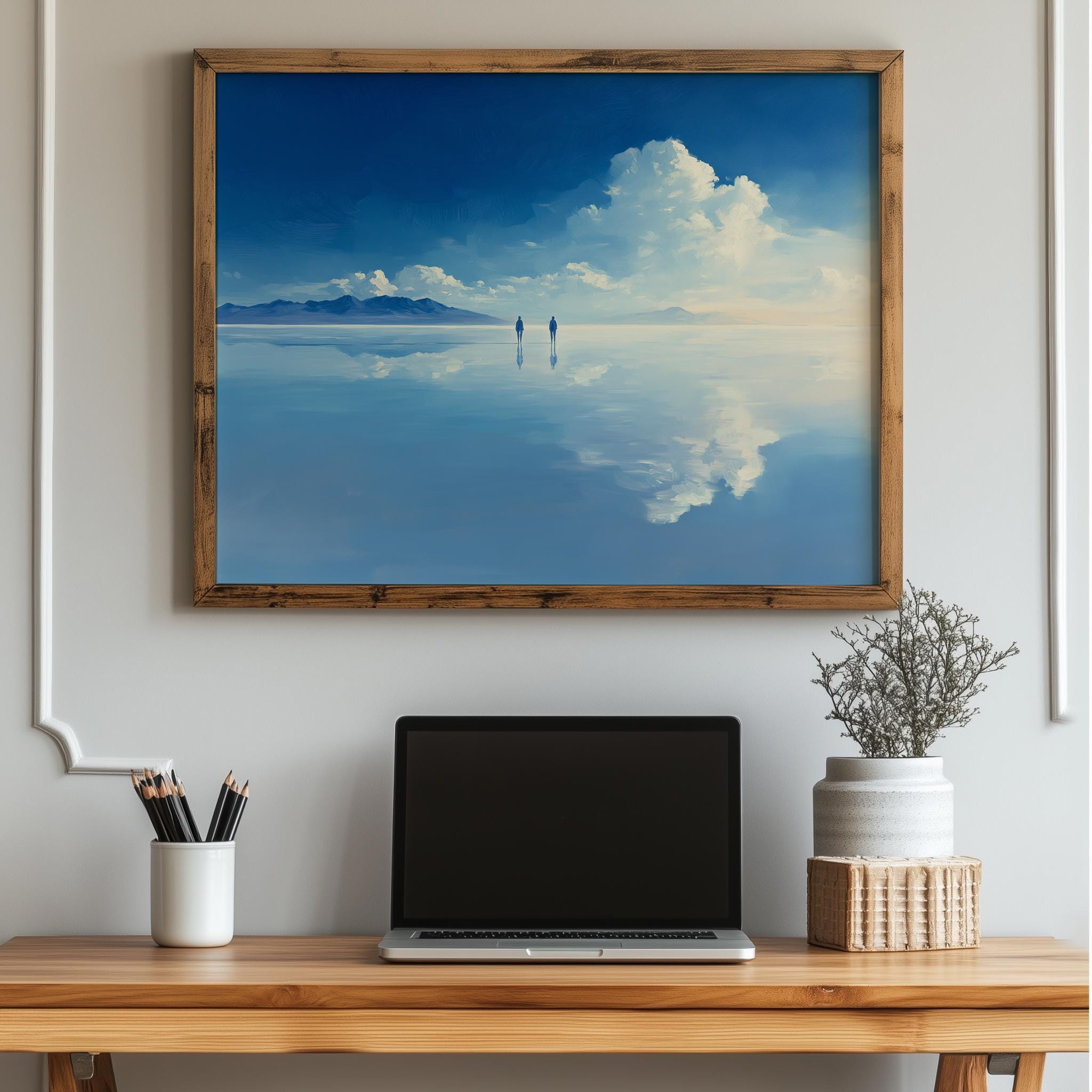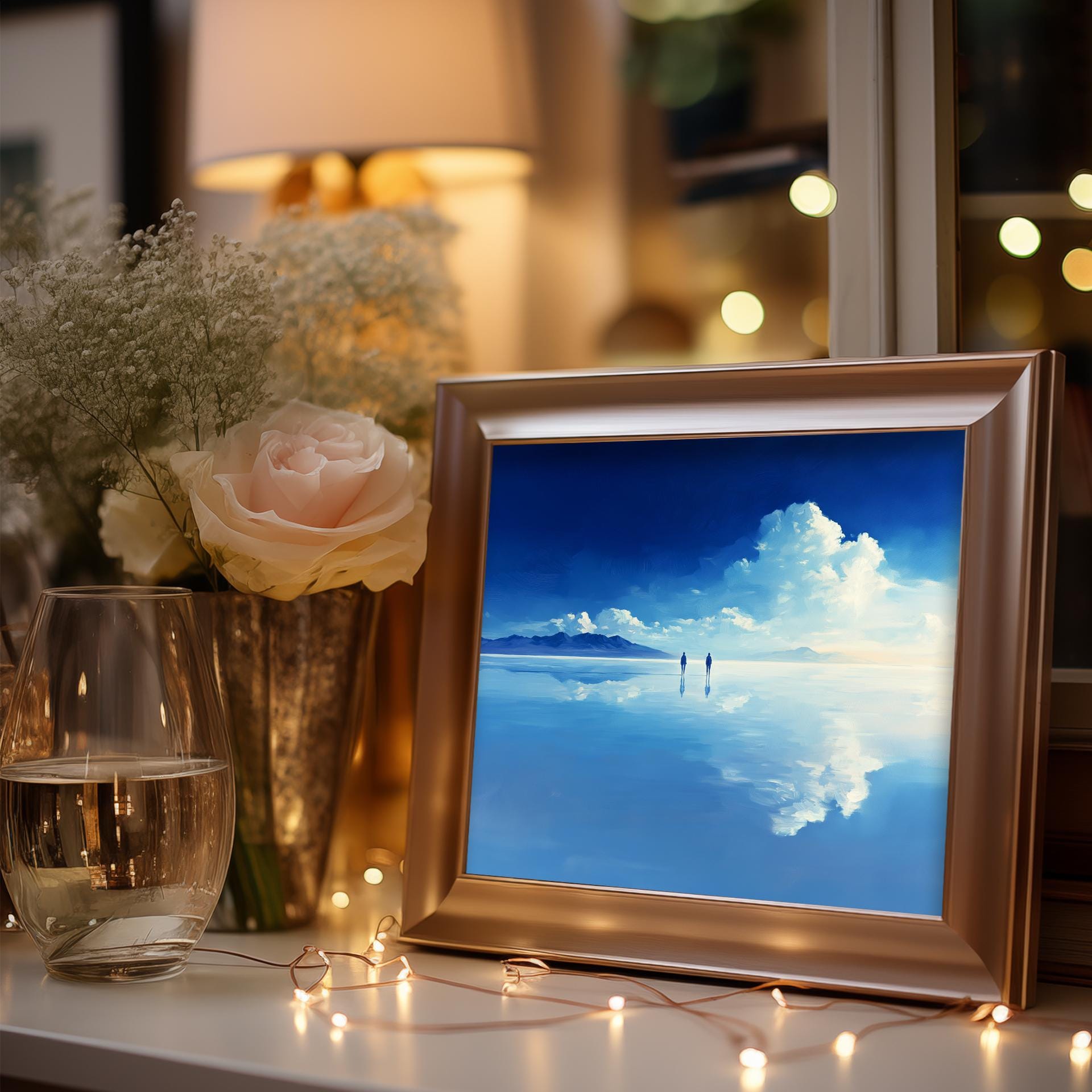 Immerse yourself in the charm with this painting of a serene Uyuni salt flats landscape. An instantly downloadable print, it's perfect for elevating your decor with budget-friendly charm. This gives you the flexibility to customize the size, frame, and material according to your personal taste and space, ensuring a perfect fit for your walls.