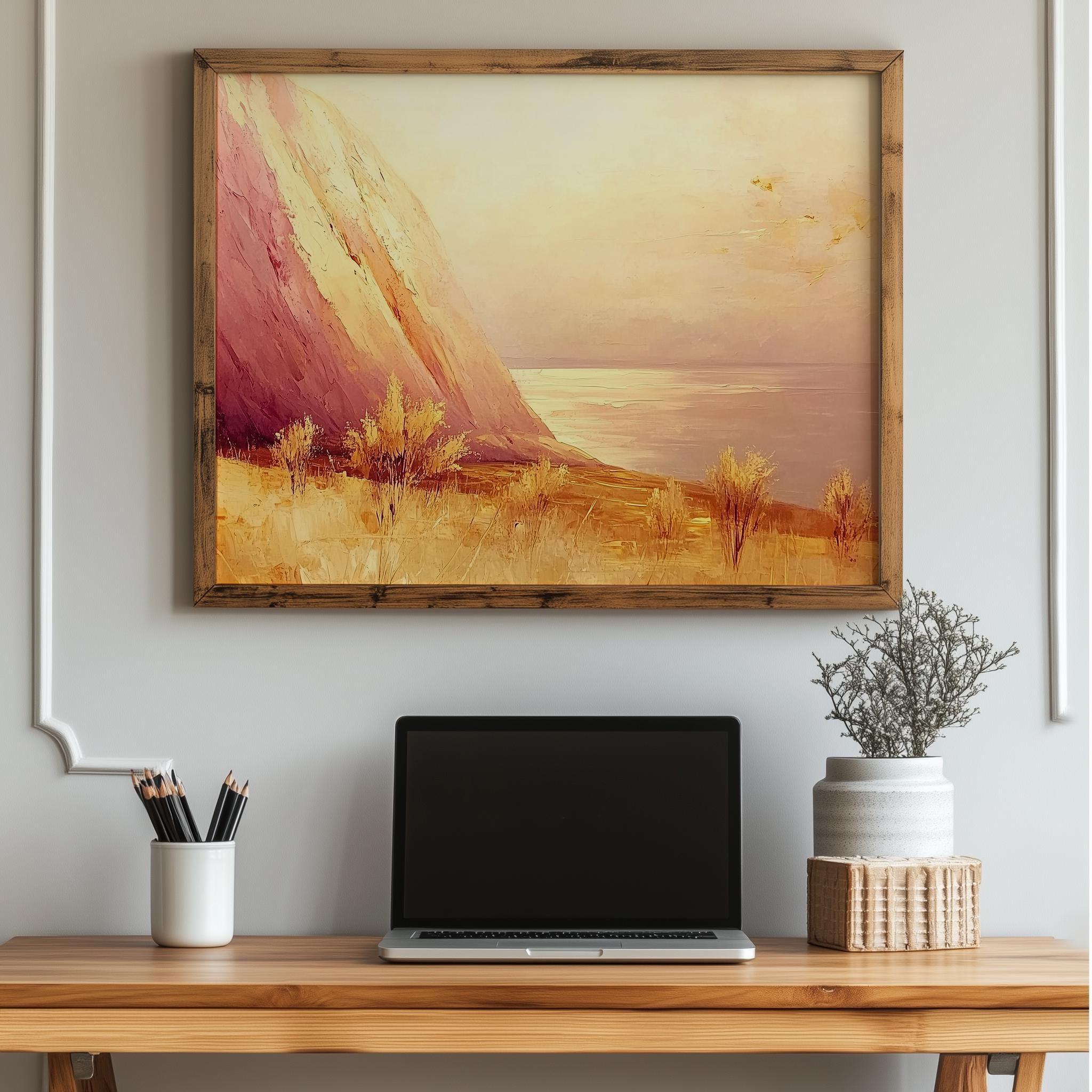 Immerse yourself in the charm with this painting of a stunning Uluru landscape bathed in golden hour light. An instantly downloadable print, it's perfect for elevating your decor with budget-friendly charm. This gives you the flexibility to customize the size, frame, and material according to your personal taste and space, ensuring a perfect fit for your walls.