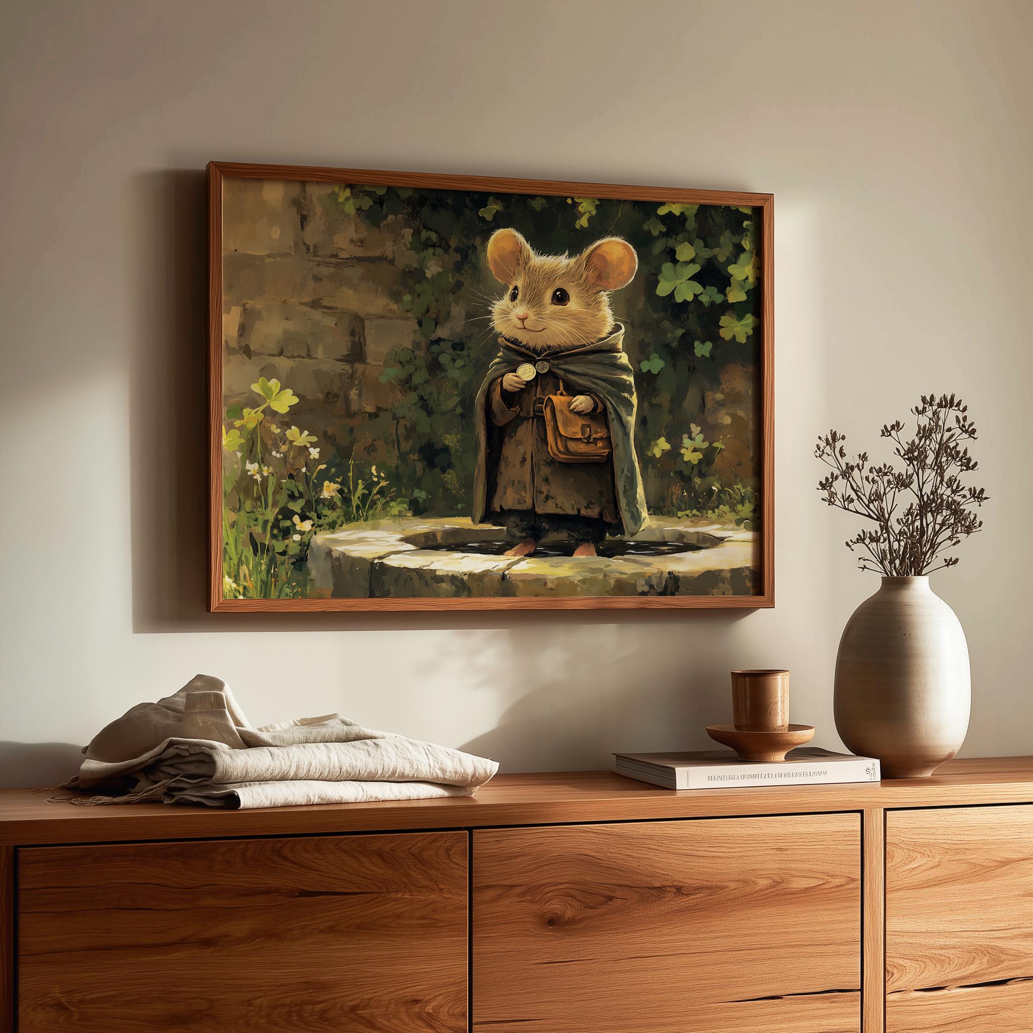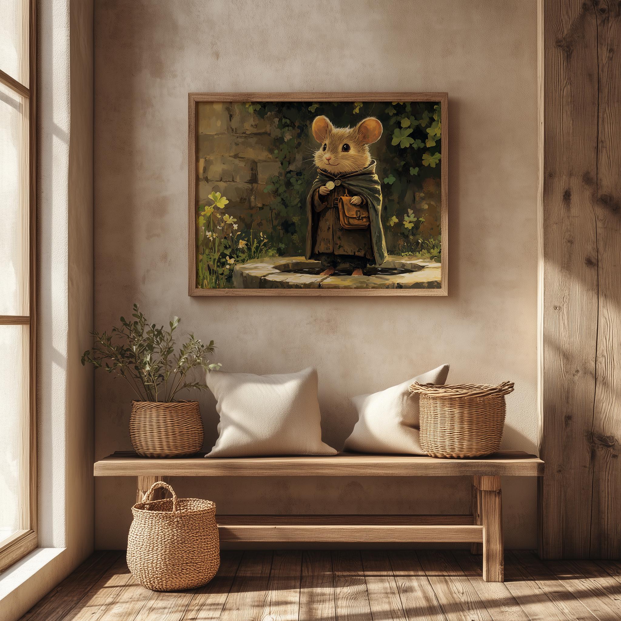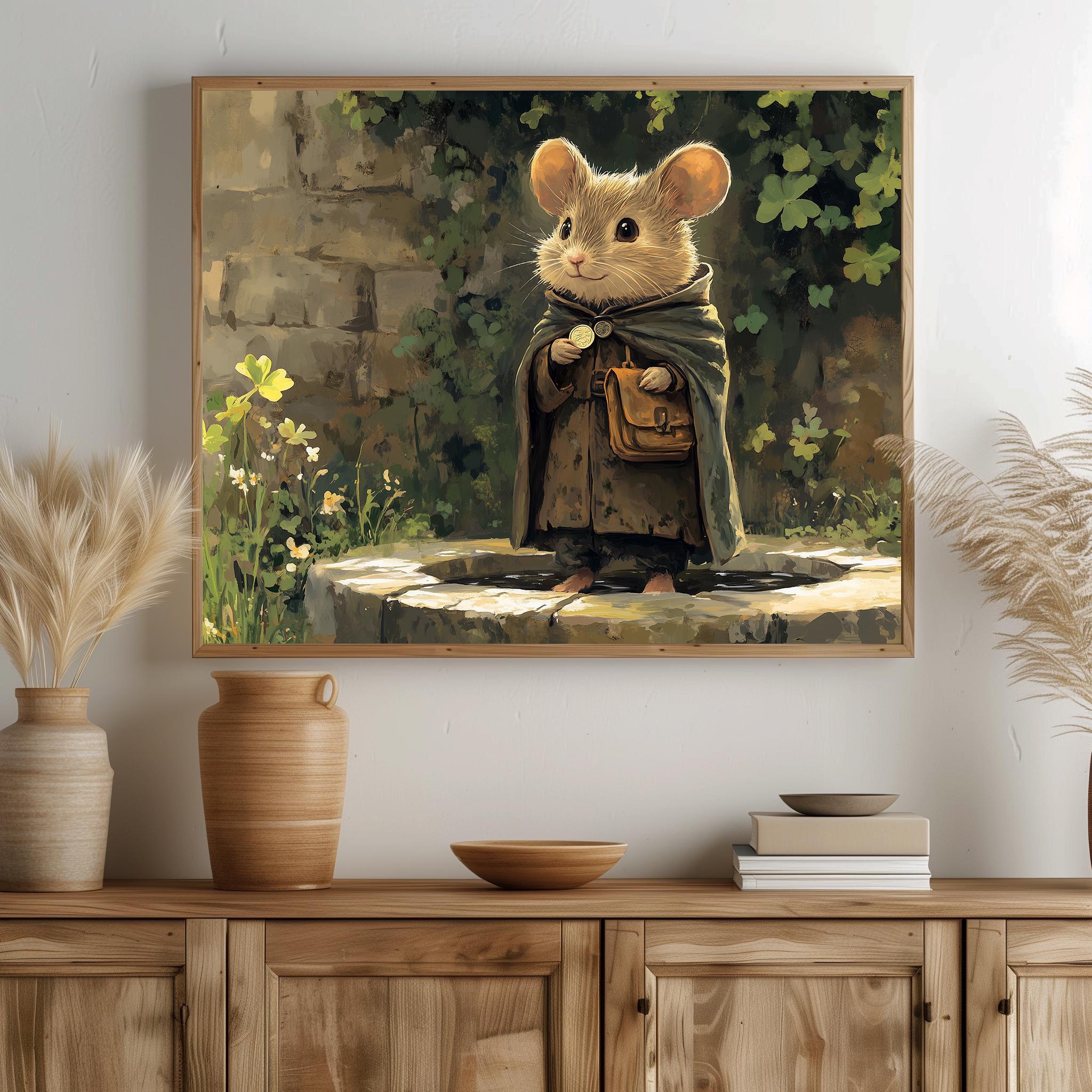 Immerse yourself in the charm with this painting of a whimsical mouse exploring a quaint cottage garden. An instantly downloadable print, it's perfect for elevating your decor with budget-friendly charm. This gives you the flexibility to customize the size, frame, and material according to your personal taste and space, ensuring a perfect fit for your walls.