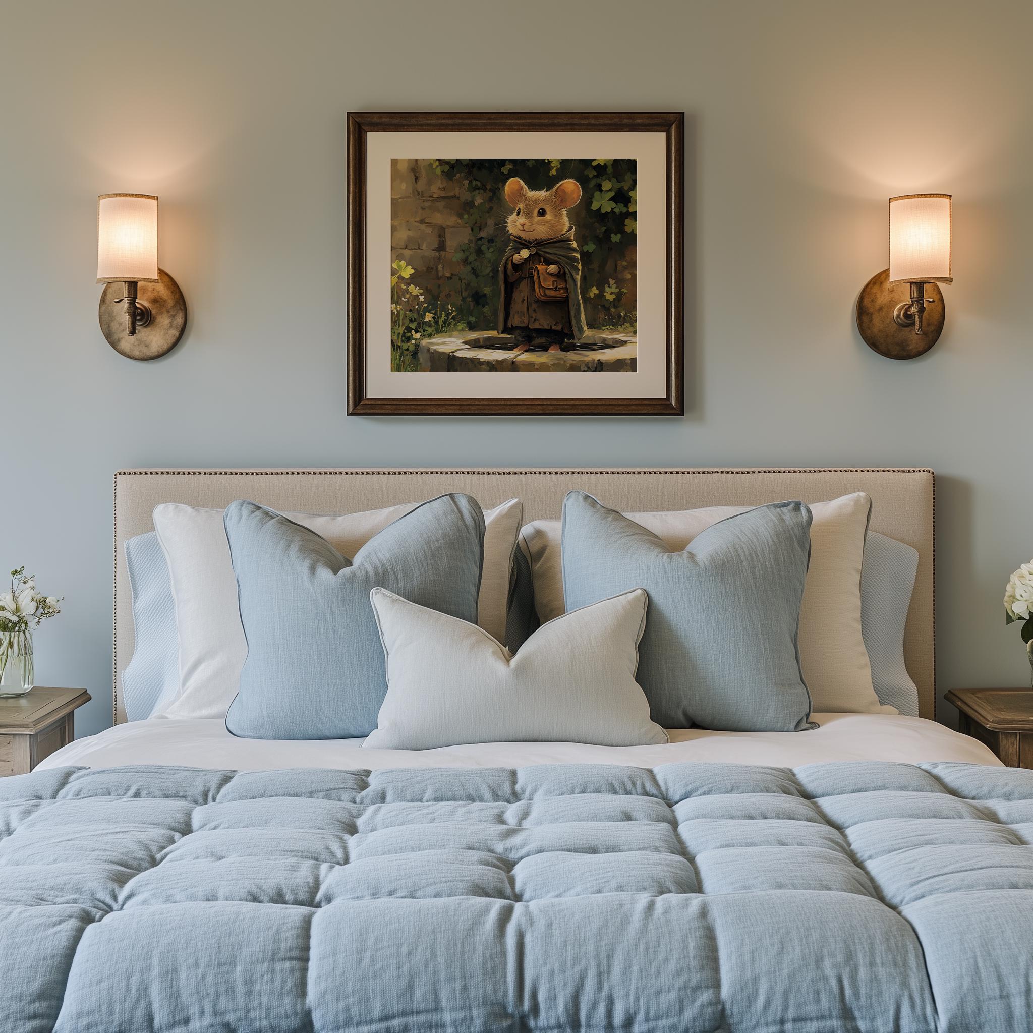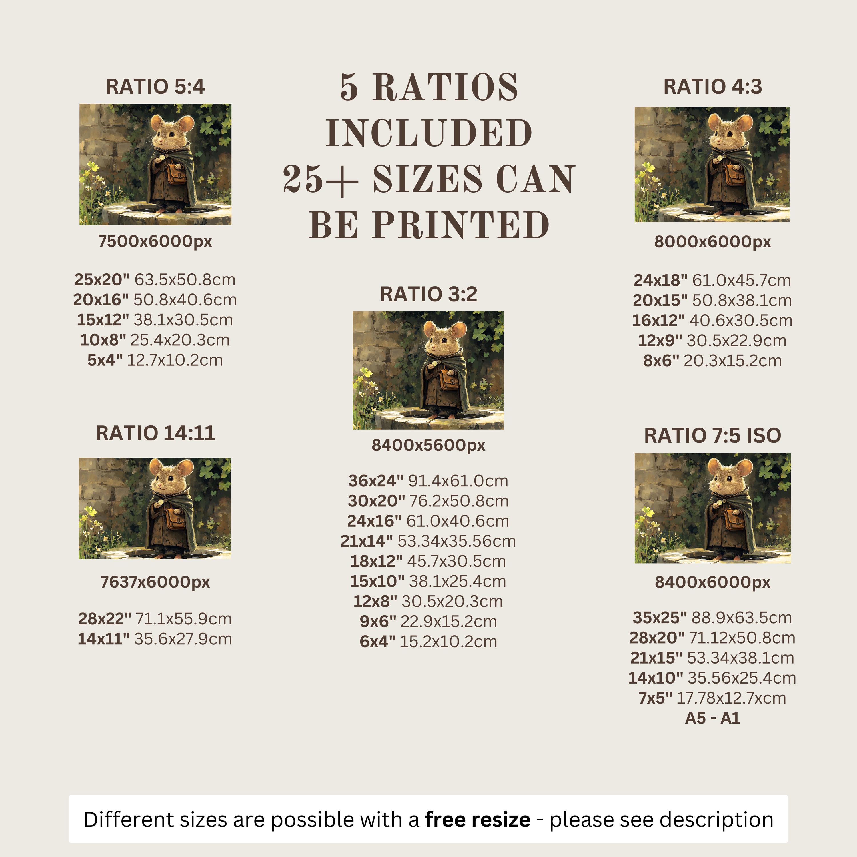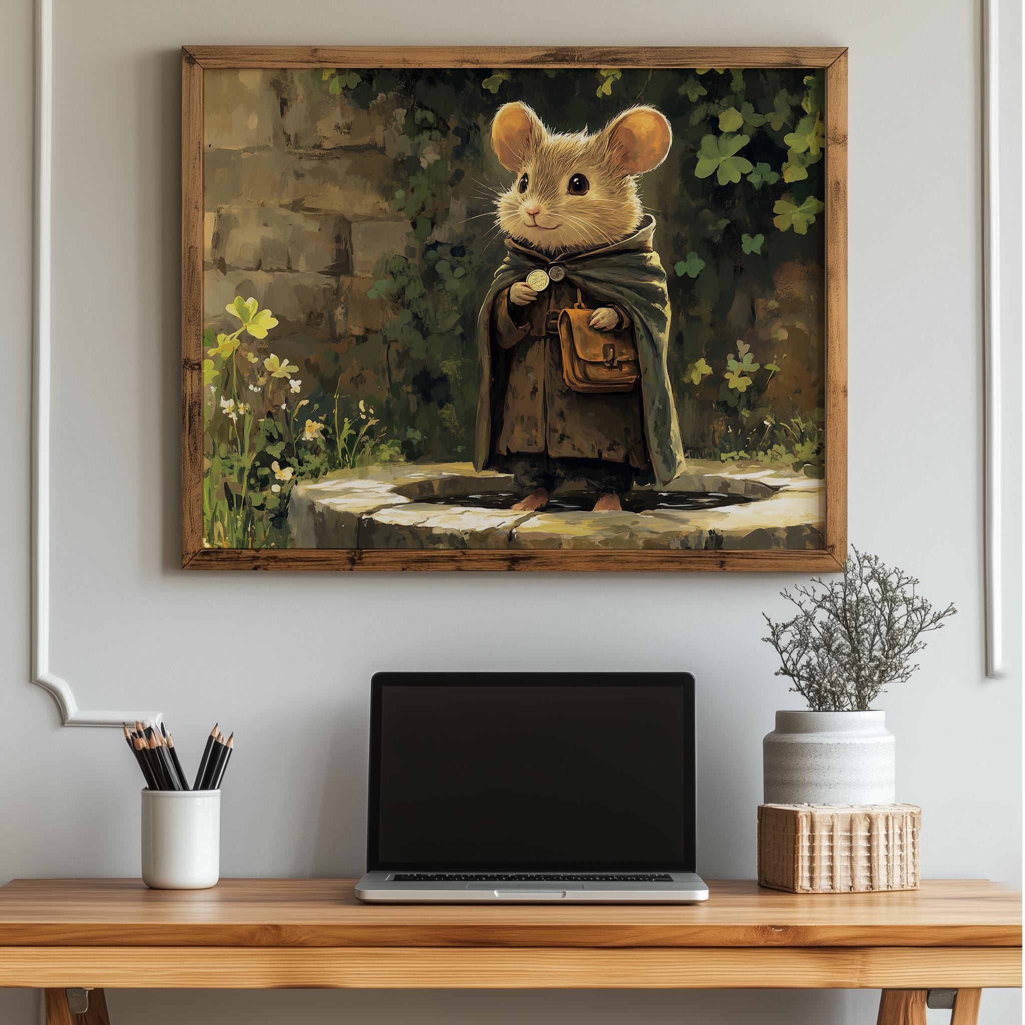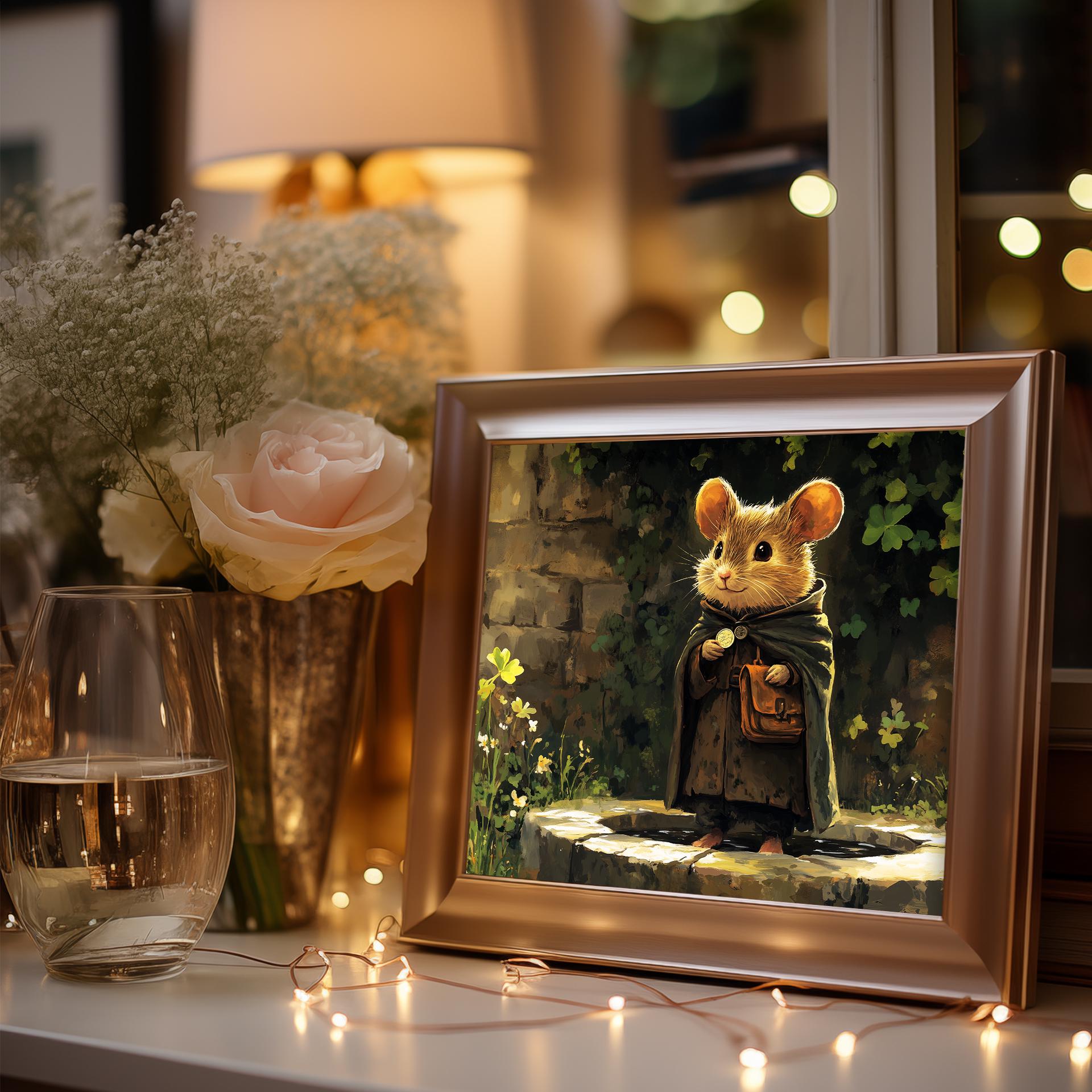 Immerse yourself in the charm with this painting of a whimsical mouse exploring a quaint cottage garden. An instantly downloadable print, it's perfect for elevating your decor with budget-friendly charm. This gives you the flexibility to customize the size, frame, and material according to your personal taste and space, ensuring a perfect fit for your walls.