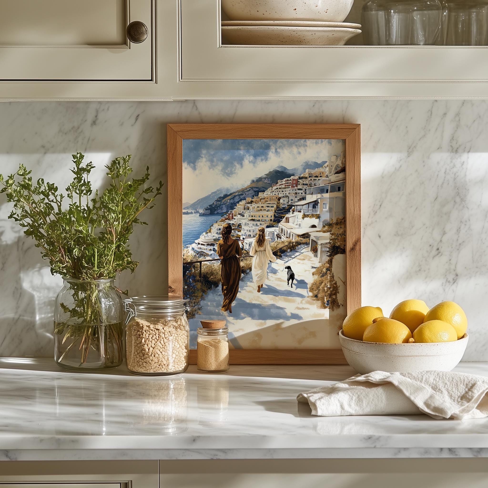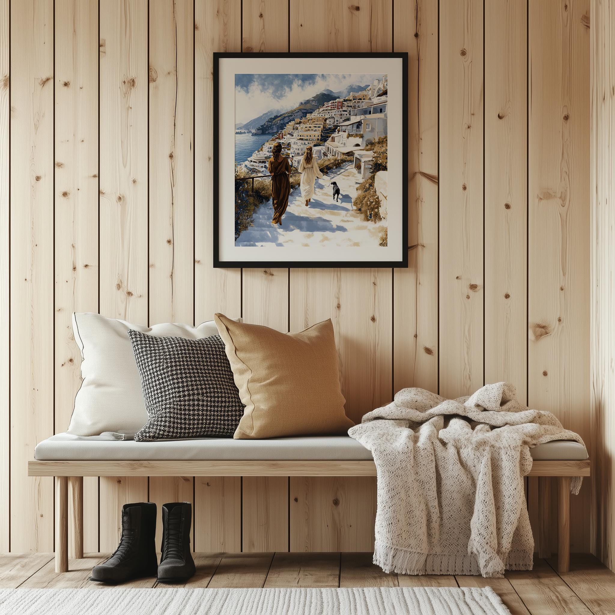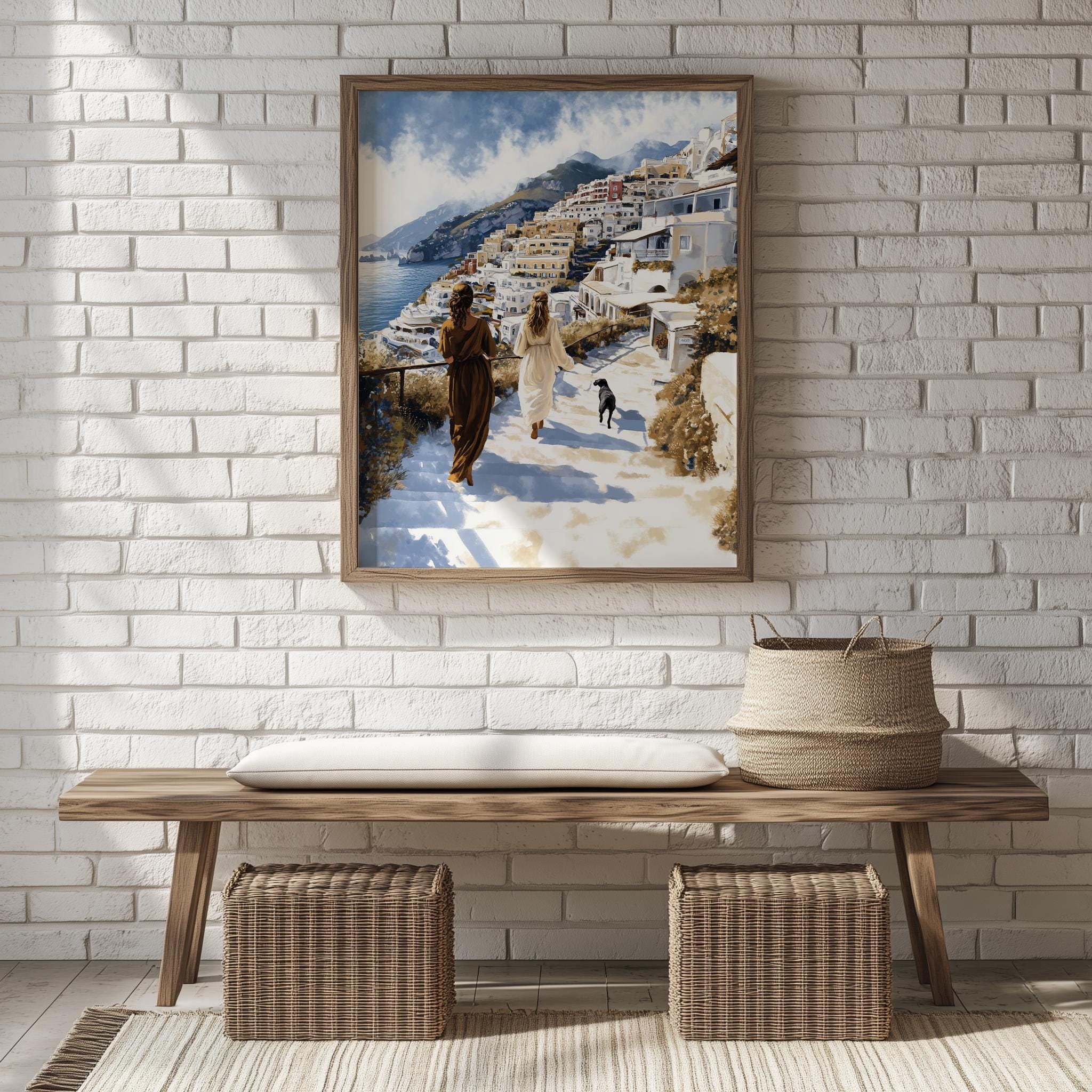 Immerse yourself in the charm of this painting of a serene coastal walk in Positano, capturing the essence of summer romance. An instantly downloadable print, it's perfect for elevating your decor with budget-friendly charm. This gives you the flexibility to customize the size, frame, and material according to your personal taste and space, ensuring a perfect fit for your walls.