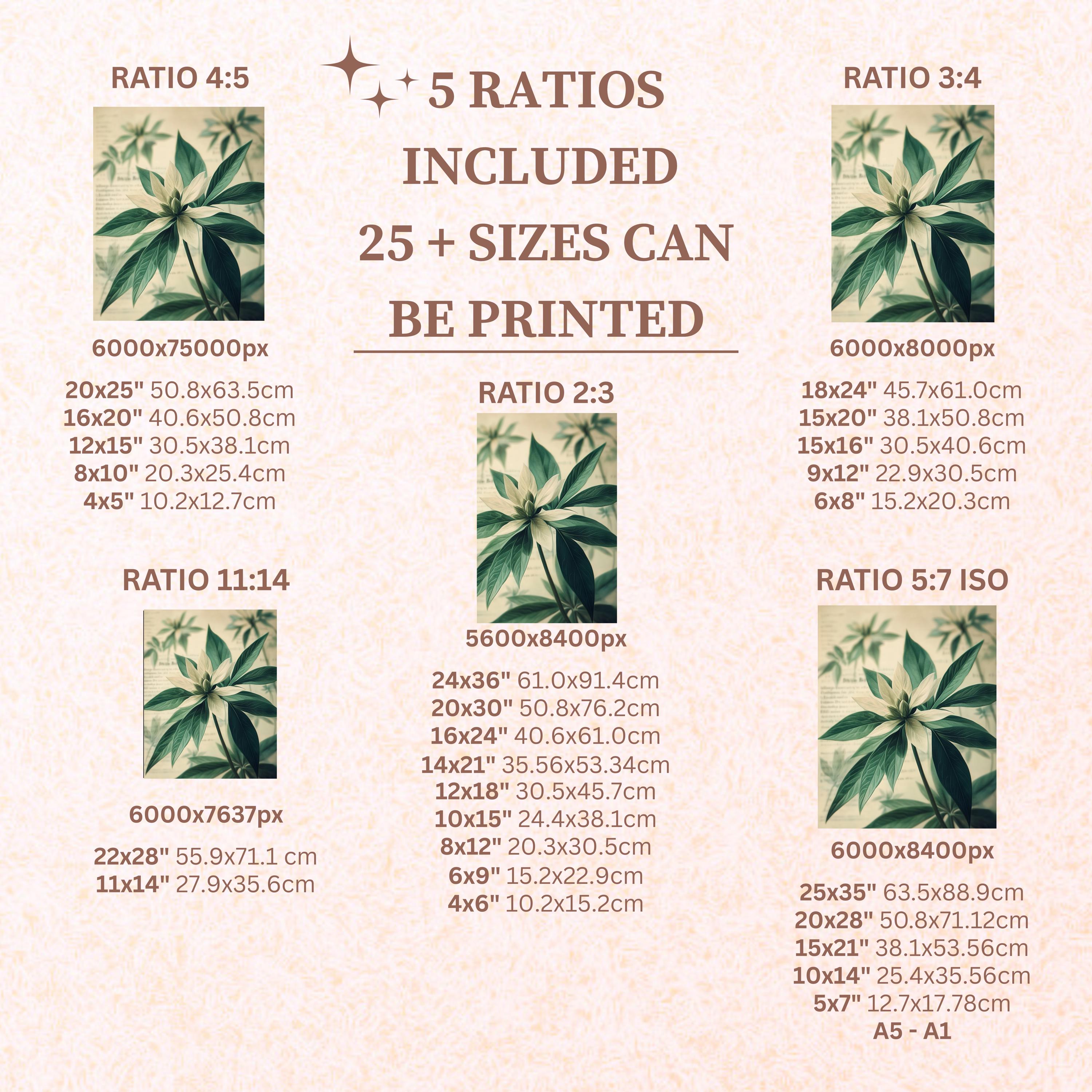 Each artwork includes 5 aspect ratios with 25+ print sizes. Most standard frames are covered. One custom resize per purchase available—message before ordering.